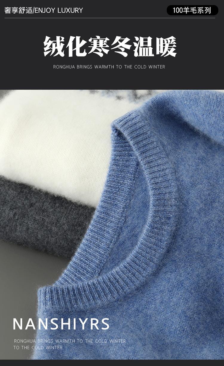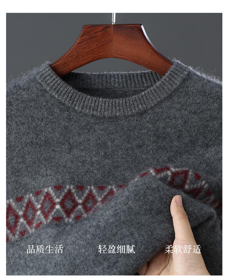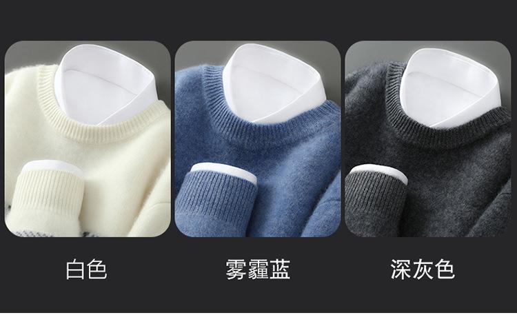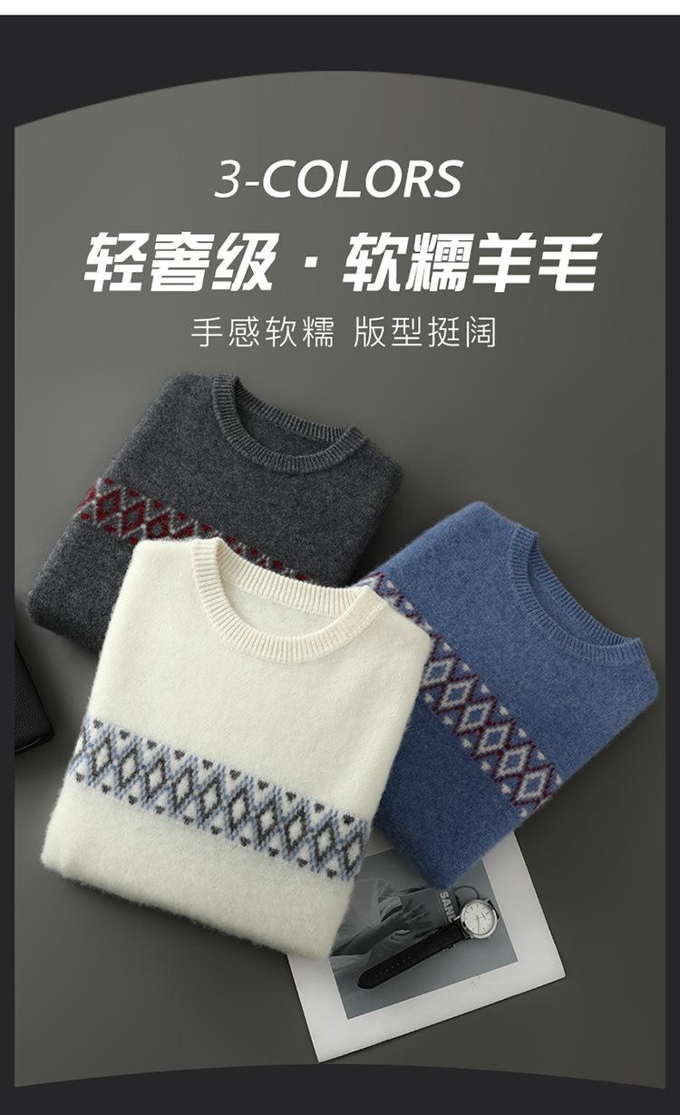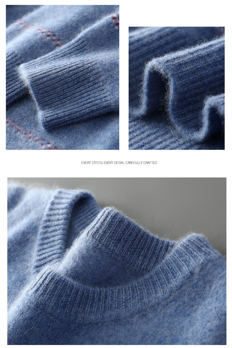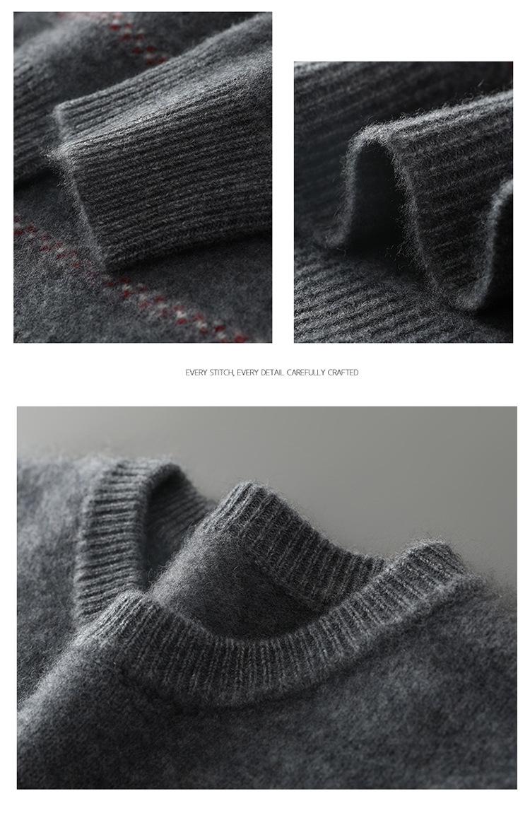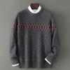 Nuevo Suéter de Otoño/Invierno 100% Lana Pura para Hombre, Cuello Redondo, Grueso, Suéter Jersey de Bloques de Color, Tejido Holgado, Capa Base de Cachemira