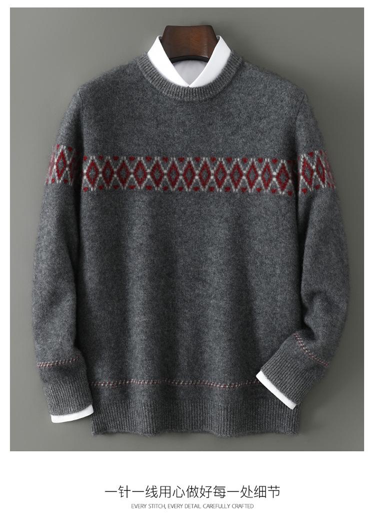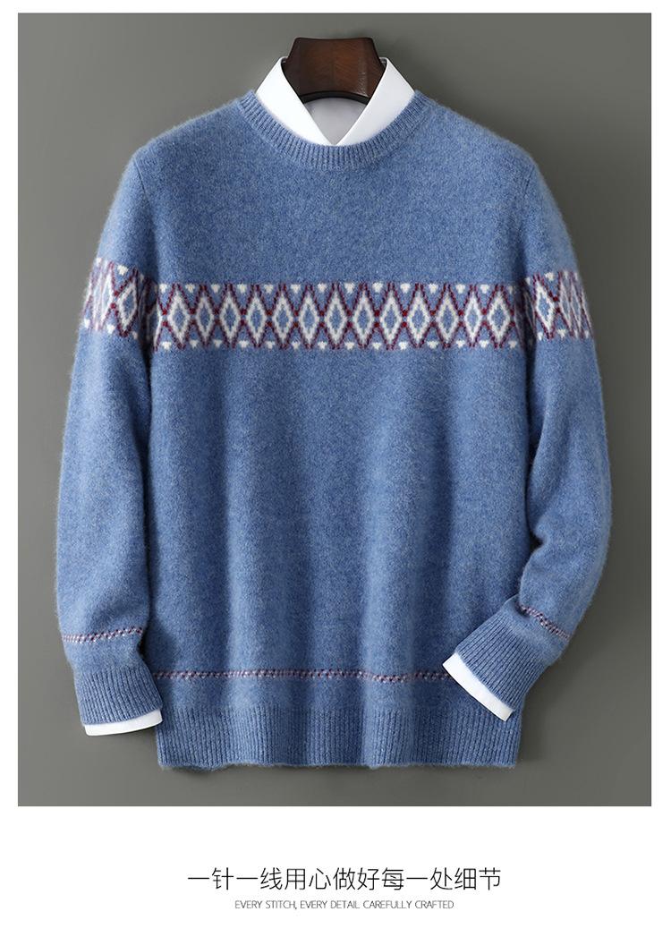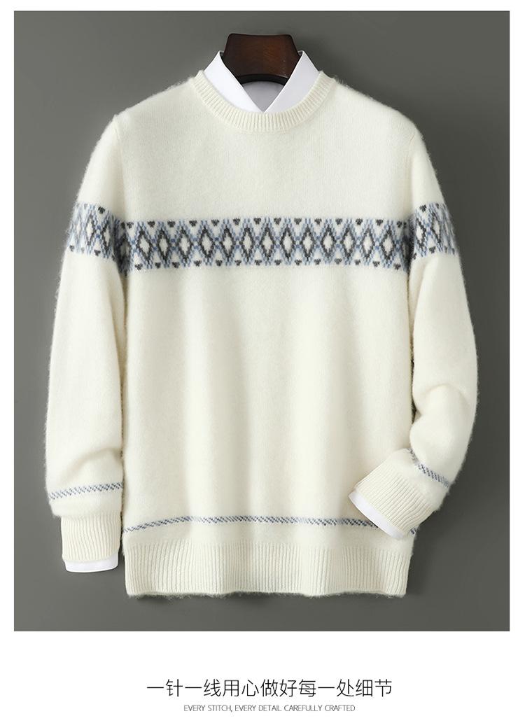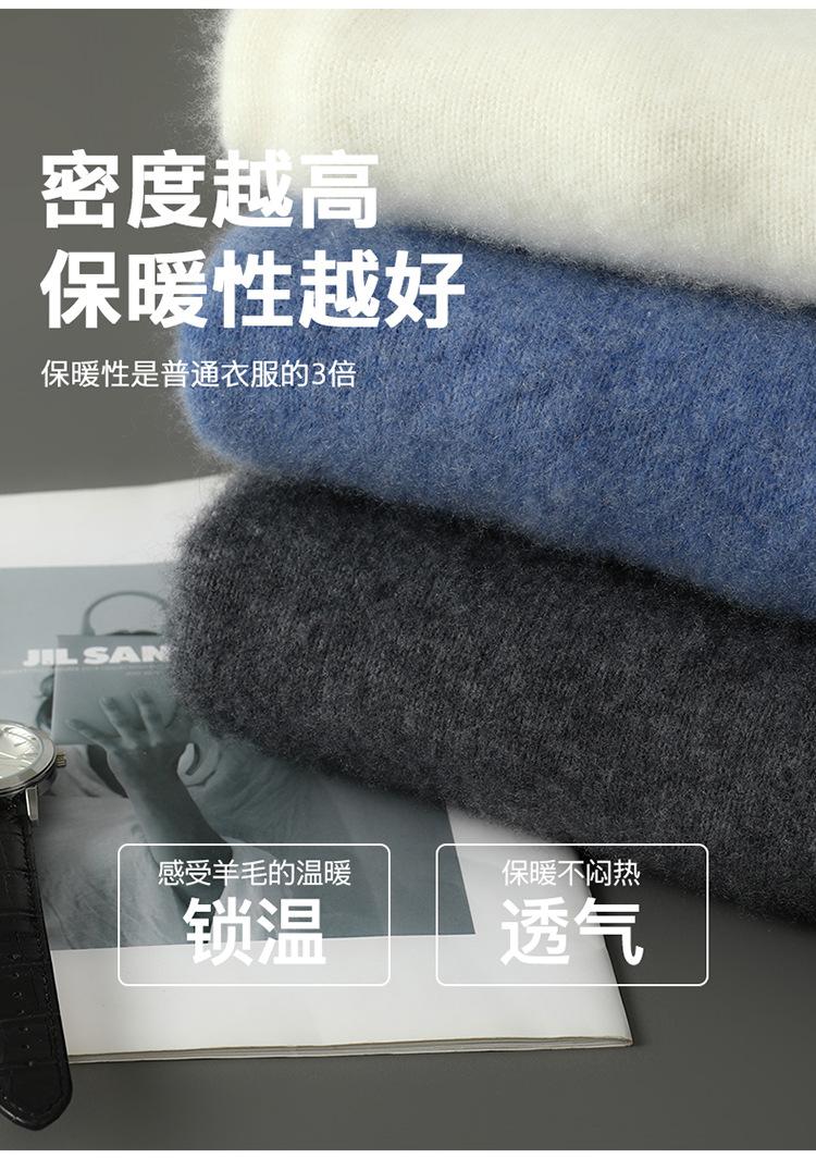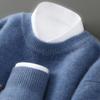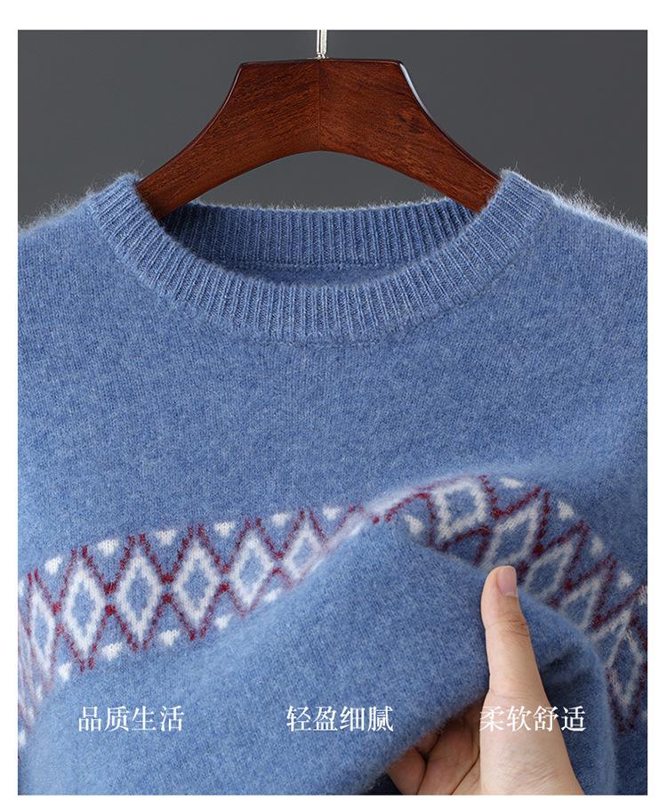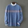 Nuevo Suéter de Otoño/Invierno 100% Lana Pura para Hombre, Cuello Redondo, Grueso, Suéter Jersey de Bloques de Color, Tejido Holgado, Capa Base de Cachemira