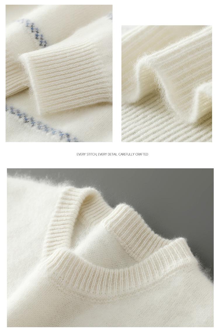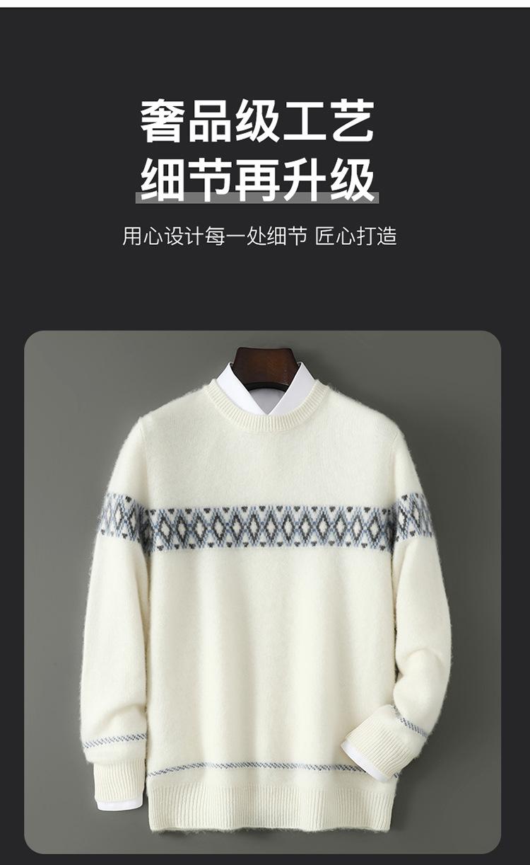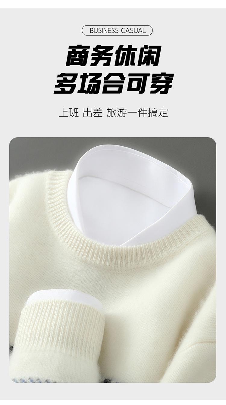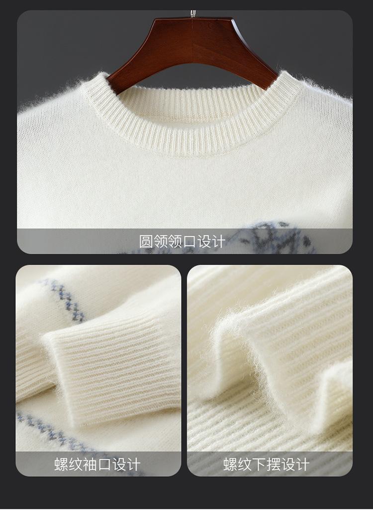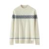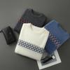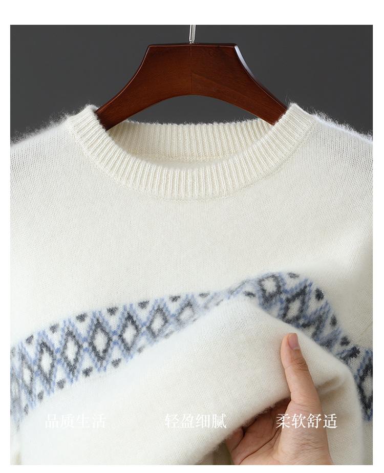 Nuevo Suéter de Otoño/Invierno 100% Lana Pura para Hombre, Cuello Redondo, Grueso, Suéter Jersey de Bloques de Color, Tejido Holgado, Capa Base de Cachemira