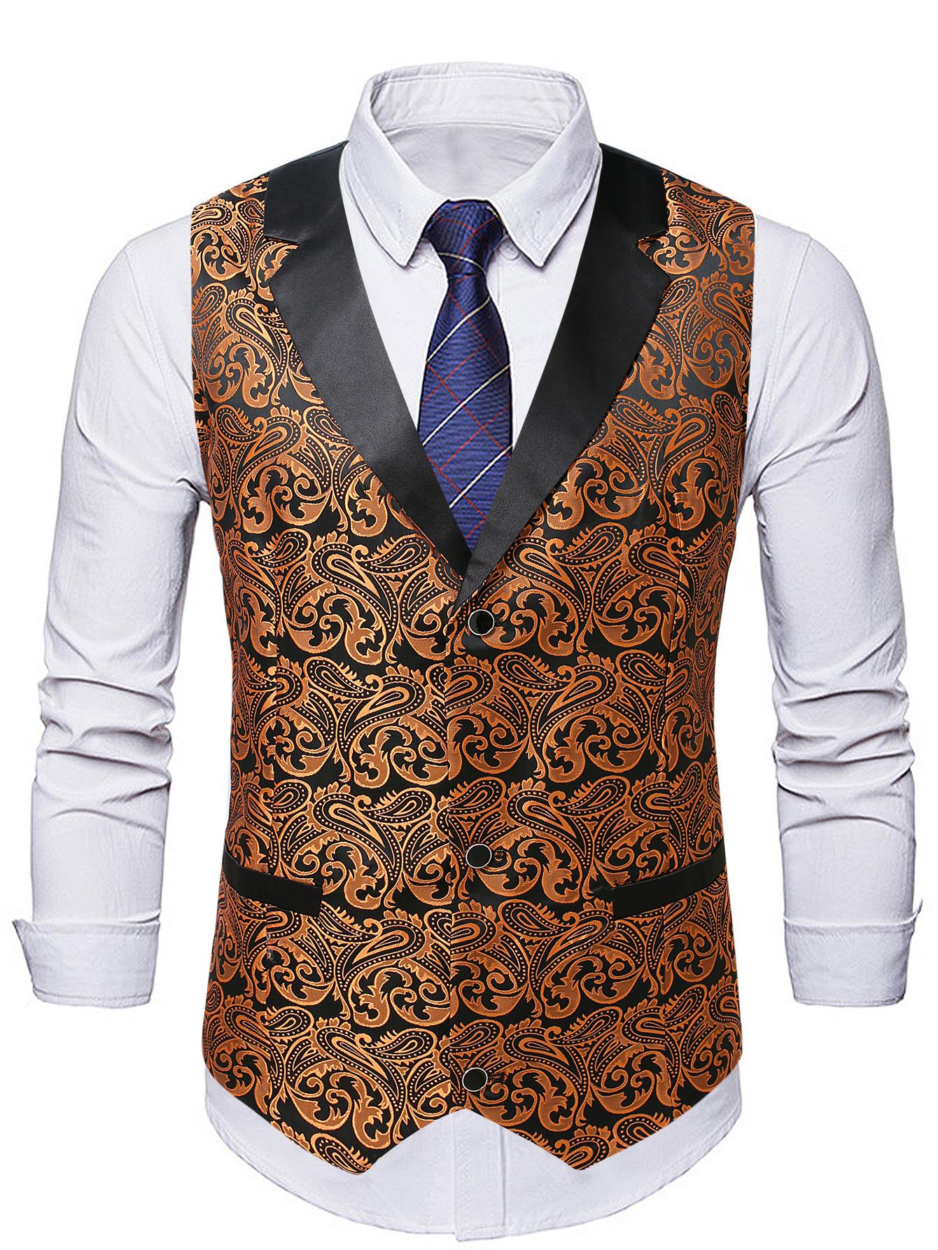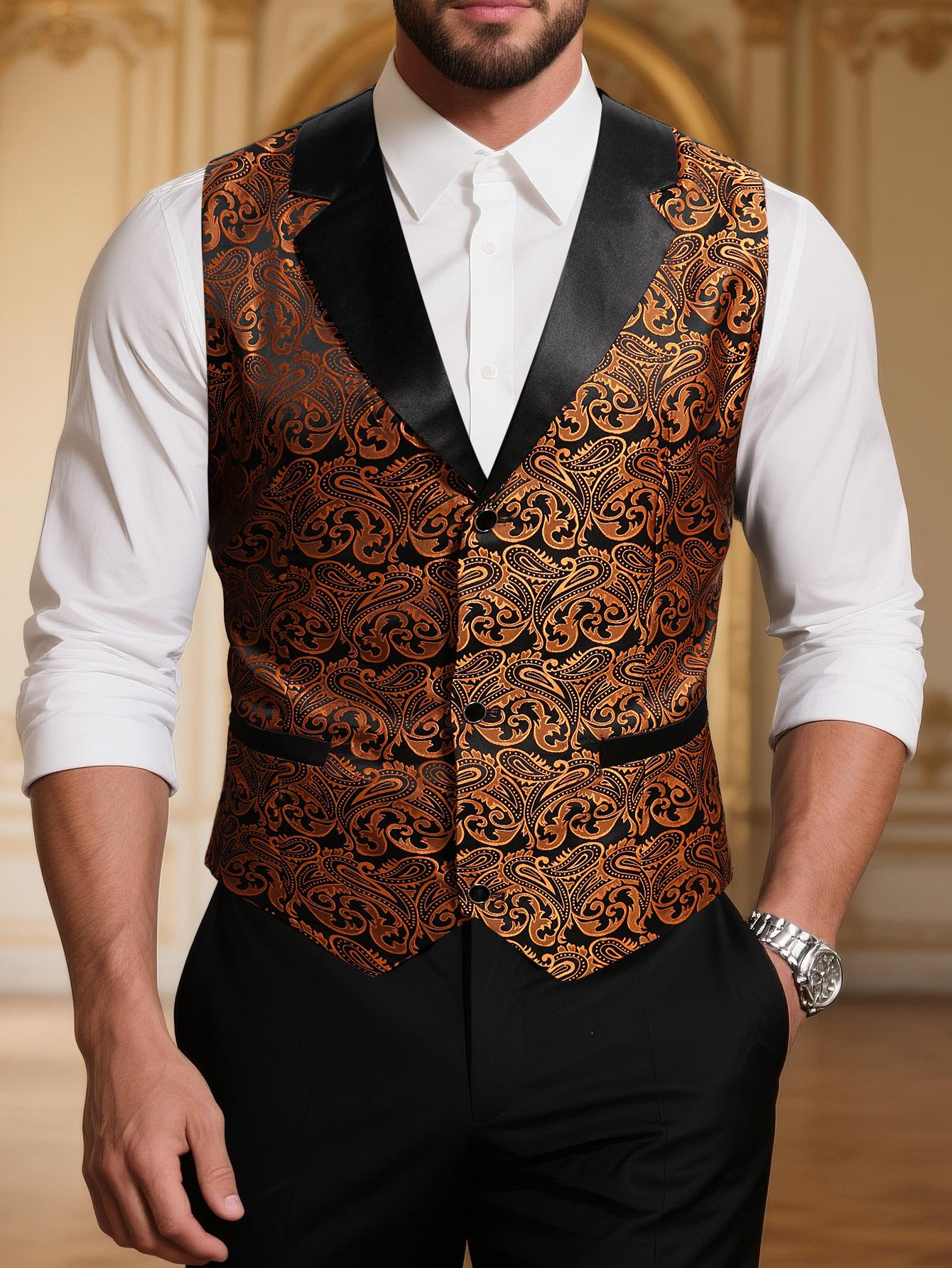 Chaleco de Traje Jacquard Paisley para Hombre Transfronterizo Ropa de Trabajo para Hotel y Restaurante Occidental Europeo para Hombre