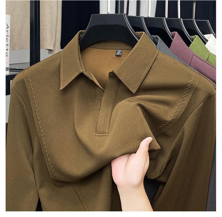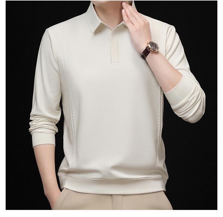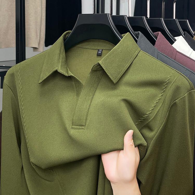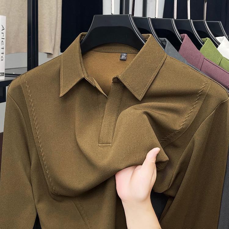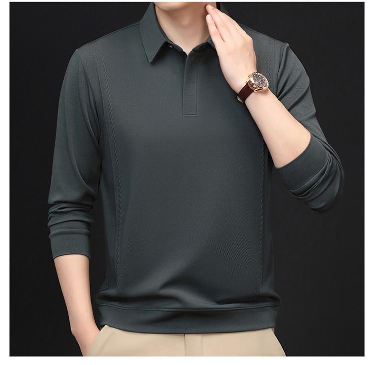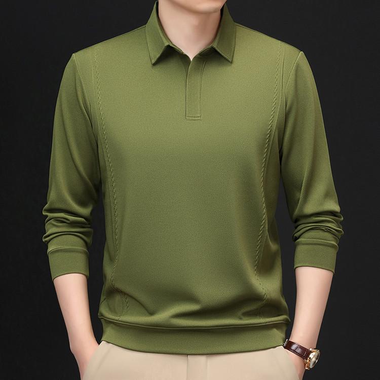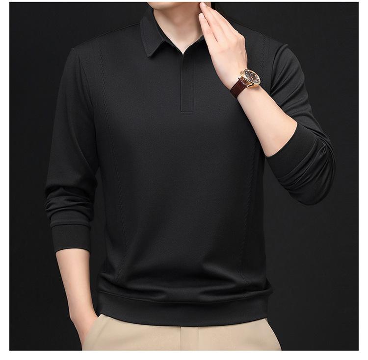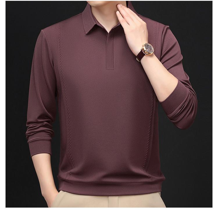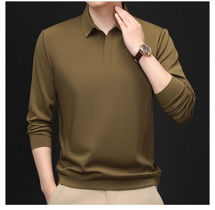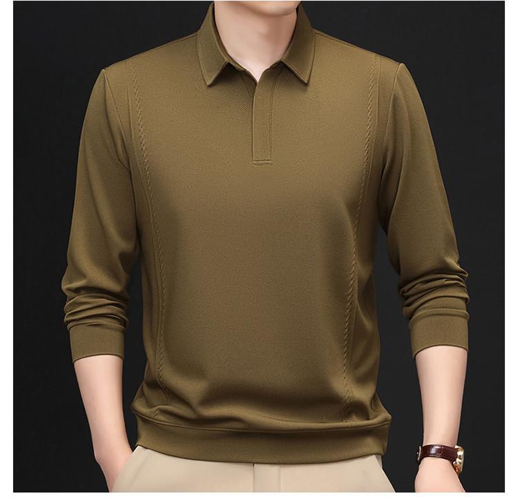 2025 nuevo otoño polo de manga larga para hombre mediana edad y joven negocio casual color sólido playera con solapa top para hombre