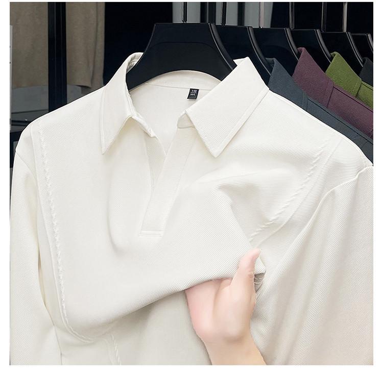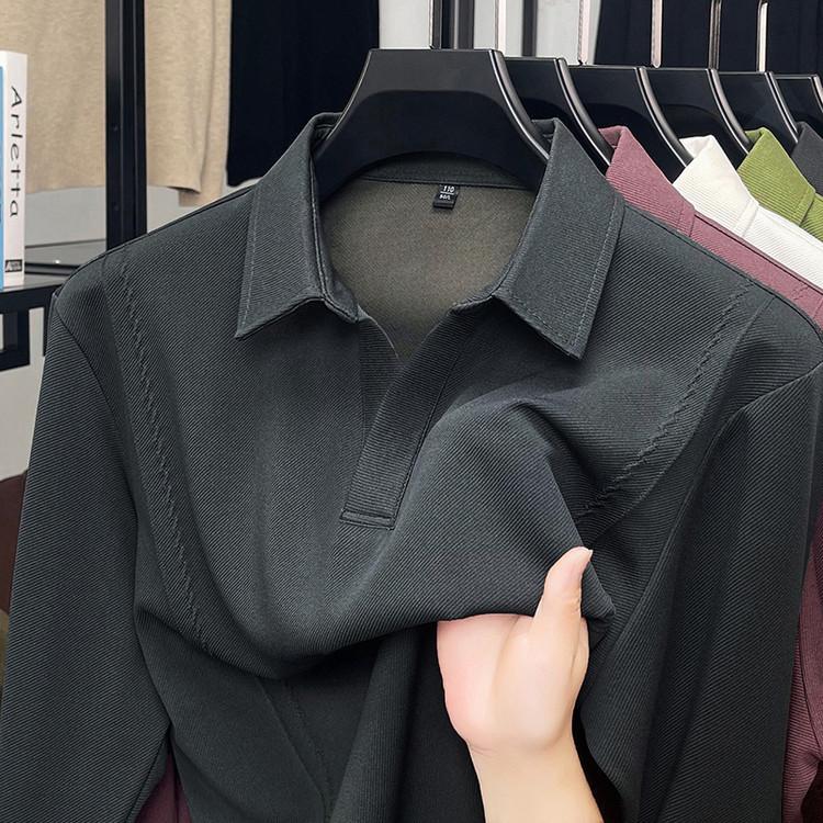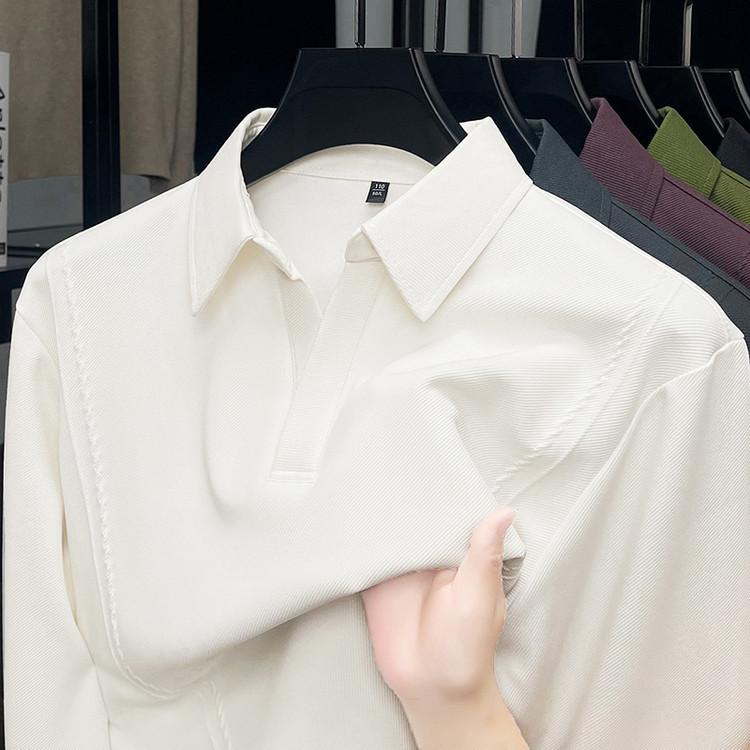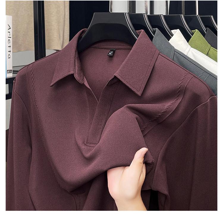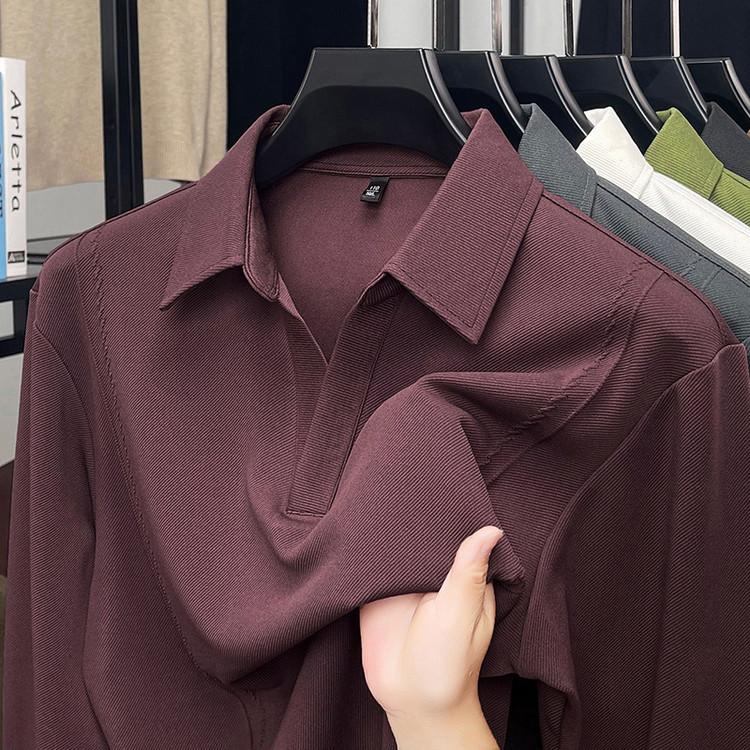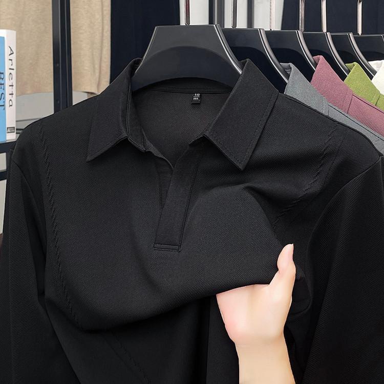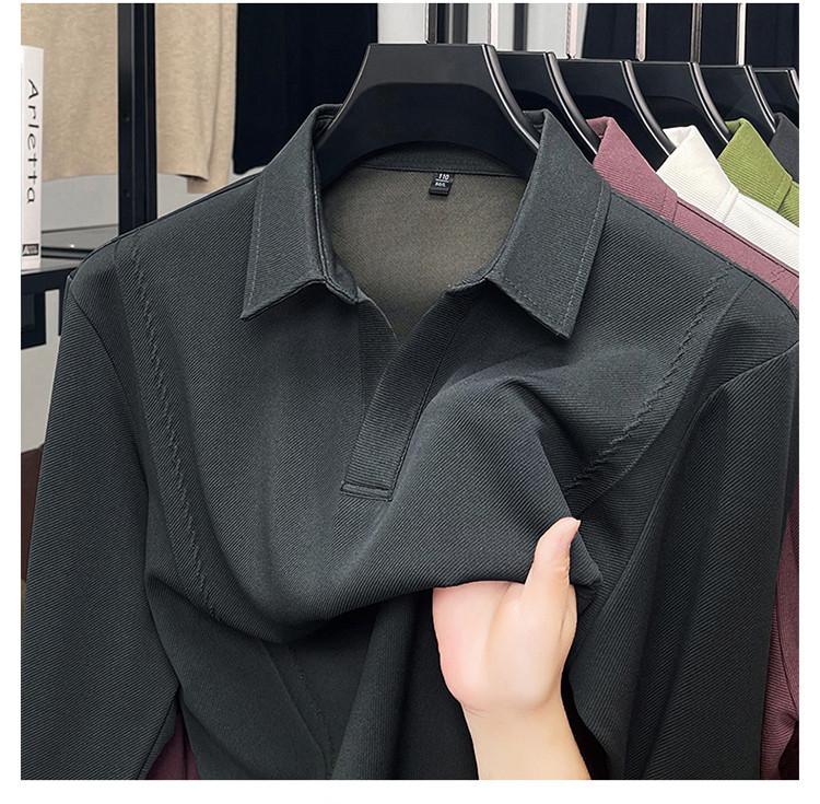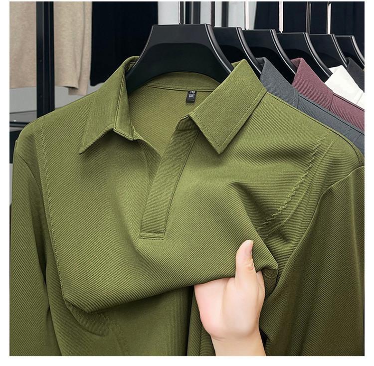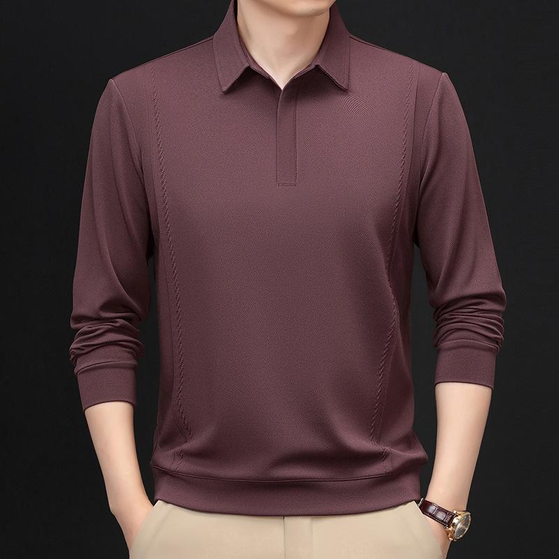 2025 nuevo otoño polo de manga larga para hombre mediana edad y joven negocio casual color sólido playera con solapa top para hombre