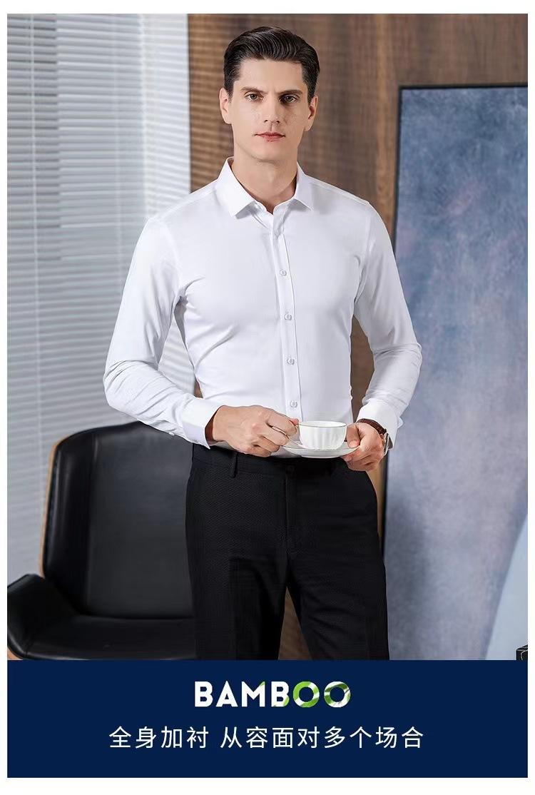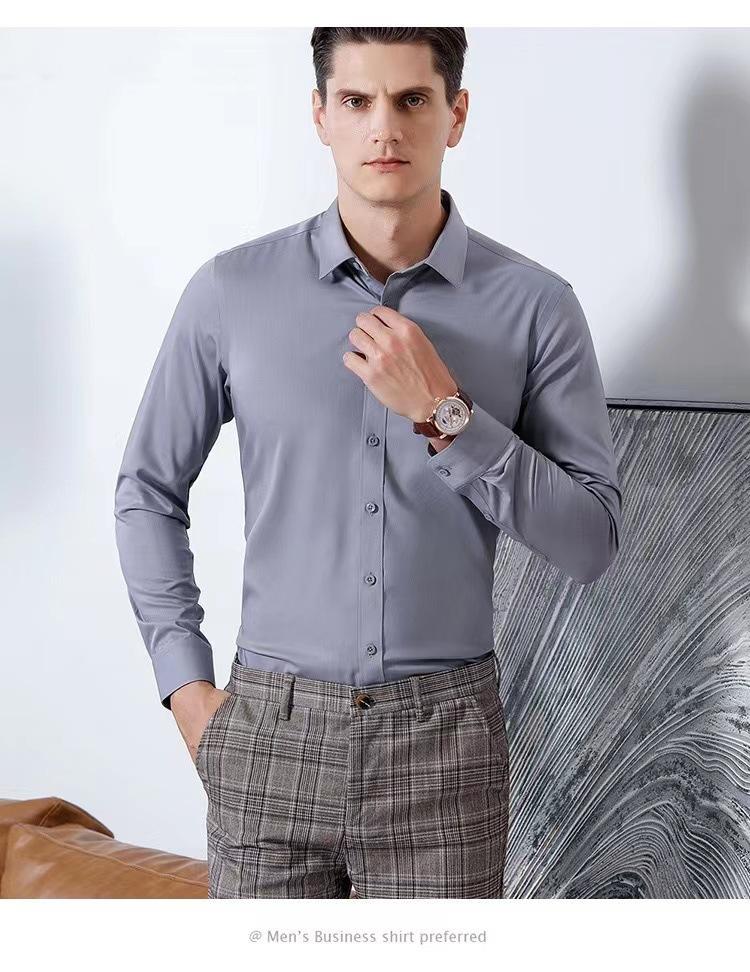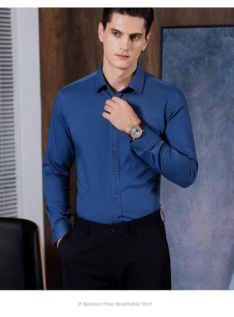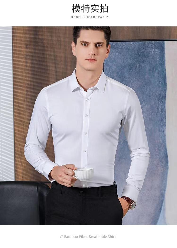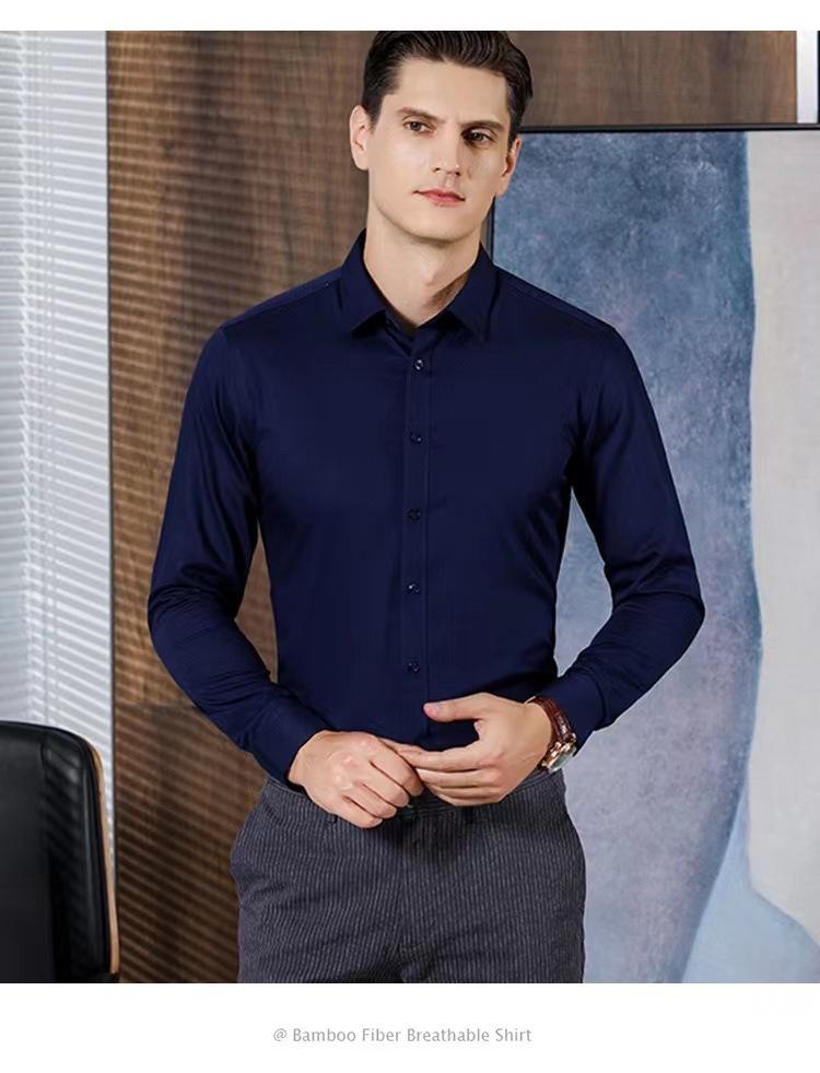 Camisa de manga larga de bambú de alta gama para hombre, elástica para primavera y otoño, color sólido que no necesita planchado, camisa para hombre de negocios, venta al por mayor para hombre