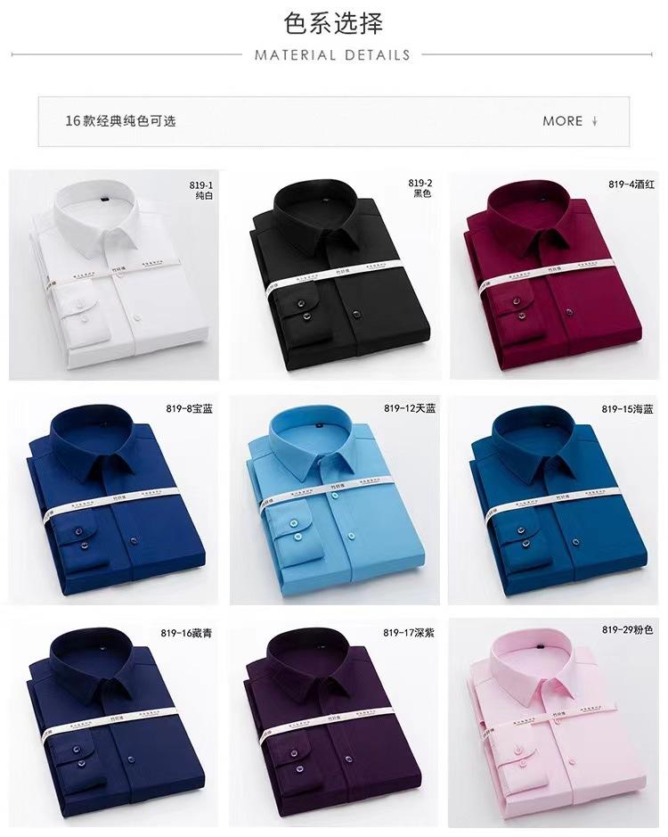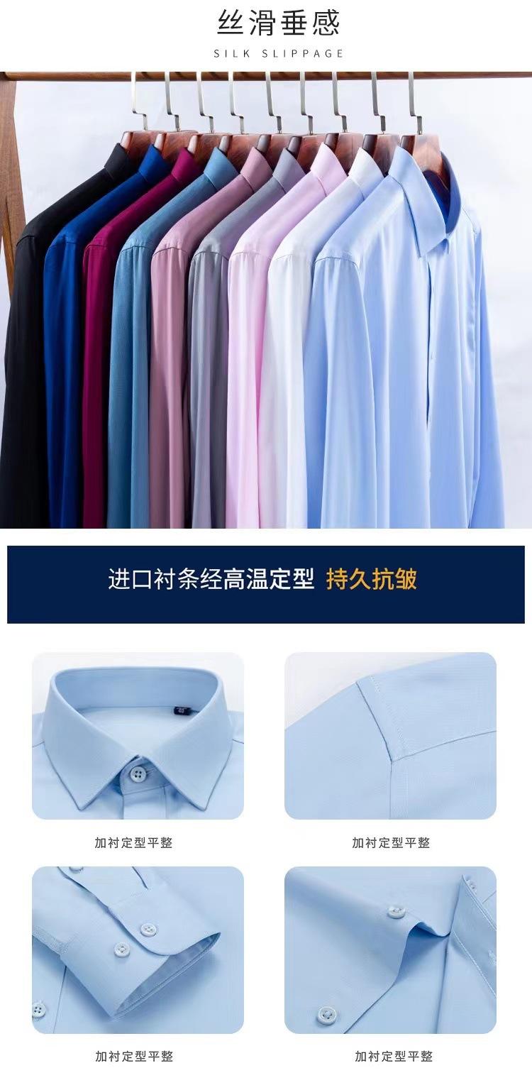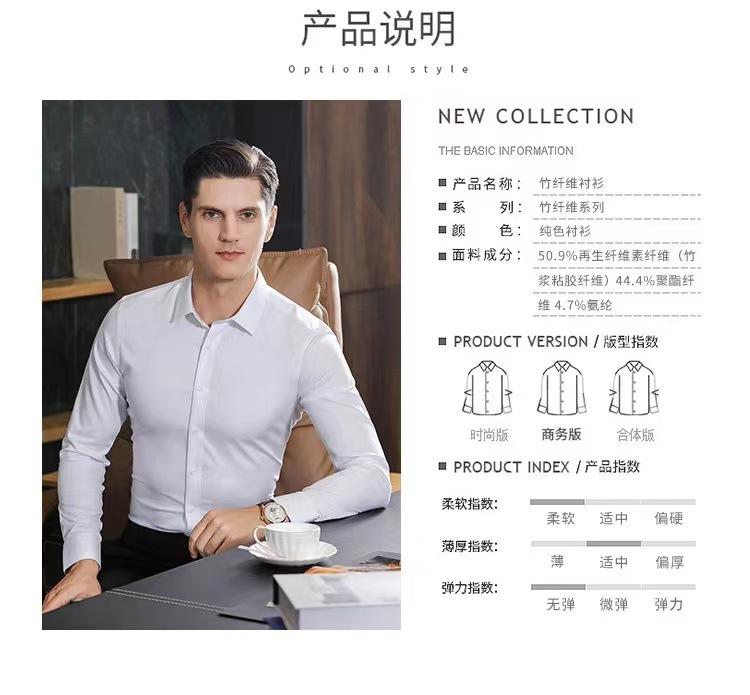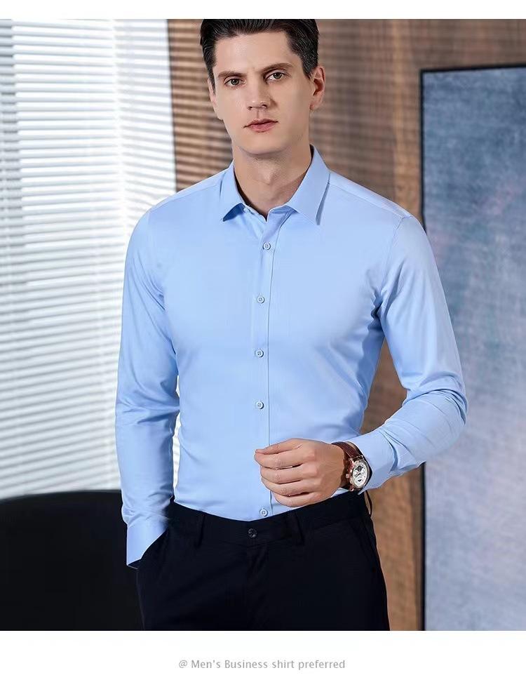 Camisa de manga larga de bambú de alta gama para hombre, elástica para primavera y otoño, color sólido que no necesita planchado, camisa para hombre de negocios, venta al por mayor para hombre