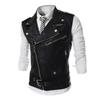 Ebay Más Vendido Exportación Chaleco de Cuero para Hombre Estilo Coreano Slim Solapa Multicremallera Chaleco Corto de Cuero Chaqueta Venta al por Mayor
