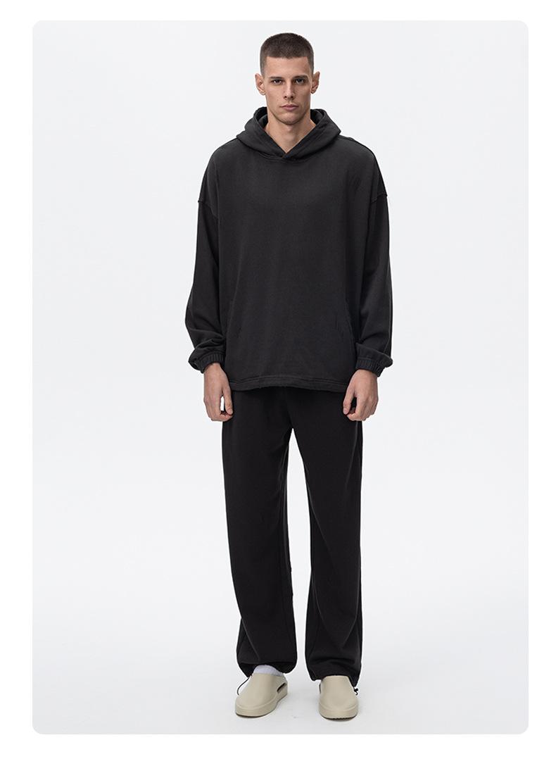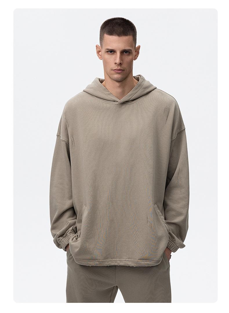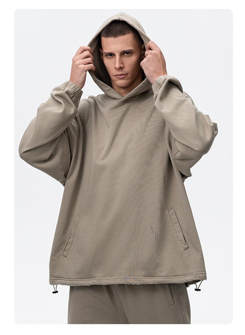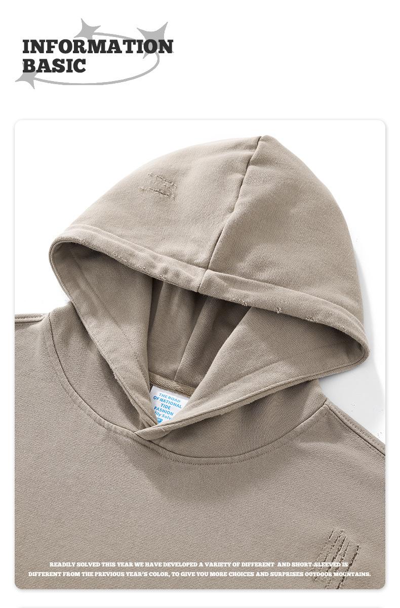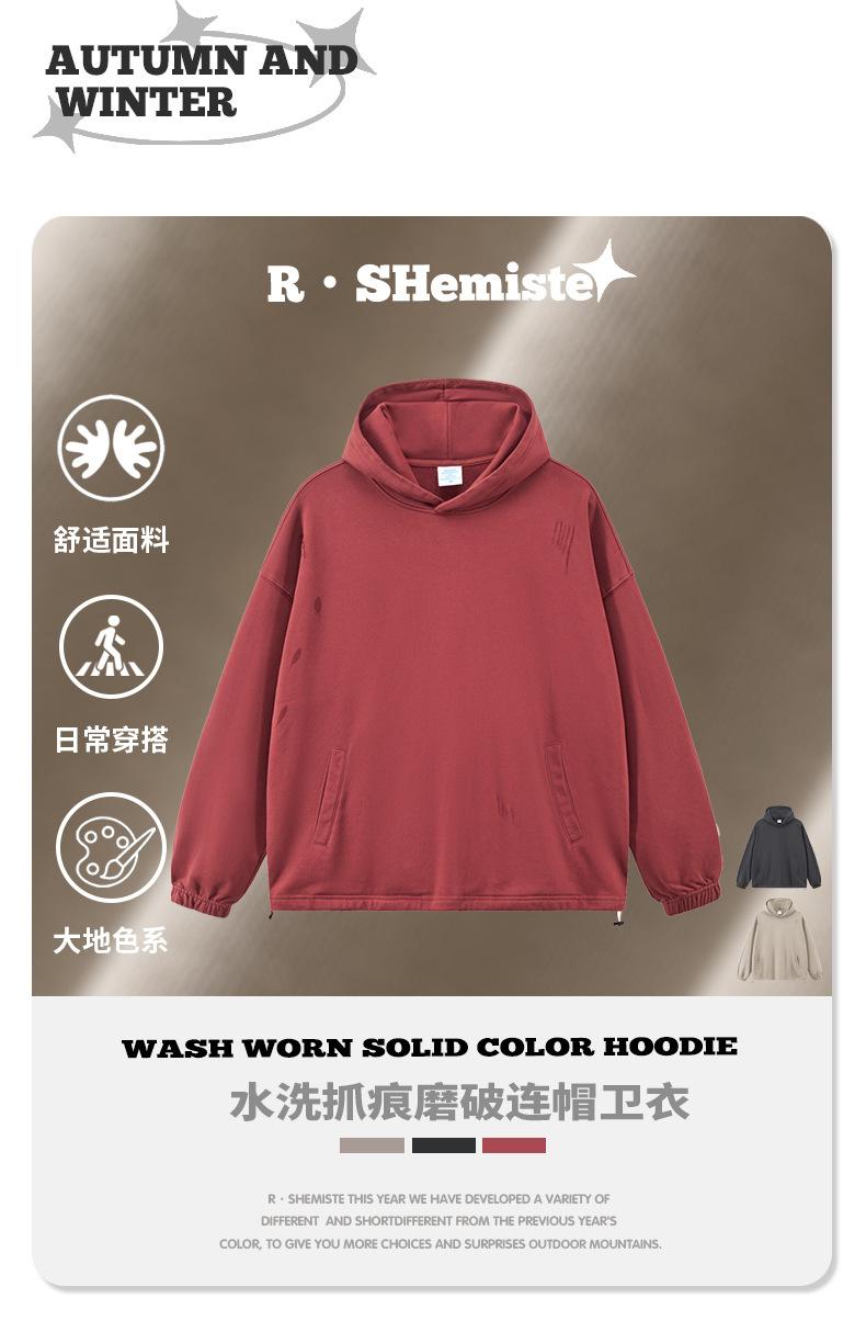 Ropa Rs para Hombre | Marca de Moda Transfronteriza Sudadera Pesada de Felpa Lavada 420g Desgastada Rallada con Cordón Color Puro Sudadera para Hombre