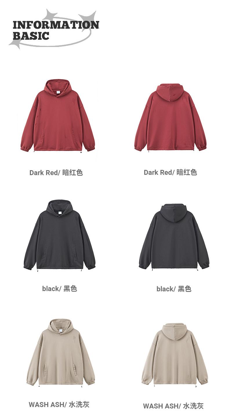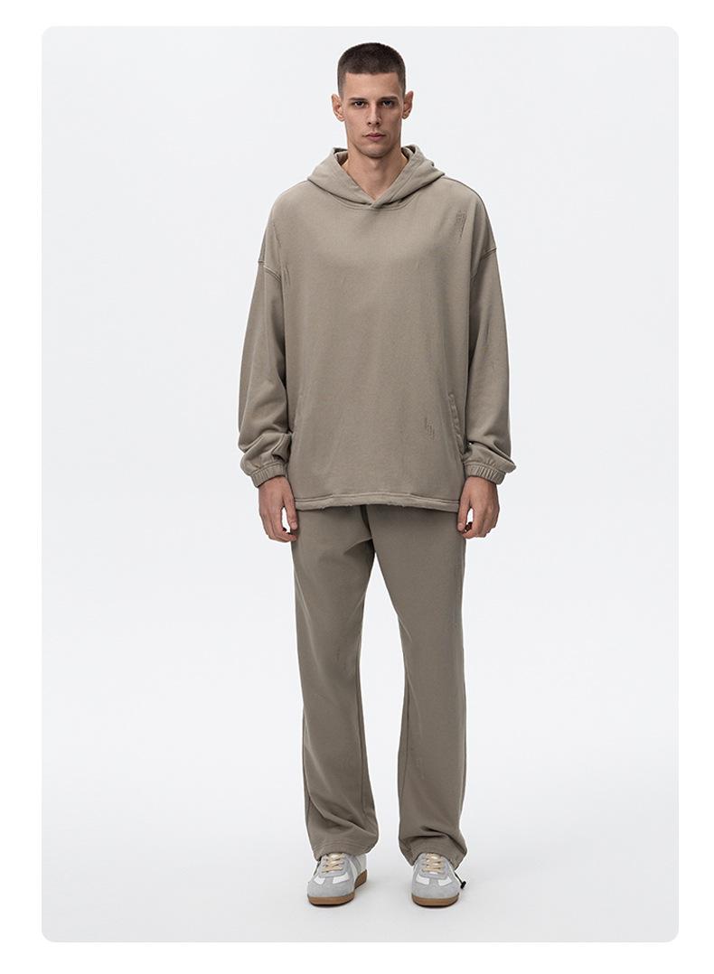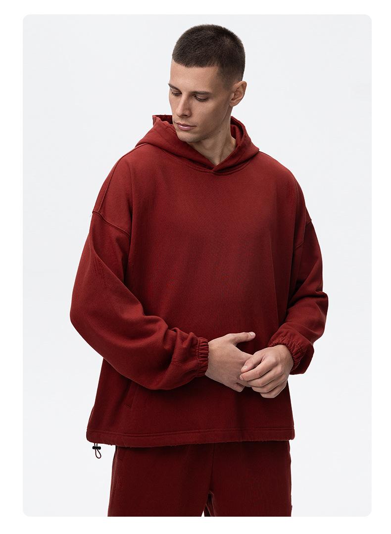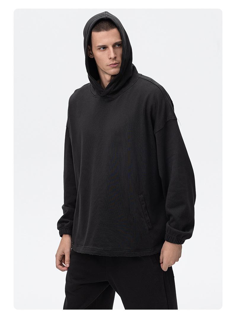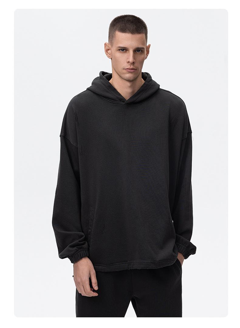 Ropa Rs para Hombre | Marca de Moda Transfronteriza Sudadera Pesada de Felpa Lavada 420g Desgastada Rallada con Cordón Color Puro Sudadera para Hombre