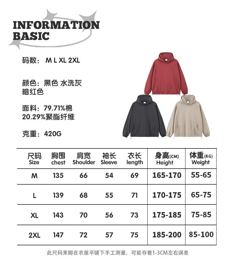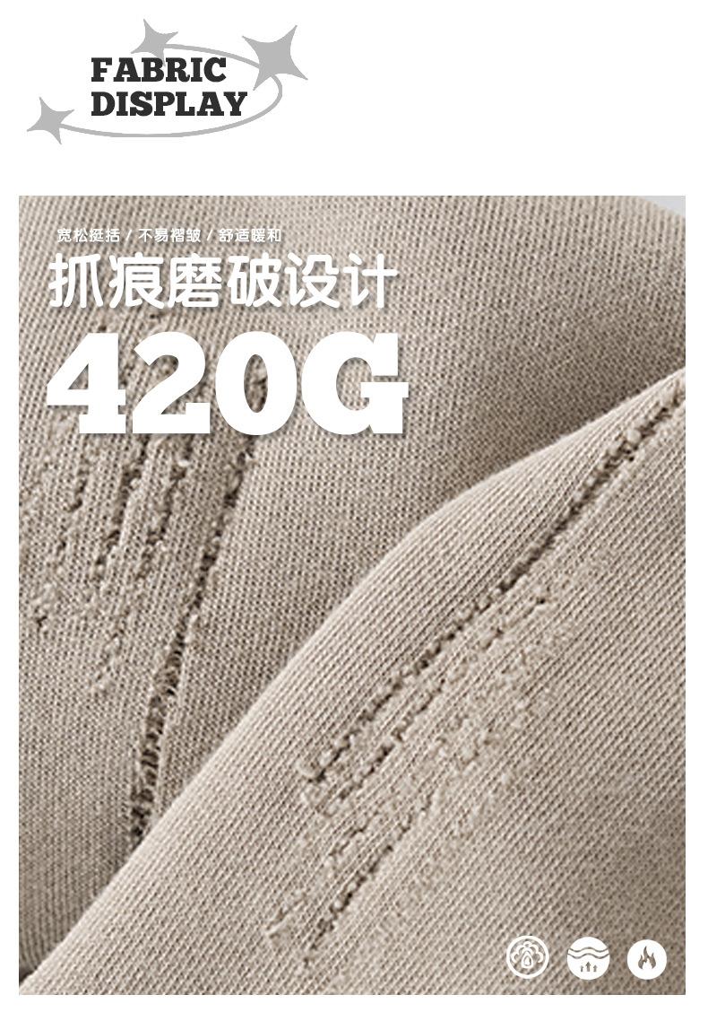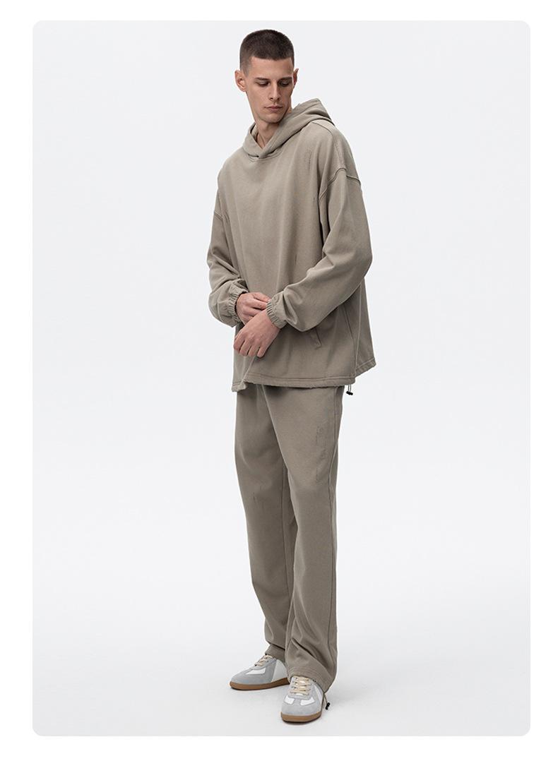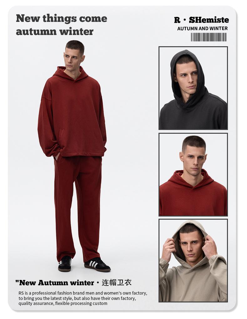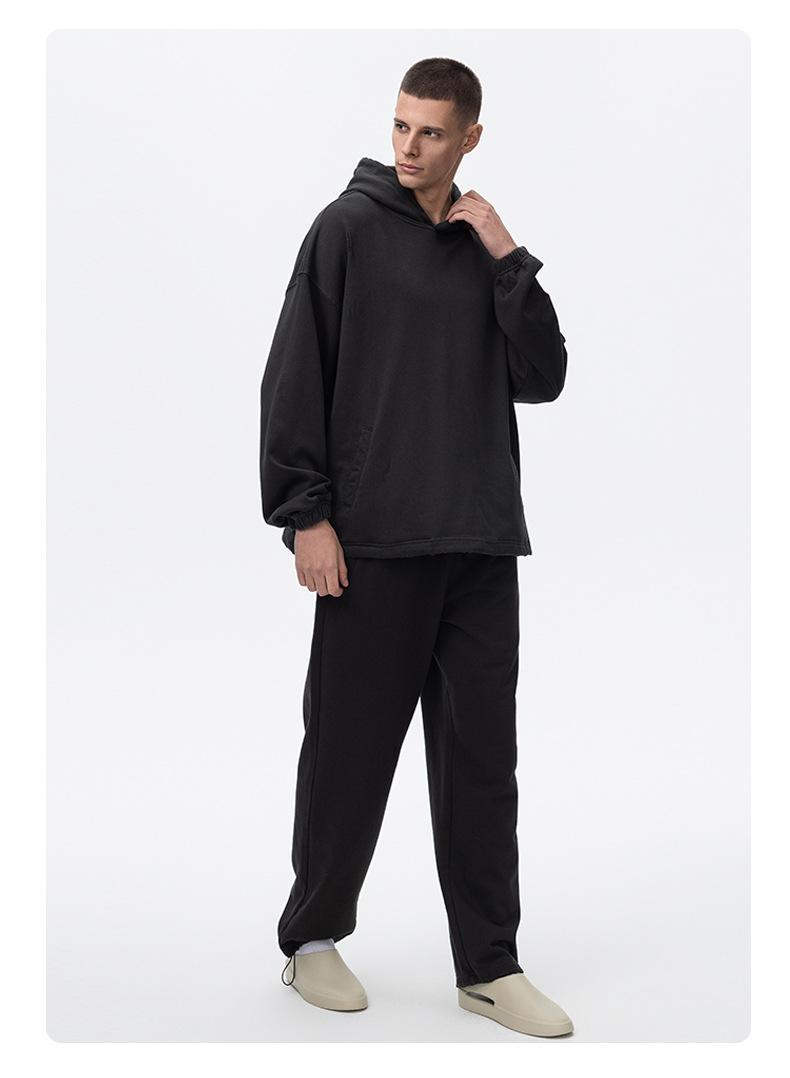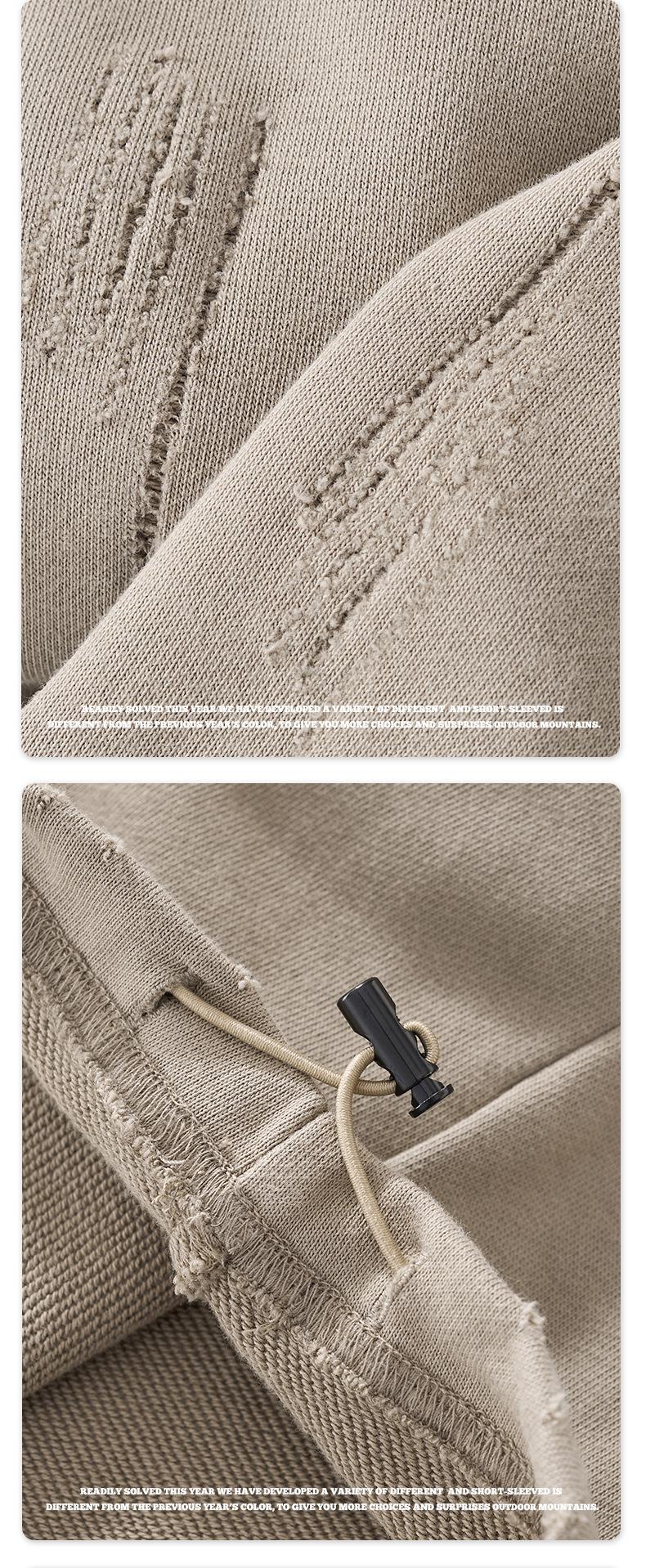 Ropa Rs para Hombre | Marca de Moda Transfronteriza Sudadera Pesada de Felpa Lavada 420g Desgastada Rallada con Cordón Color Puro Sudadera para Hombre