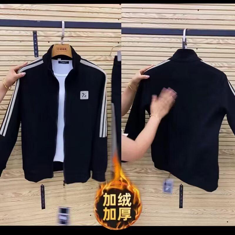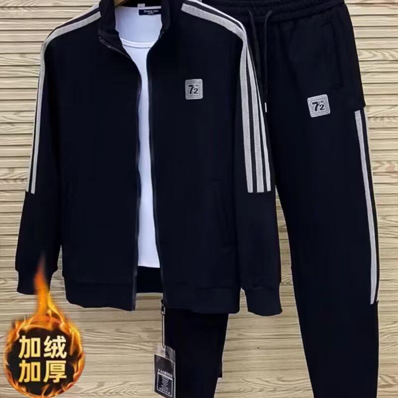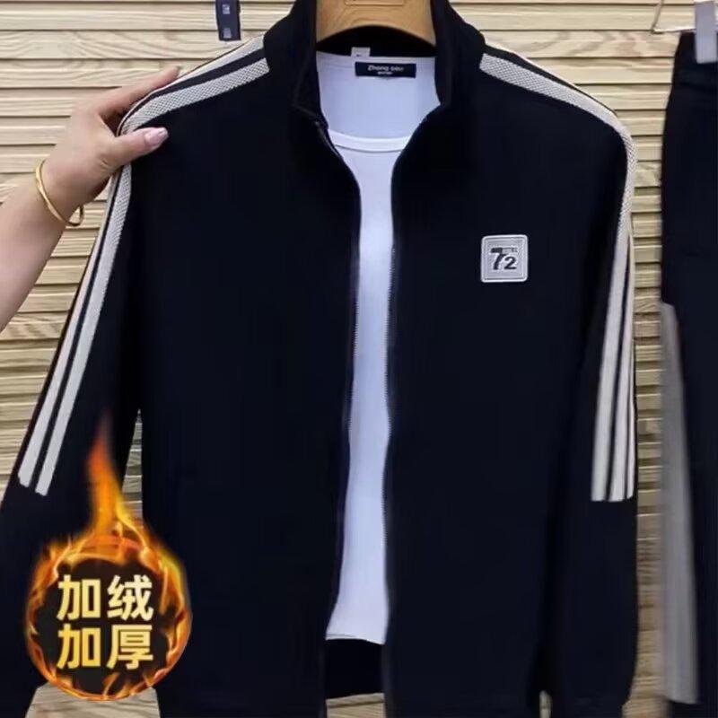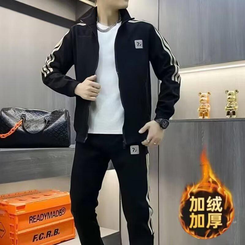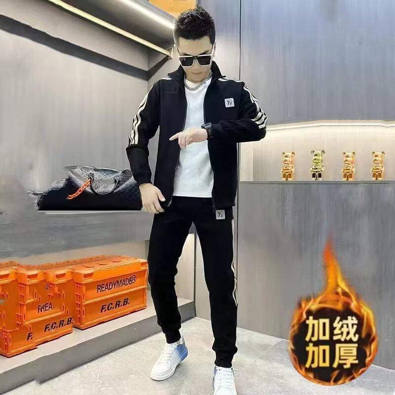 Nuevo Otoño e Invierno para Hombre Cárdigan Sudadera Versátil de Moda de Tres Rayas Pantalón Deportivo Casual Conjunto de Dos Piezas de Primavera