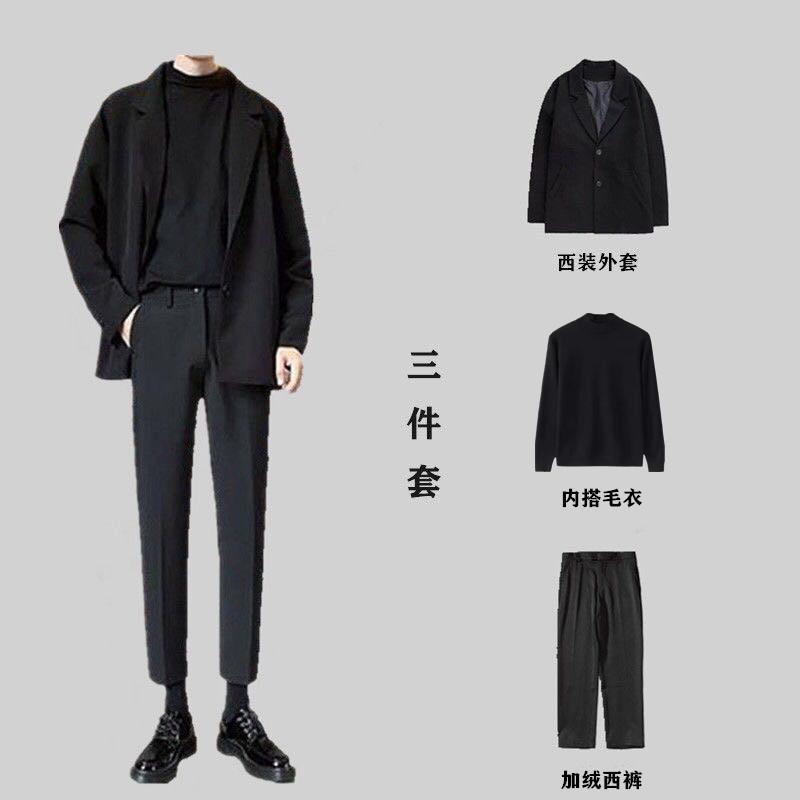 Three-piece brown suit + sweater + trousers plus velvet, Three-piece black suit + sweater + trousers plus velv...