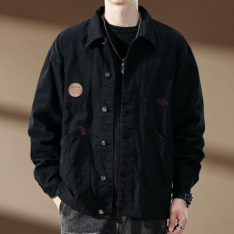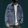 Chaqueta de Trabajo de Alta Gama para Hombre, Chaqueta de Solapa Americana Retro Suelta de Marca Trendy para Primavera y Otoño, Chaqueta de Mezclilla Casual y Guapa