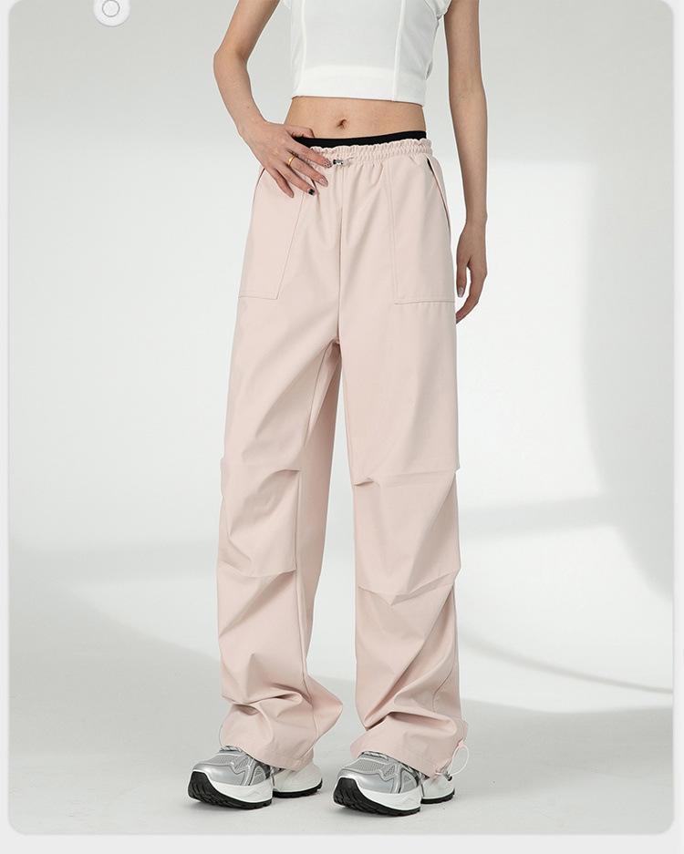 Pantalones cargo holgados de cintura alta nuevos Primavera y Verano Pantalones deportivos Unisex Pantalones deportivos largos Moda Pierna ancha Estilo coreano Casual