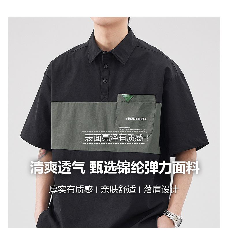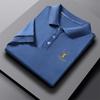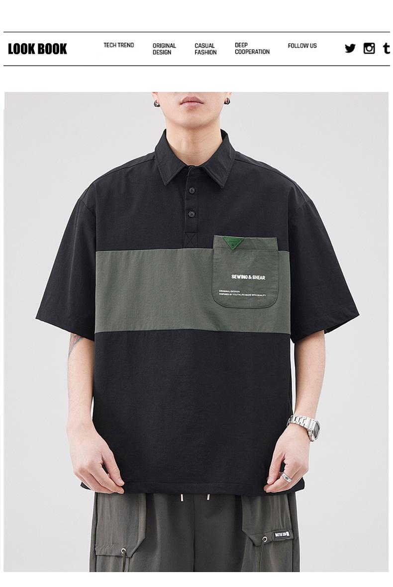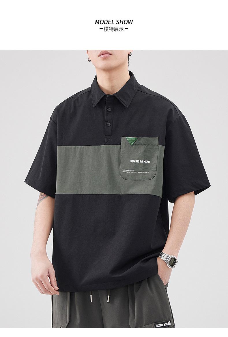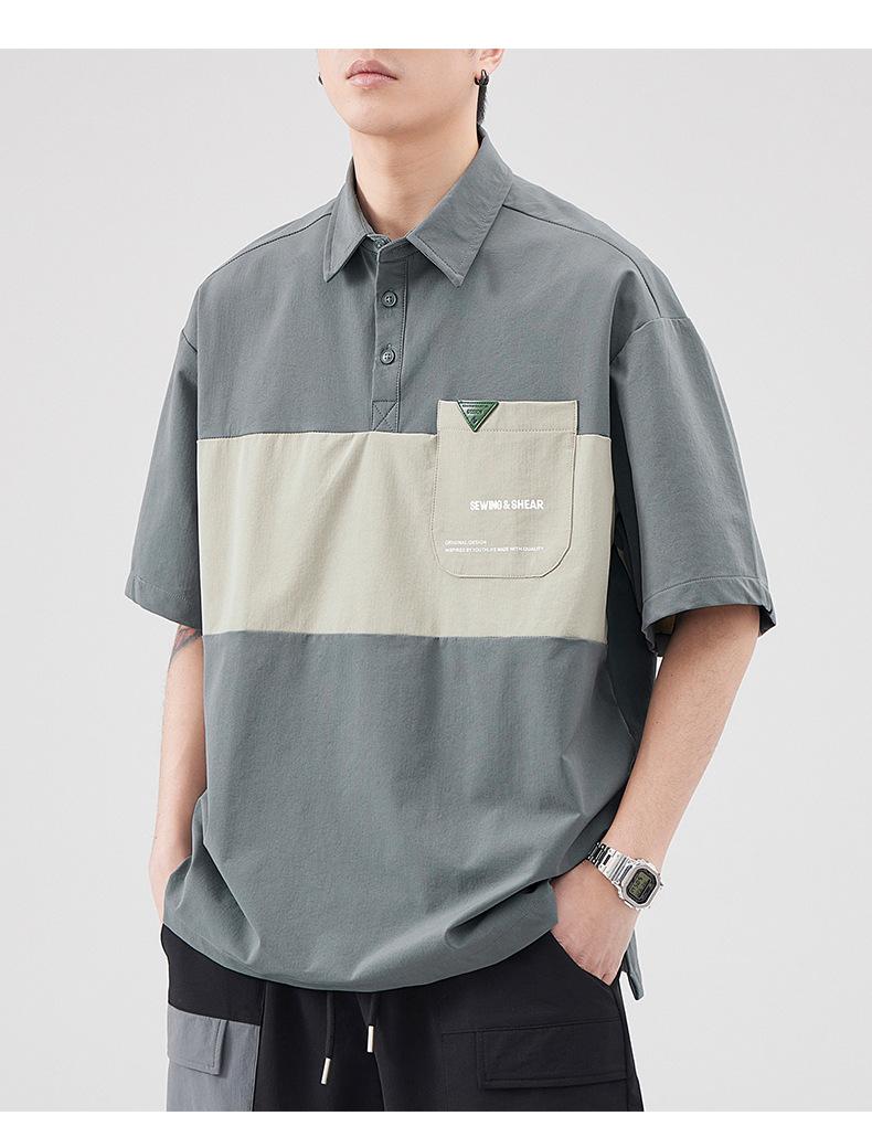 Polo de Solapa Transpirable de Seda de Hielo para Hombre Holgado Talla Grande Moda Costuras Verano Combinable Secado Rápido Camiseta de Manga Corta Top