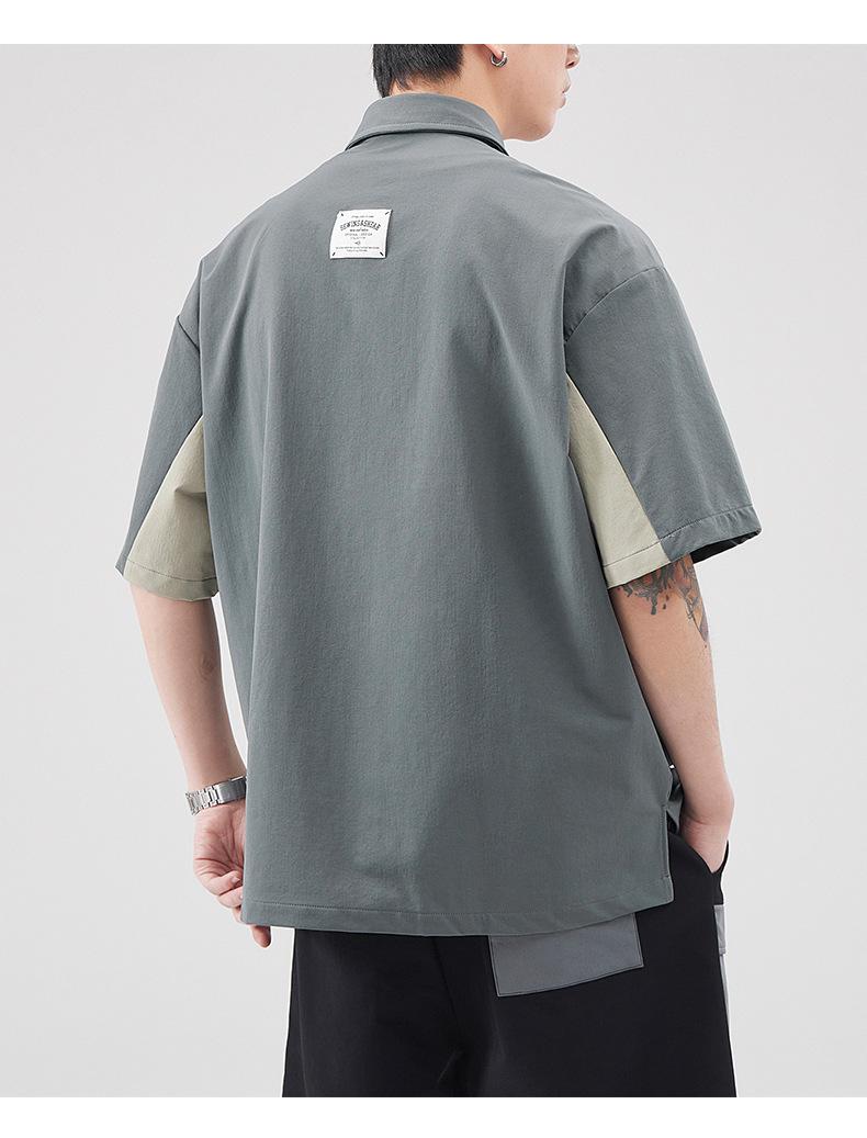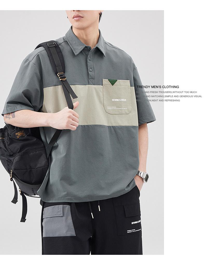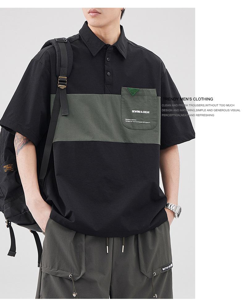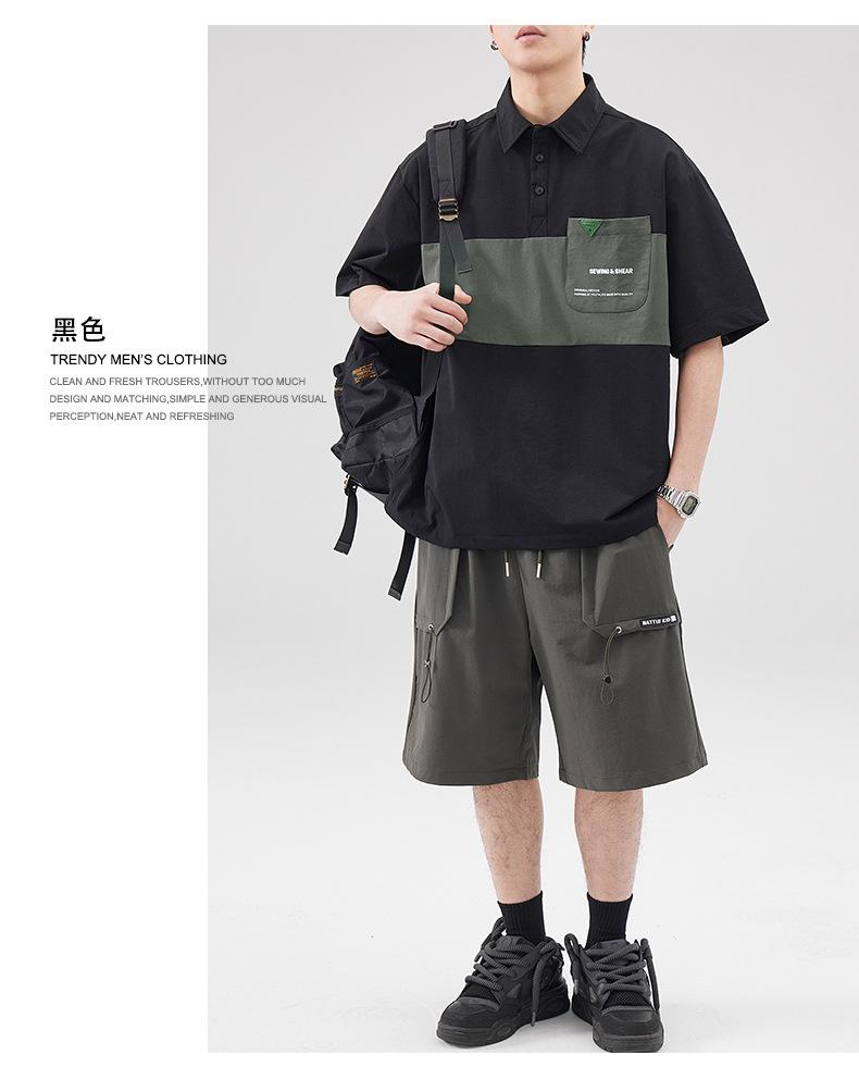 Polo de Solapa Transpirable de Seda de Hielo para Hombre Holgado Talla Grande Moda Costuras Verano Combinable Secado Rápido Camiseta de Manga Corta Top