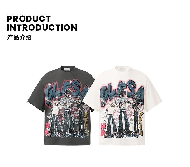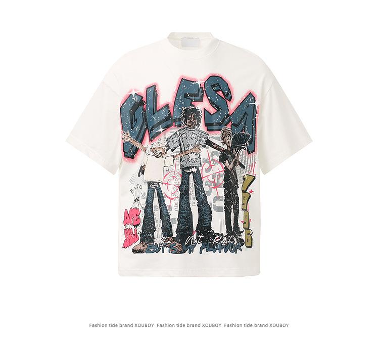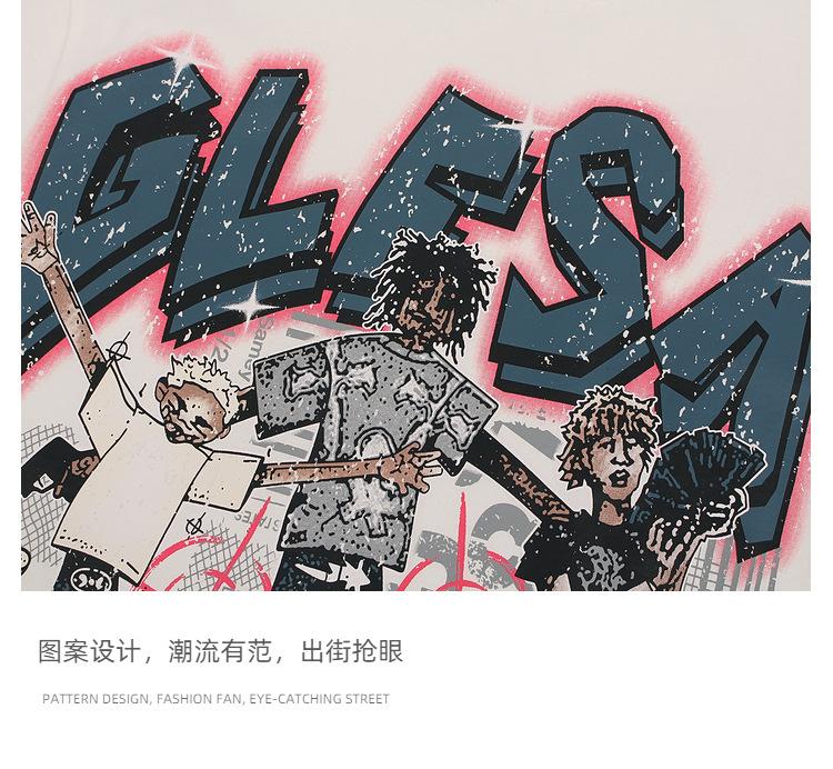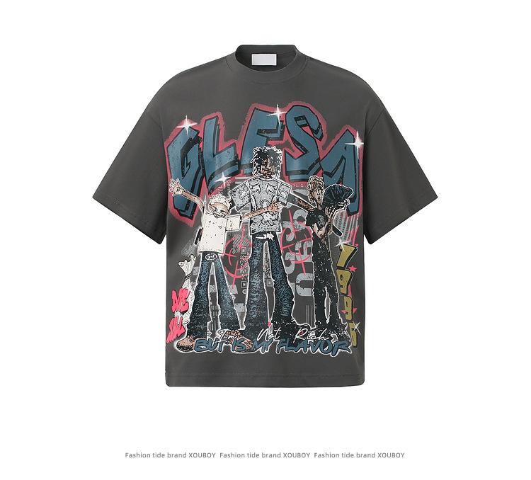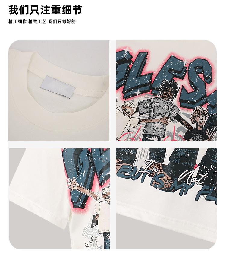 2025 Camiseta de Manga Corta Estilo Hong Kong Dibujo Animado Divertido Personaje Abstracto Estampado Callejera Suelta Guapo Hombres y Mujeres Juventud Media Manga
