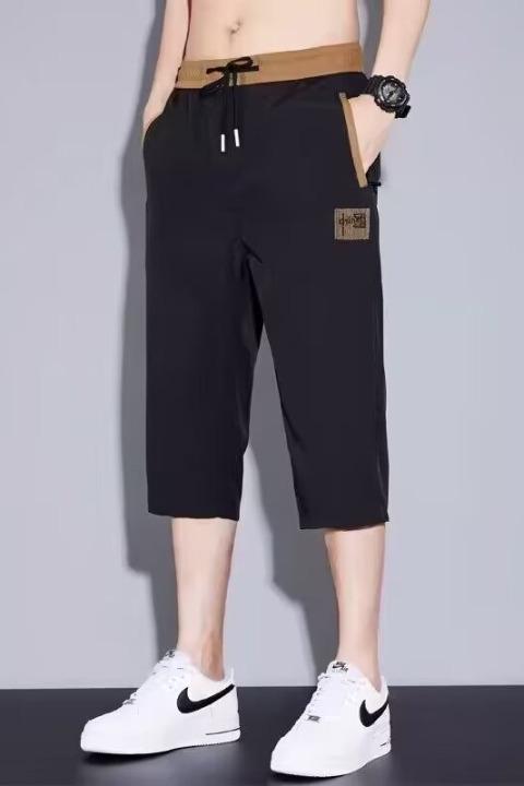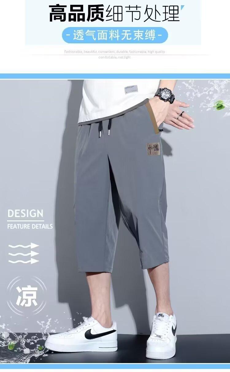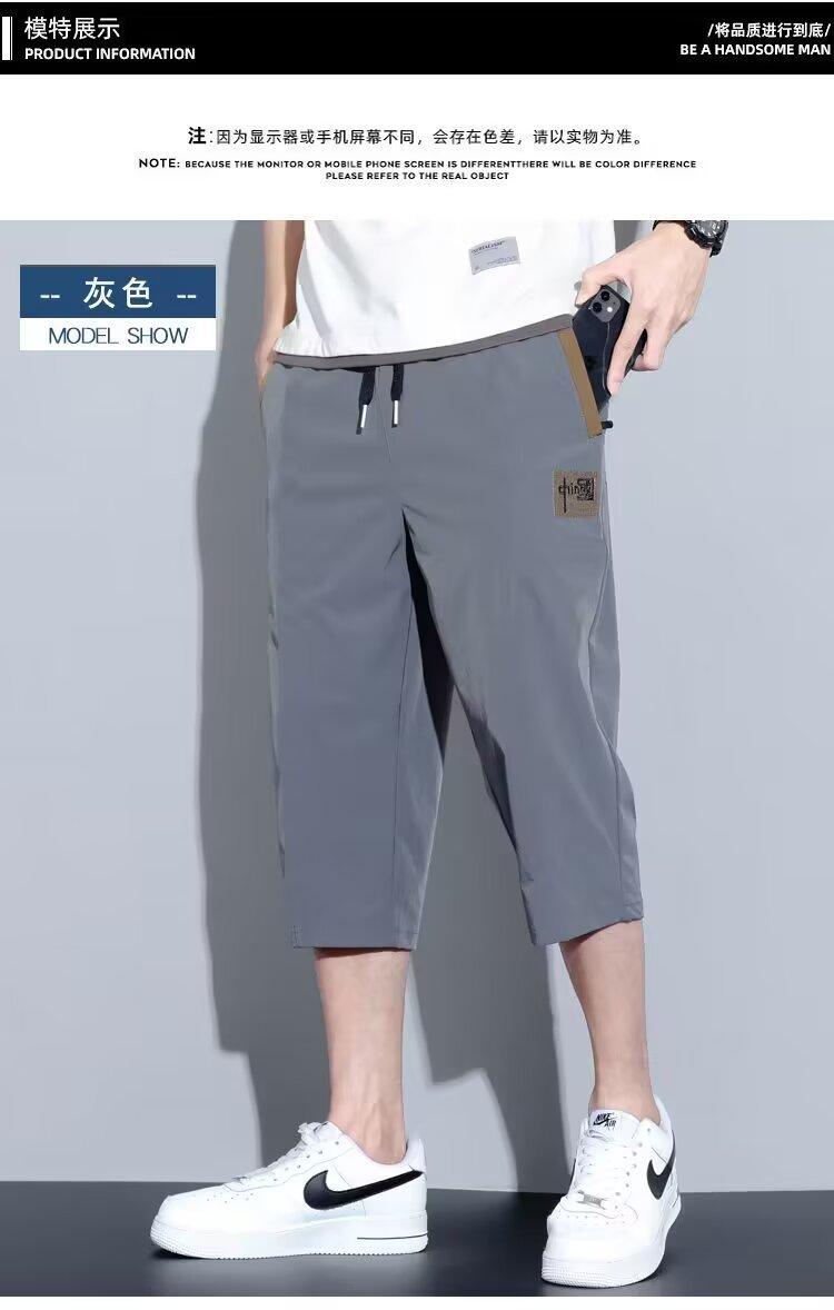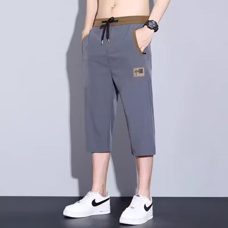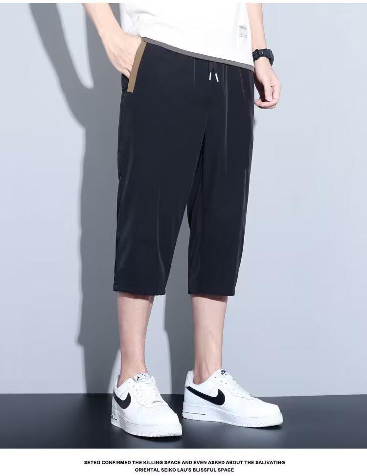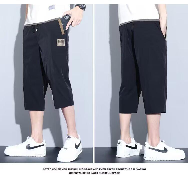 Pantalones Casuales Holgados de Verano para Hombre de Moda Talla Grande 2025 Delgados Transpirables Bolsillo Cremallera Deportivos 7/8