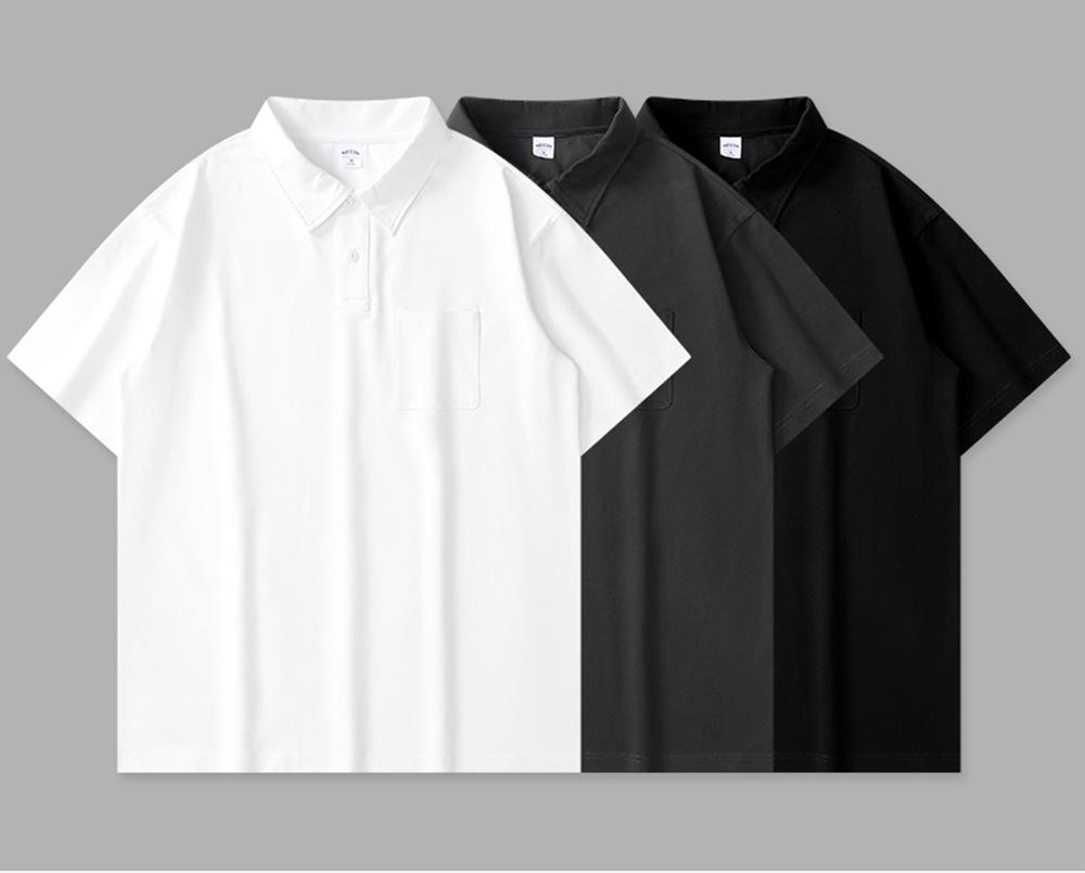 Polo Americano Retro Simple Lavado Pesado Algodón Suelto Casual Neutral Pareja Camiseta de Manga Corta para Hombre