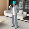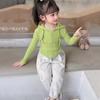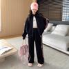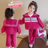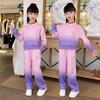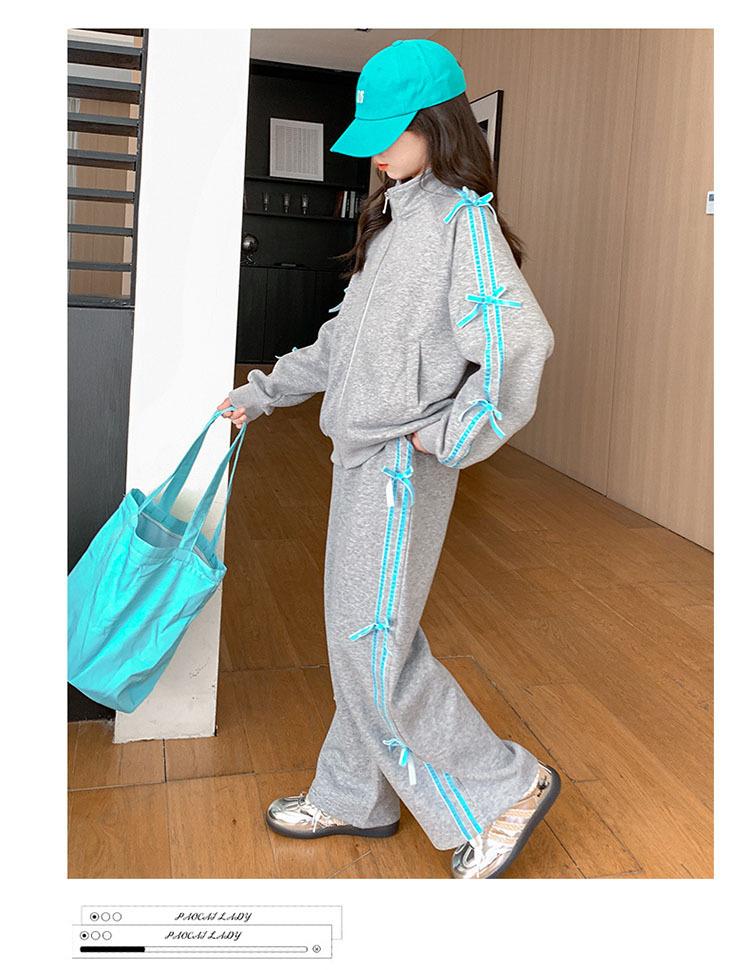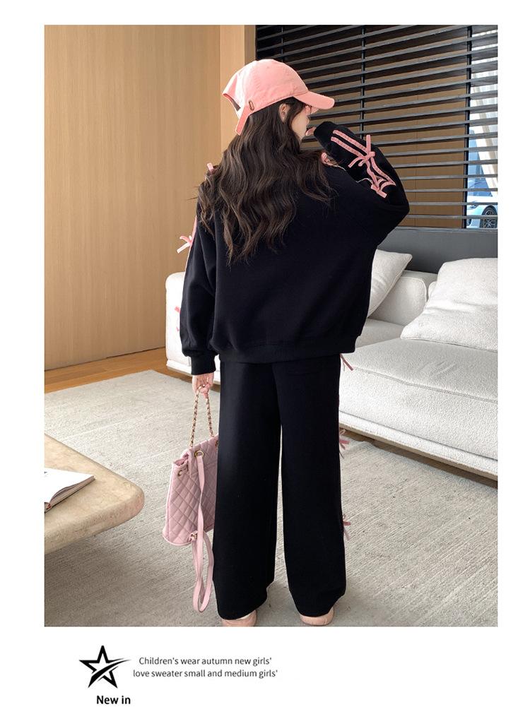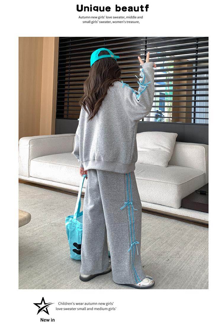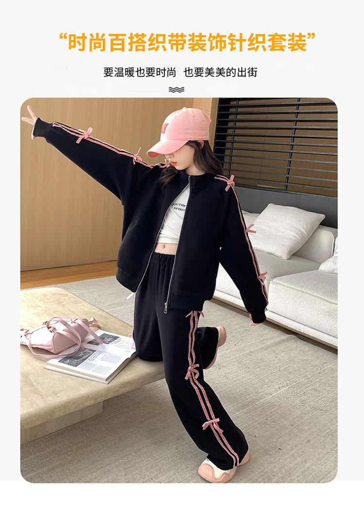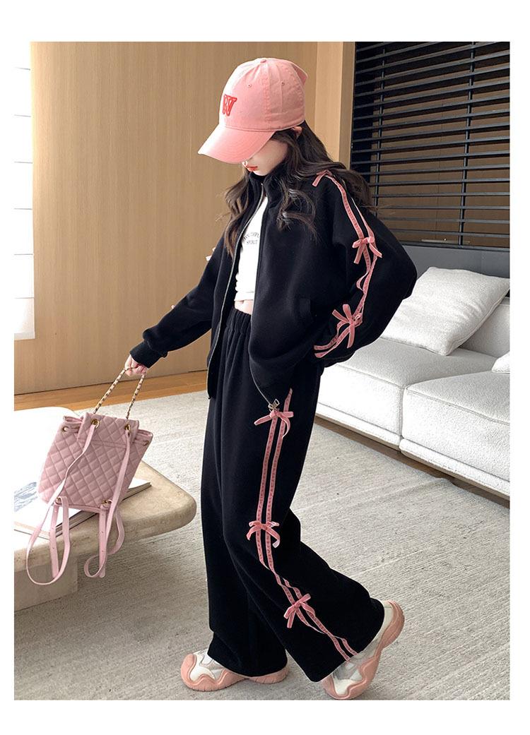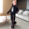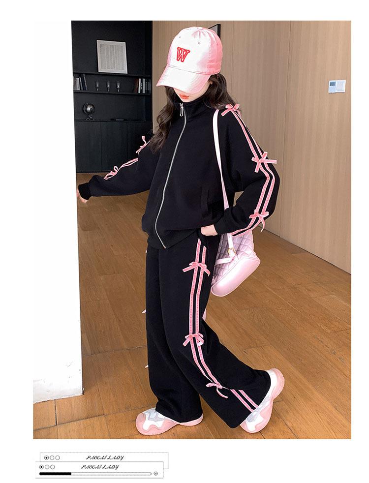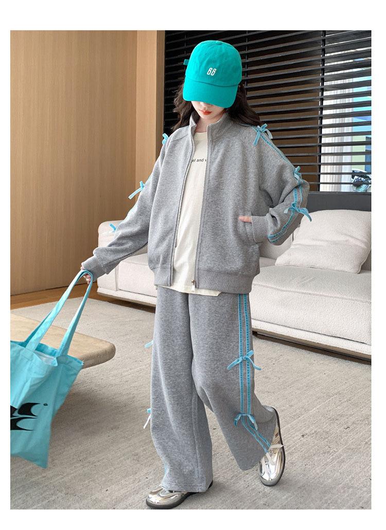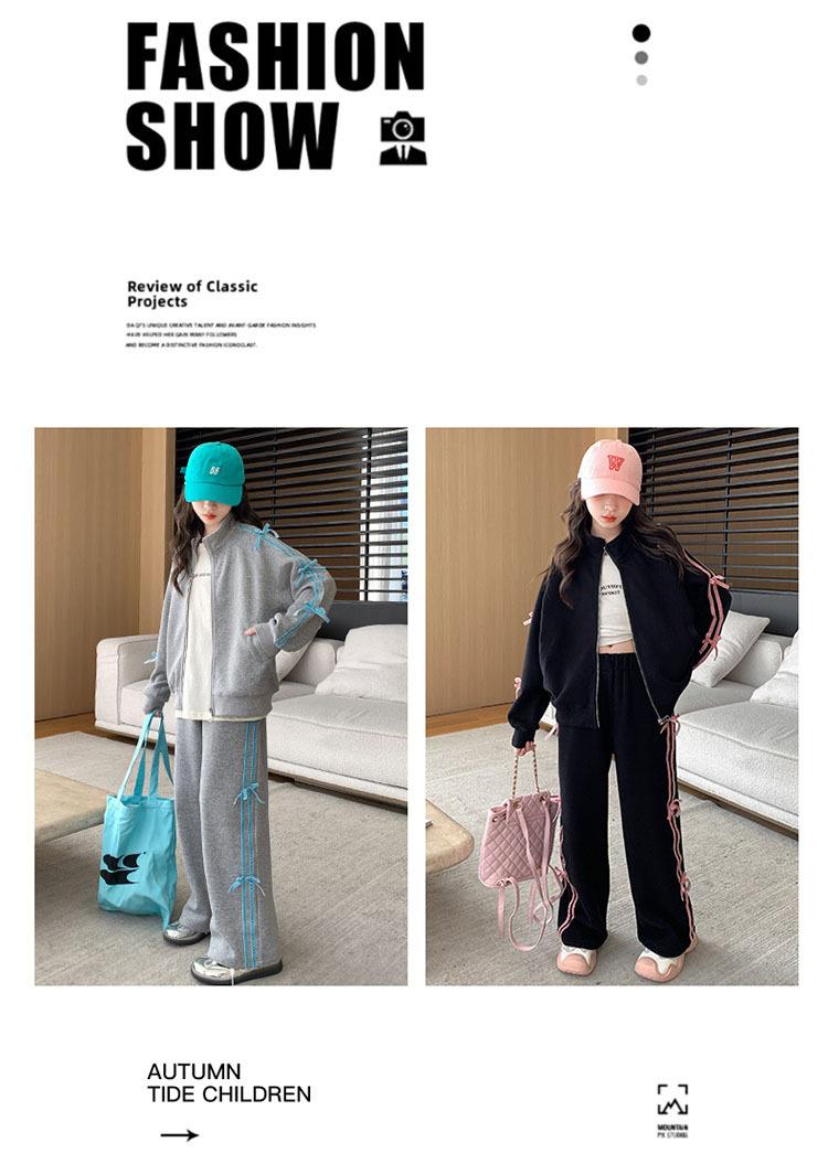 Moda Otoño Niñas Lazo Casual Pierna Ancha Deportivo Conjunto de Dos Piezas Nuevo Traje Sudadera con Cierre y Cuello Alto para Niños