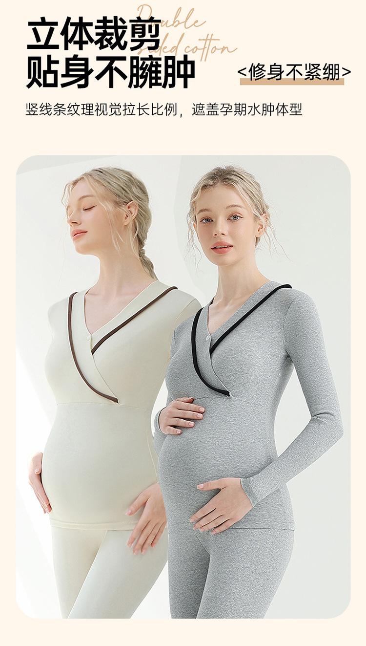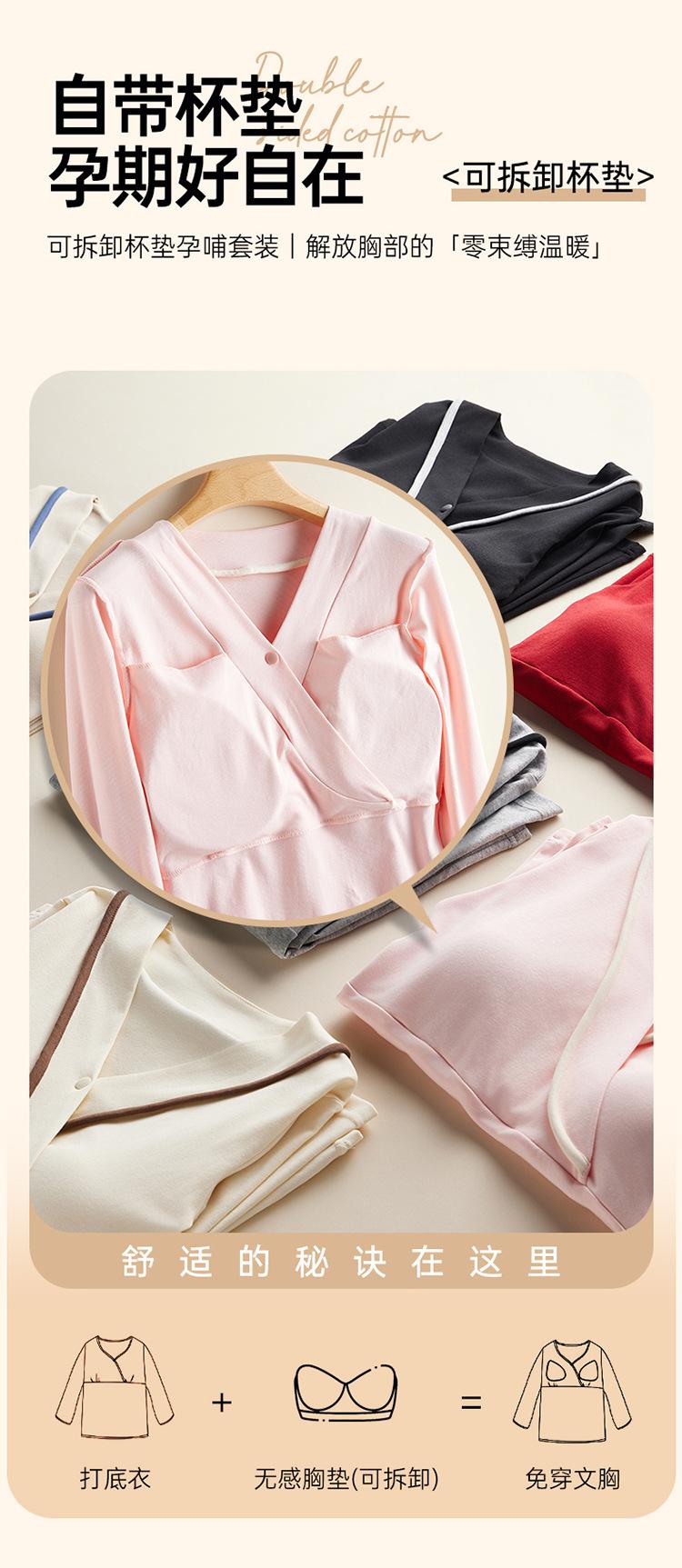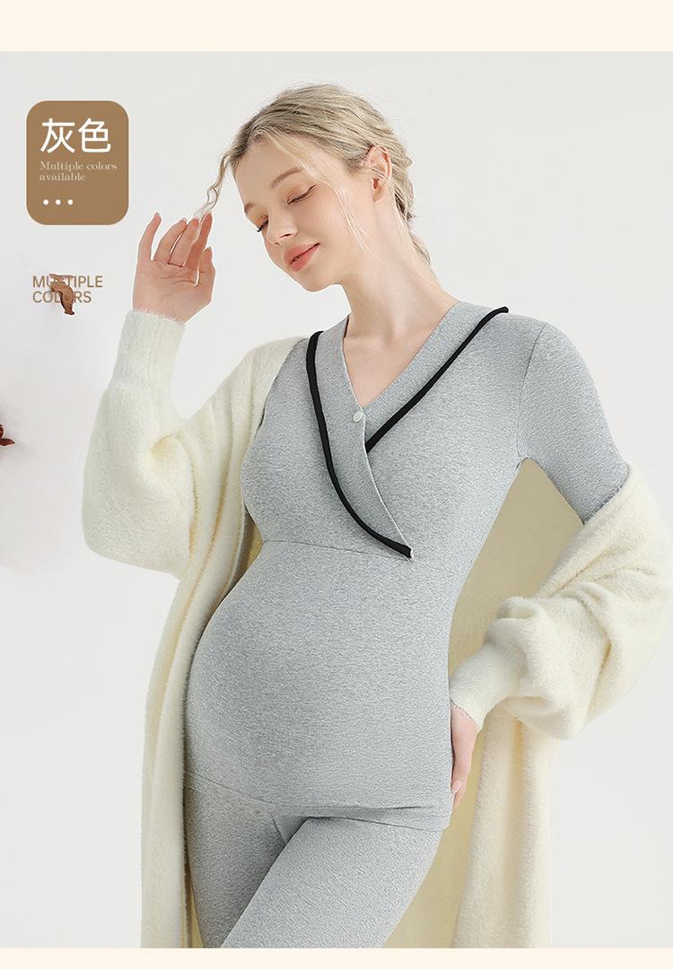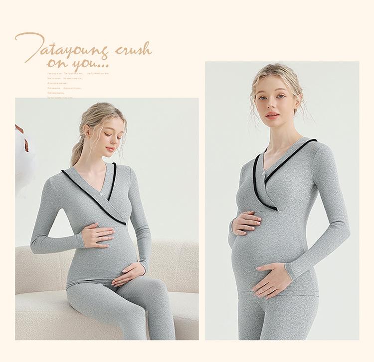 Conjunto de Algodón Puro para Otoño e Invierno para Mujeres Embarazadas Estilo Otoño e Invierno Pijama de Lactancia Ropa para Confinamiento Postparto Calidez para las Cuatro Estaciones Ropa Interior de Uso Libre