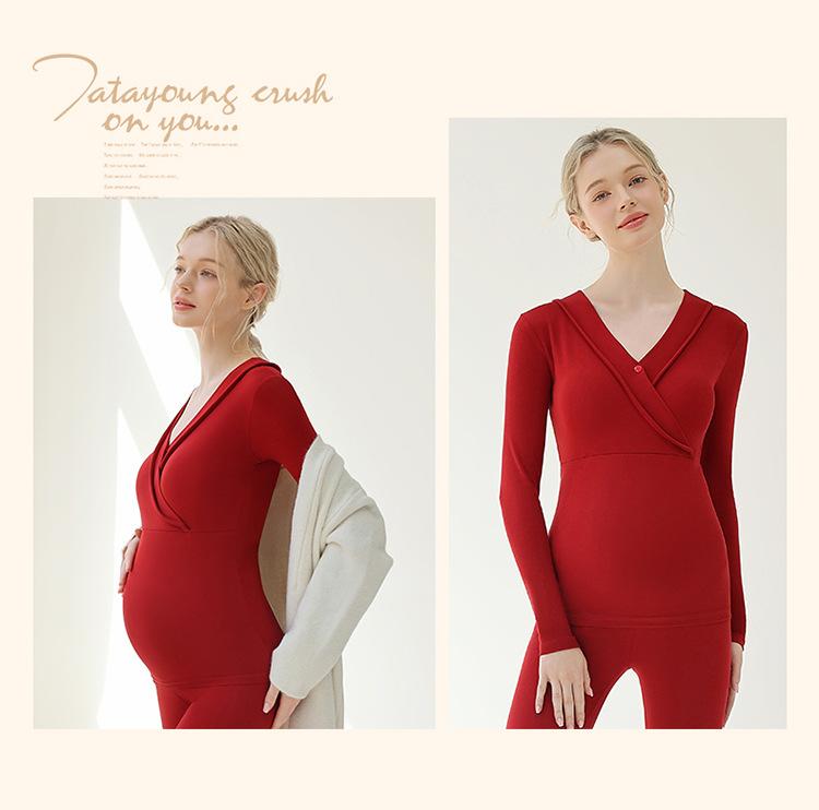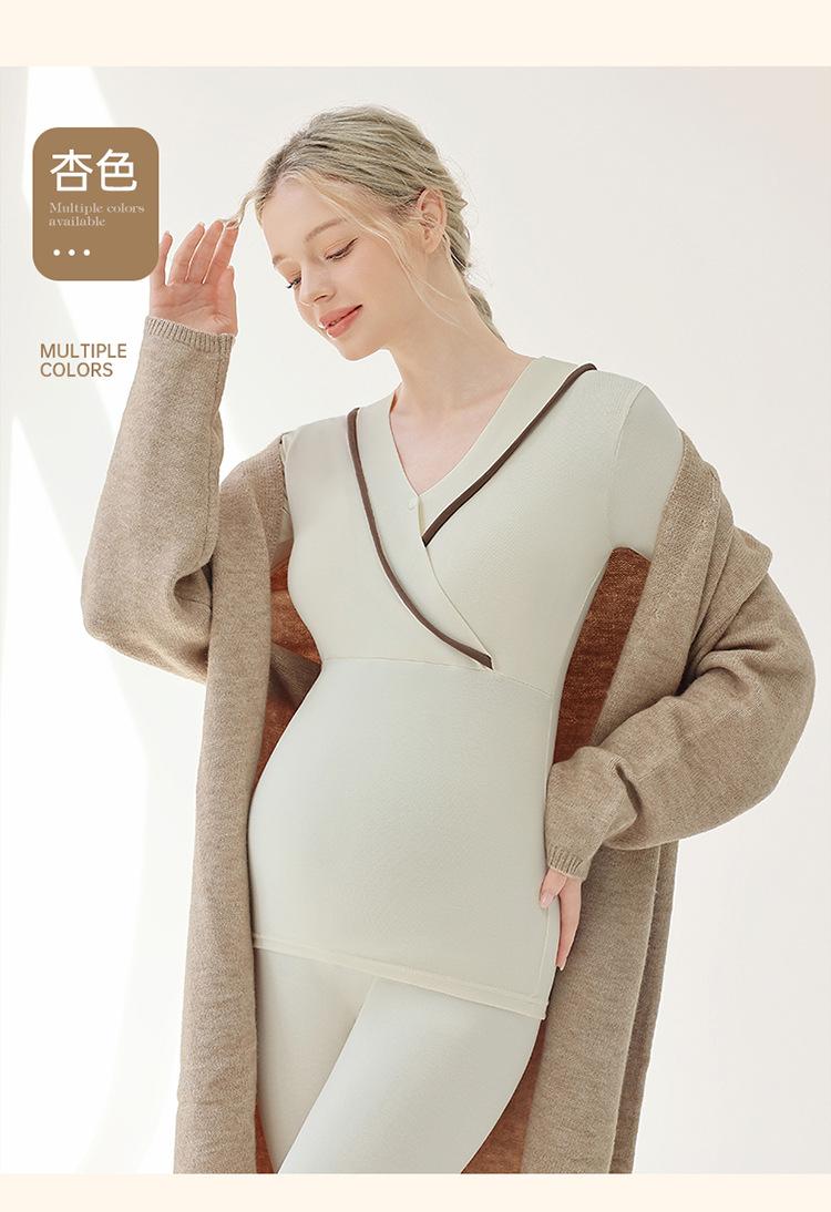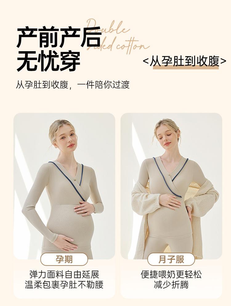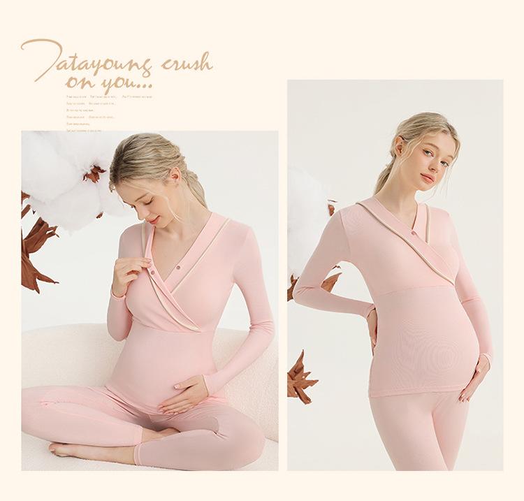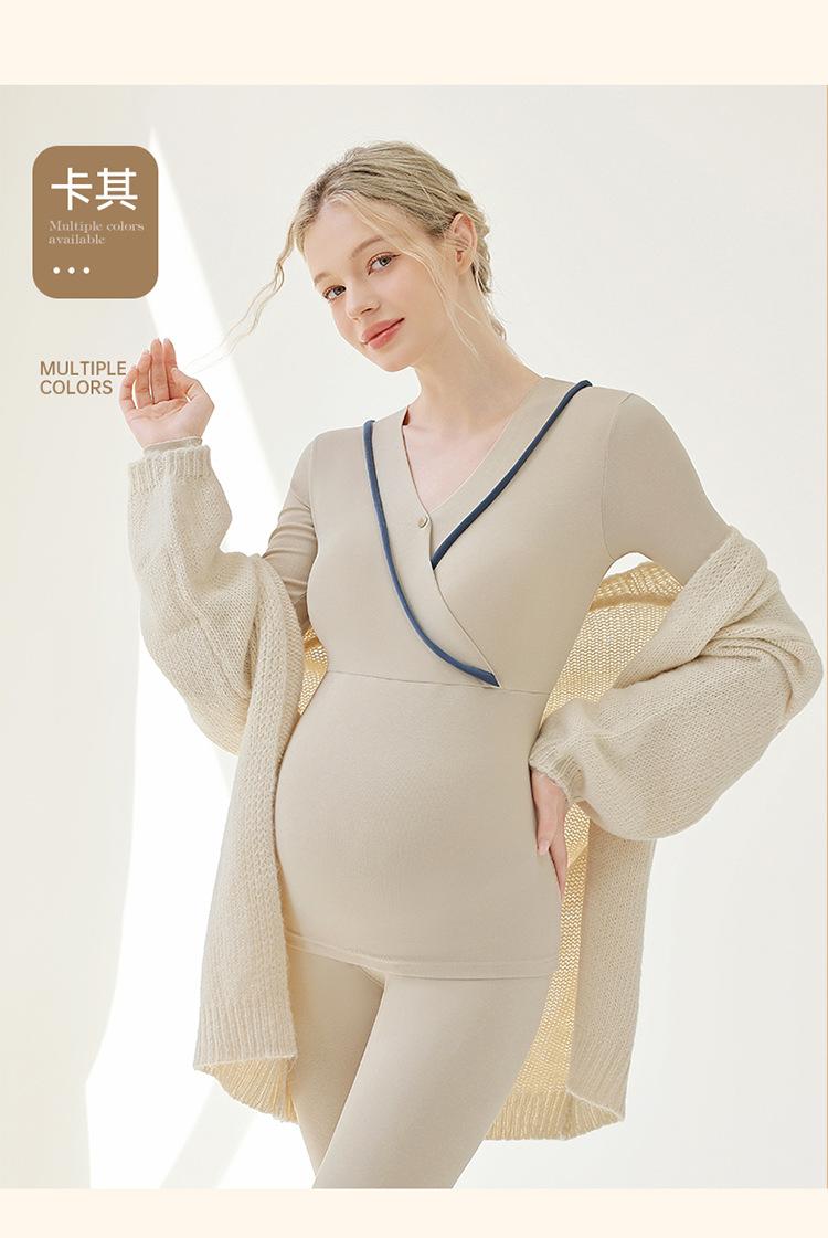Conjunto de Algodón Puro para Otoño e Invierno para Mujeres Embarazadas Estilo Otoño e Invierno Pijama de Lactancia Ropa para Confinamiento Postparto Calidez para las Cuatro Estaciones Ropa Interior de Uso Libre