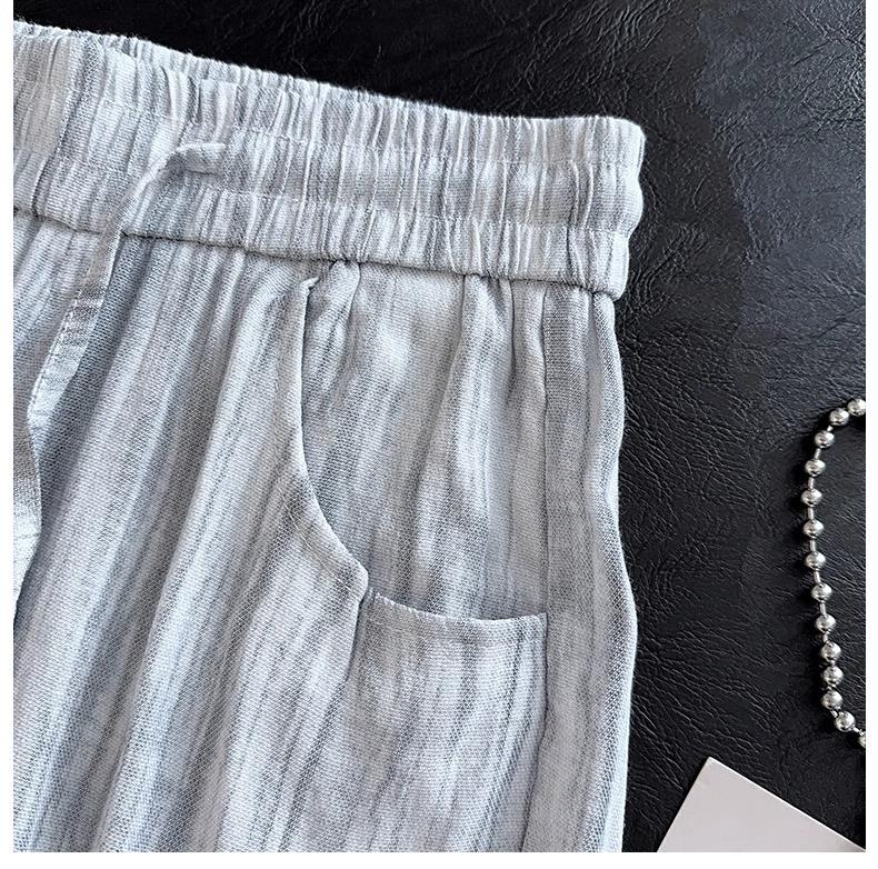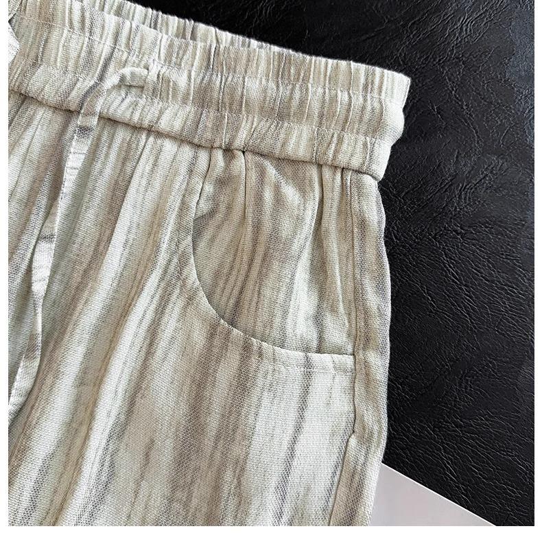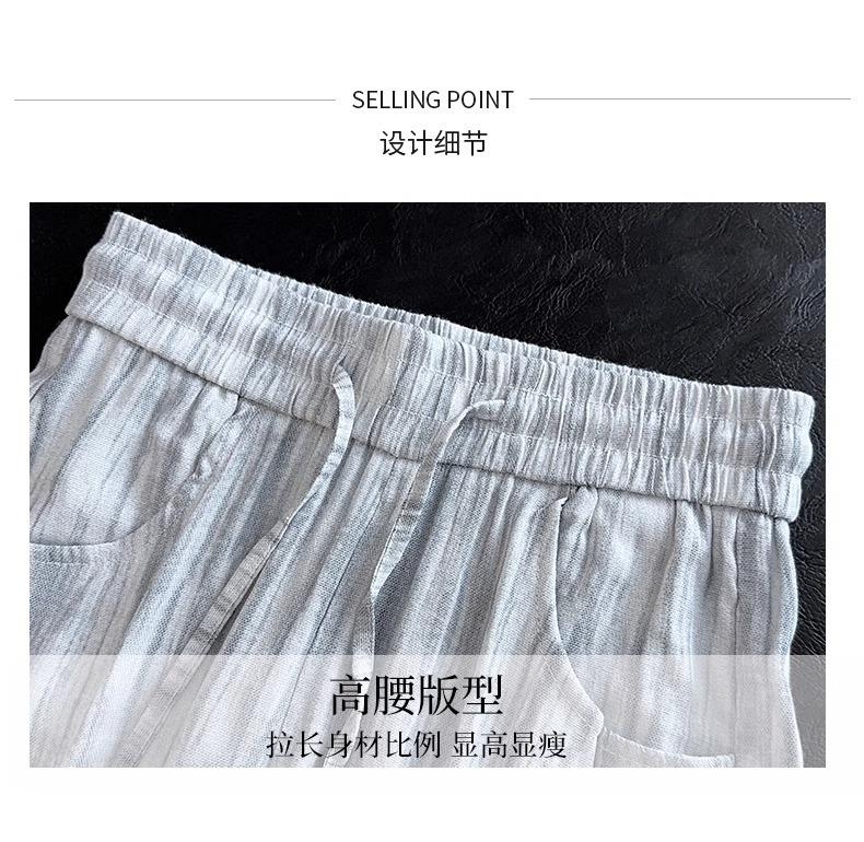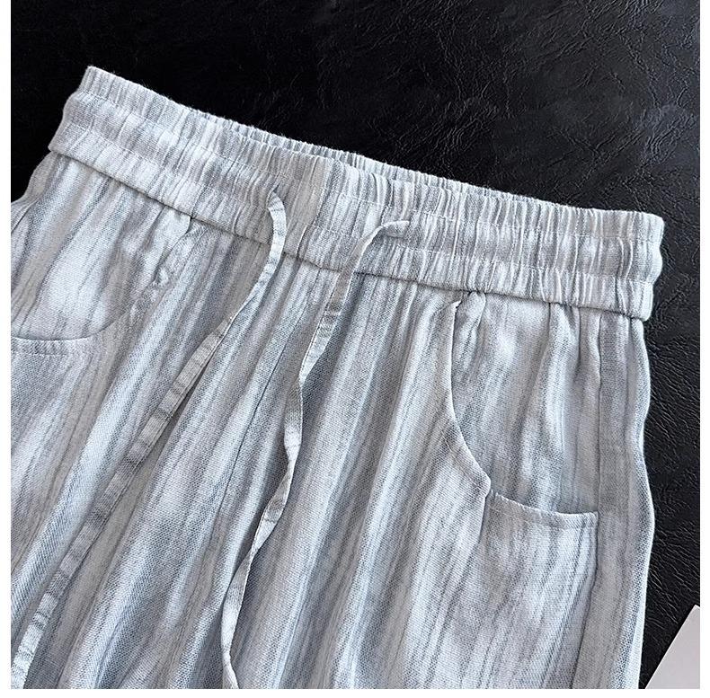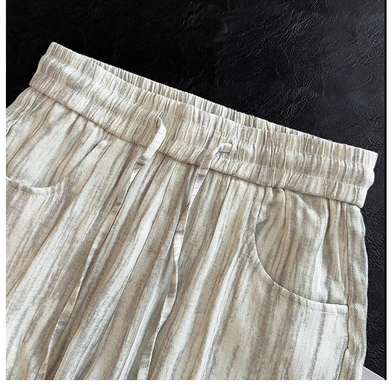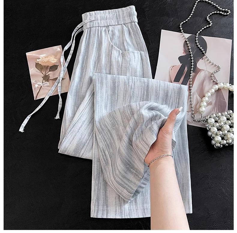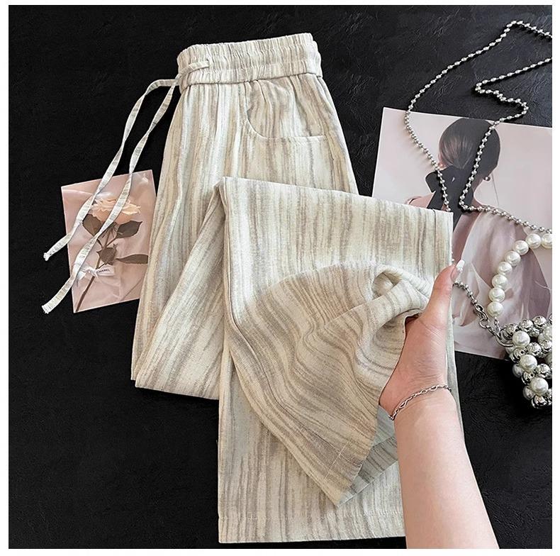 En stock 2025 Primavera/Verano nuevo algodón lino rayas pantalones anchos pantalones largos holgados adelgazantes tie-dye delgados pantalones rectos mujer