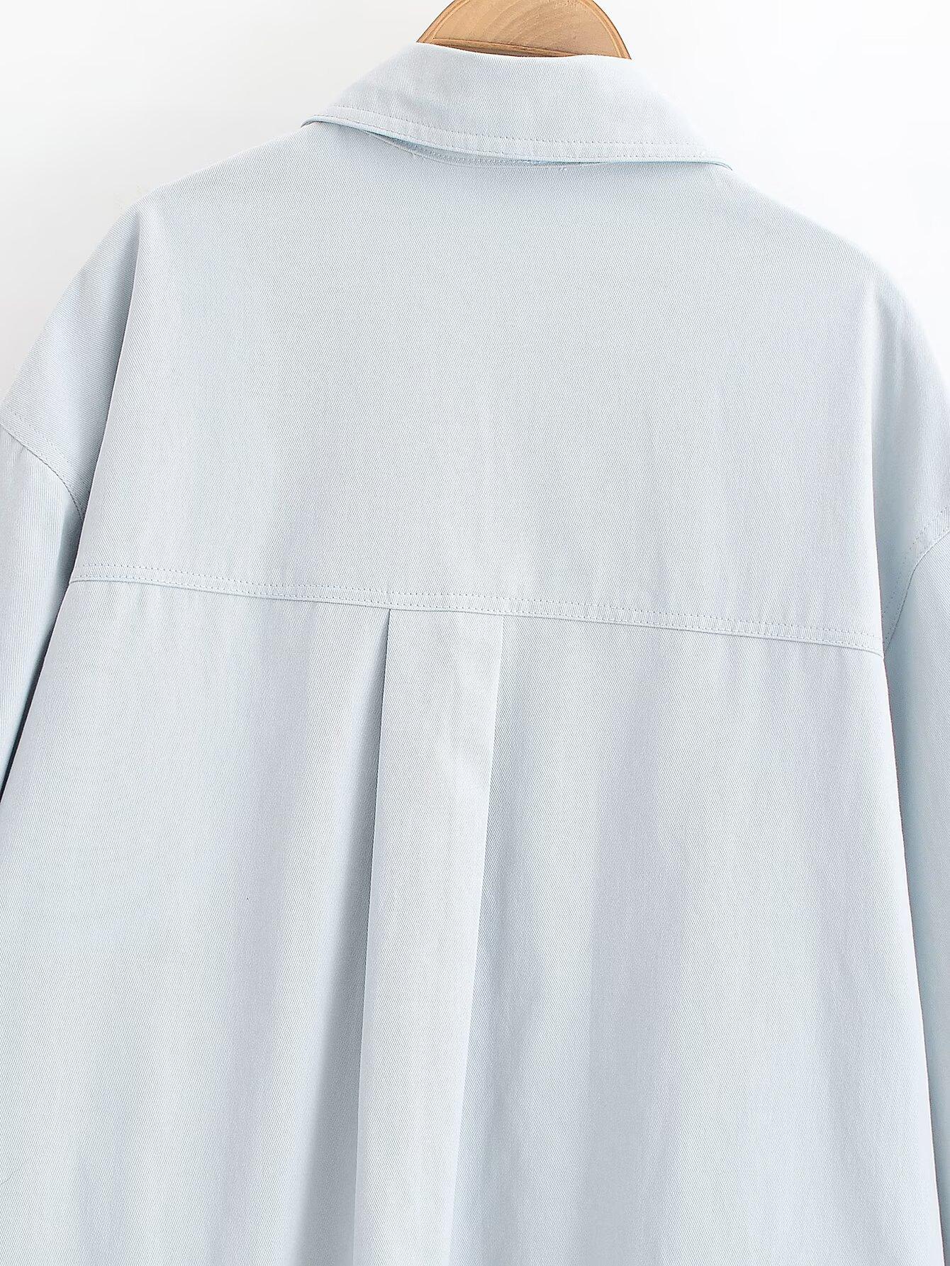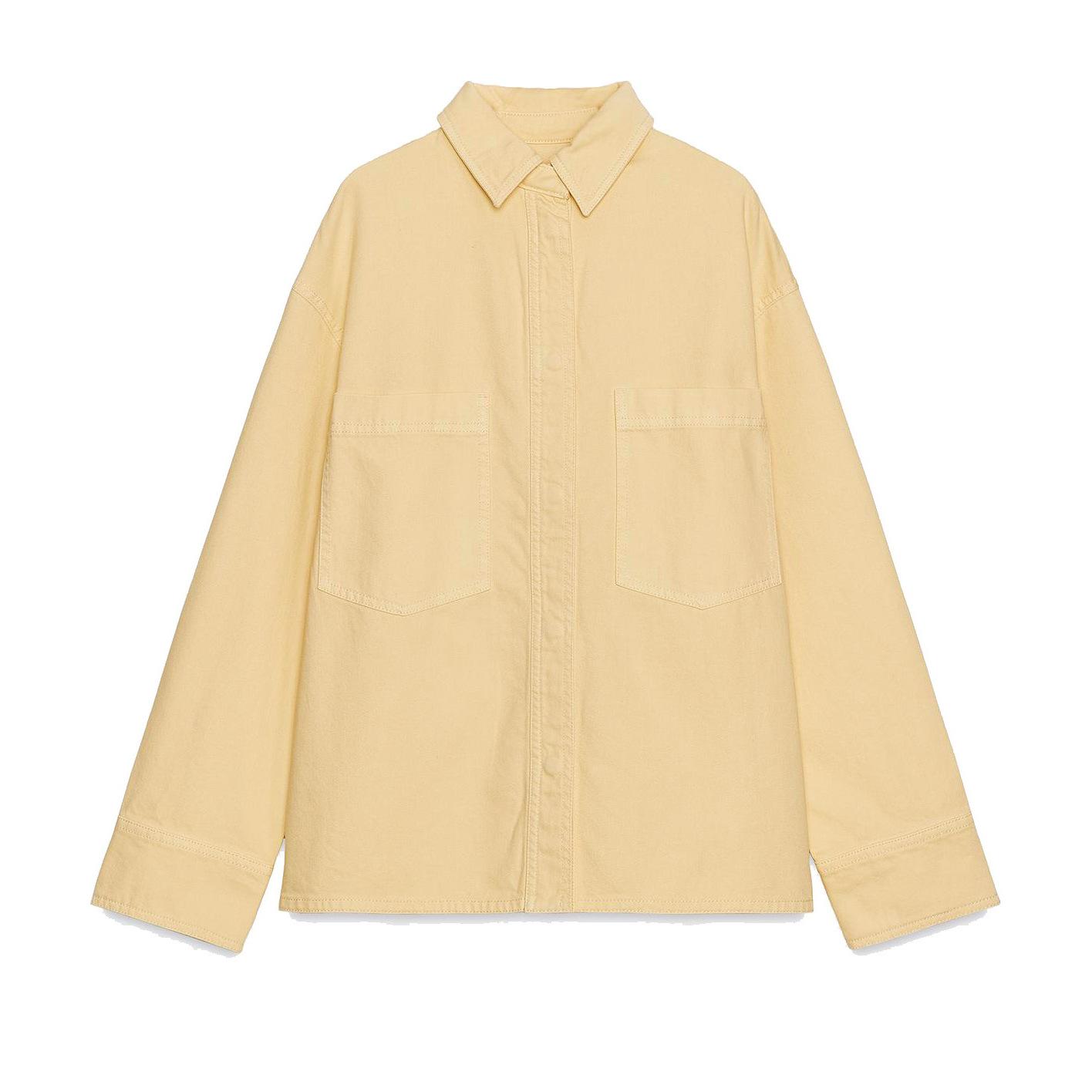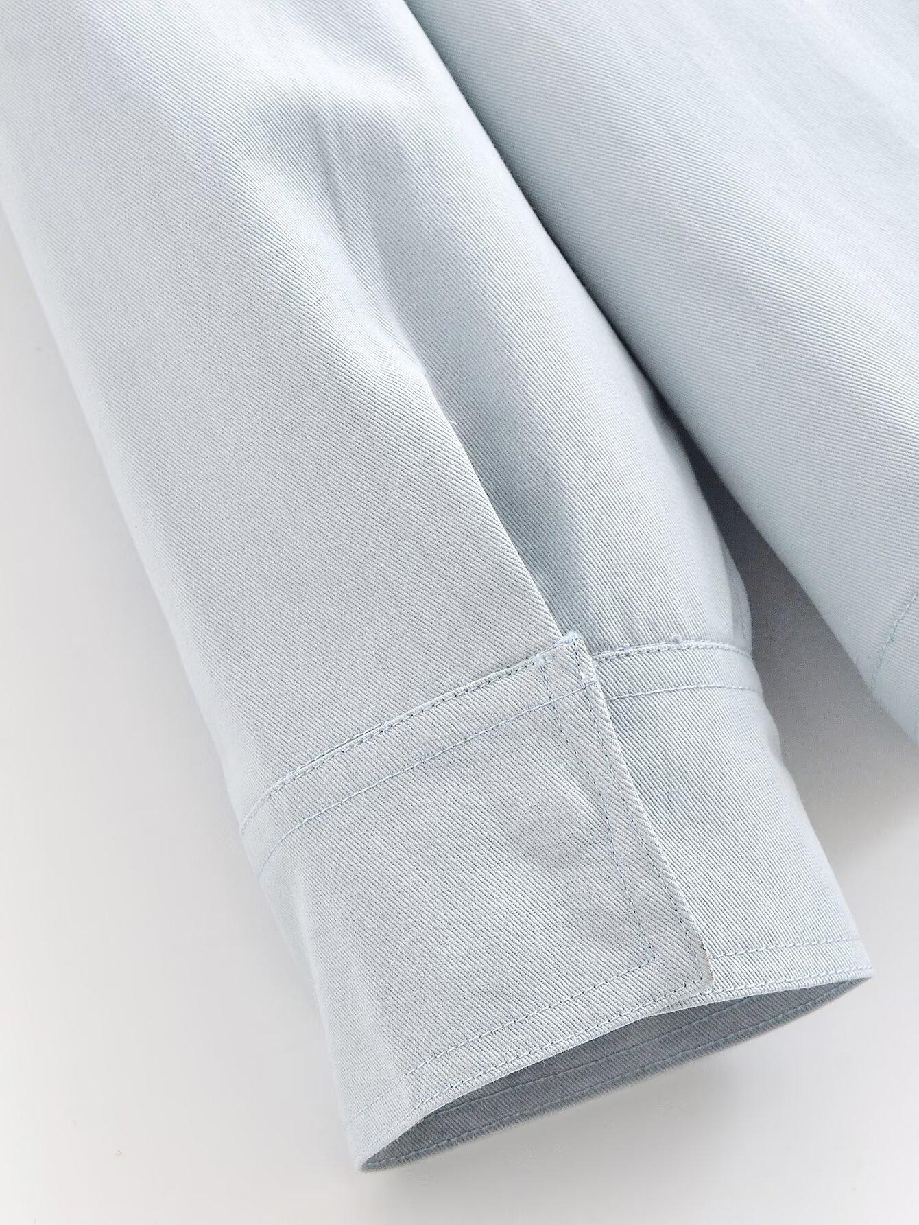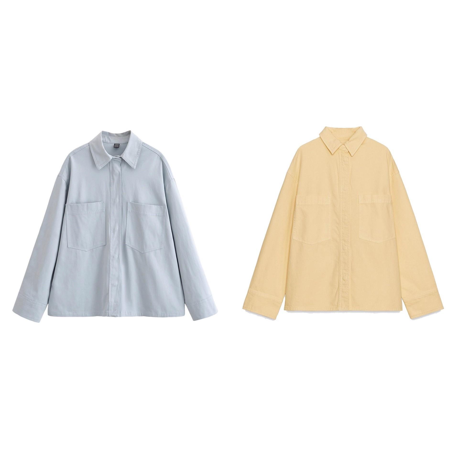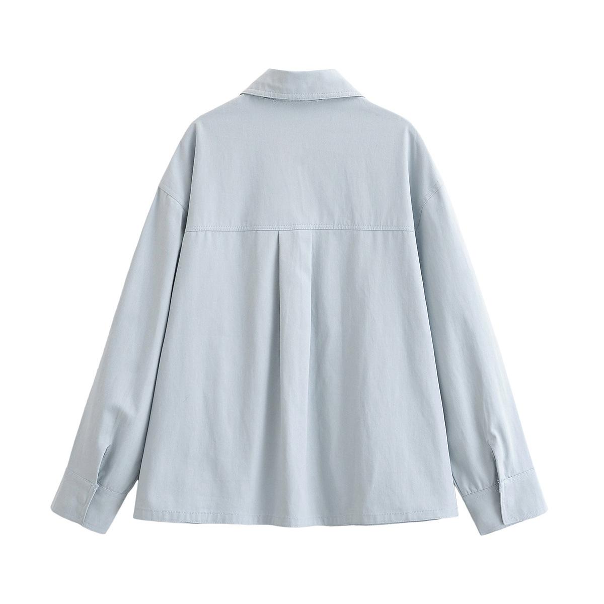 Ropa de mujer de comercio exterior transfronterizo 2025 otoño estilo europeo y americano solapa manga larga decoración de bolsillo color sólido camisa top mujer A711584F