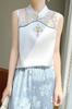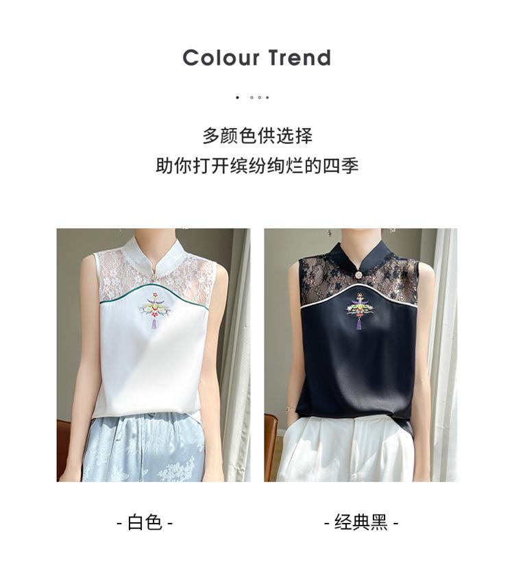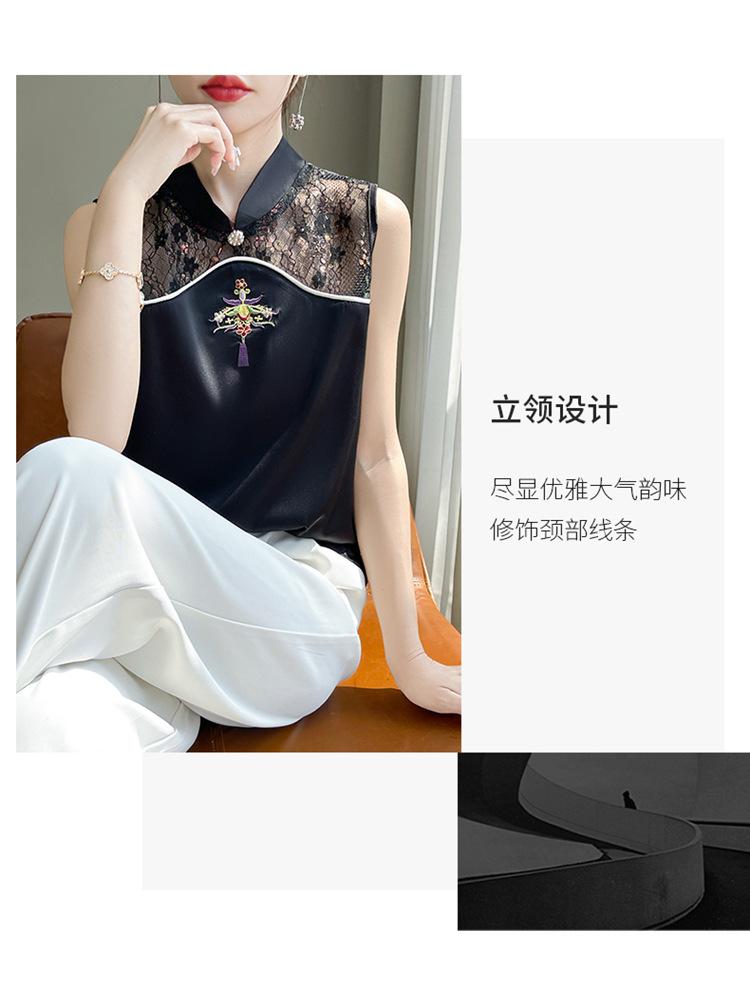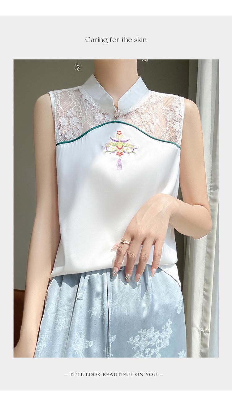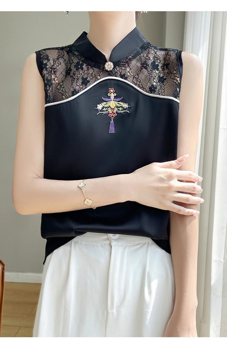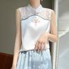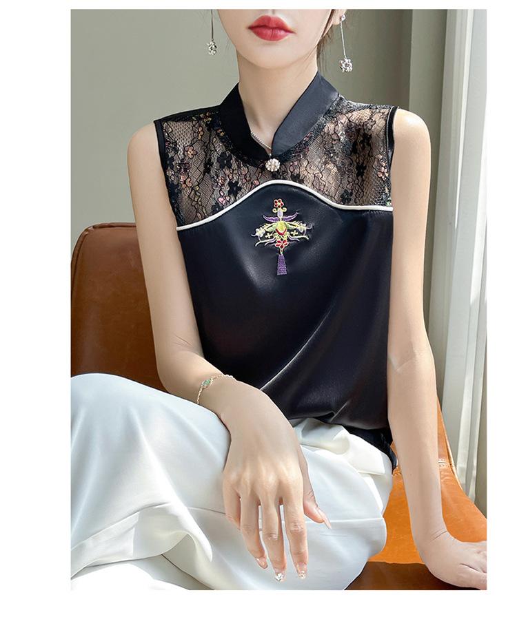 Compra Primavera y Verano 2025 Nuevo Estilo Chino Estilo Nacional Chaleco de Cuello Satén para Mujer Encaje Calado Bordado Florete Camisa Base al por mayor en Joom.pro