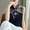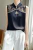 Primavera y Verano 2025 Nuevo Estilo Chino Estilo Nacional Chaleco de Cuello Satén para Mujer Encaje Calado Bordado Florete Camisa Base