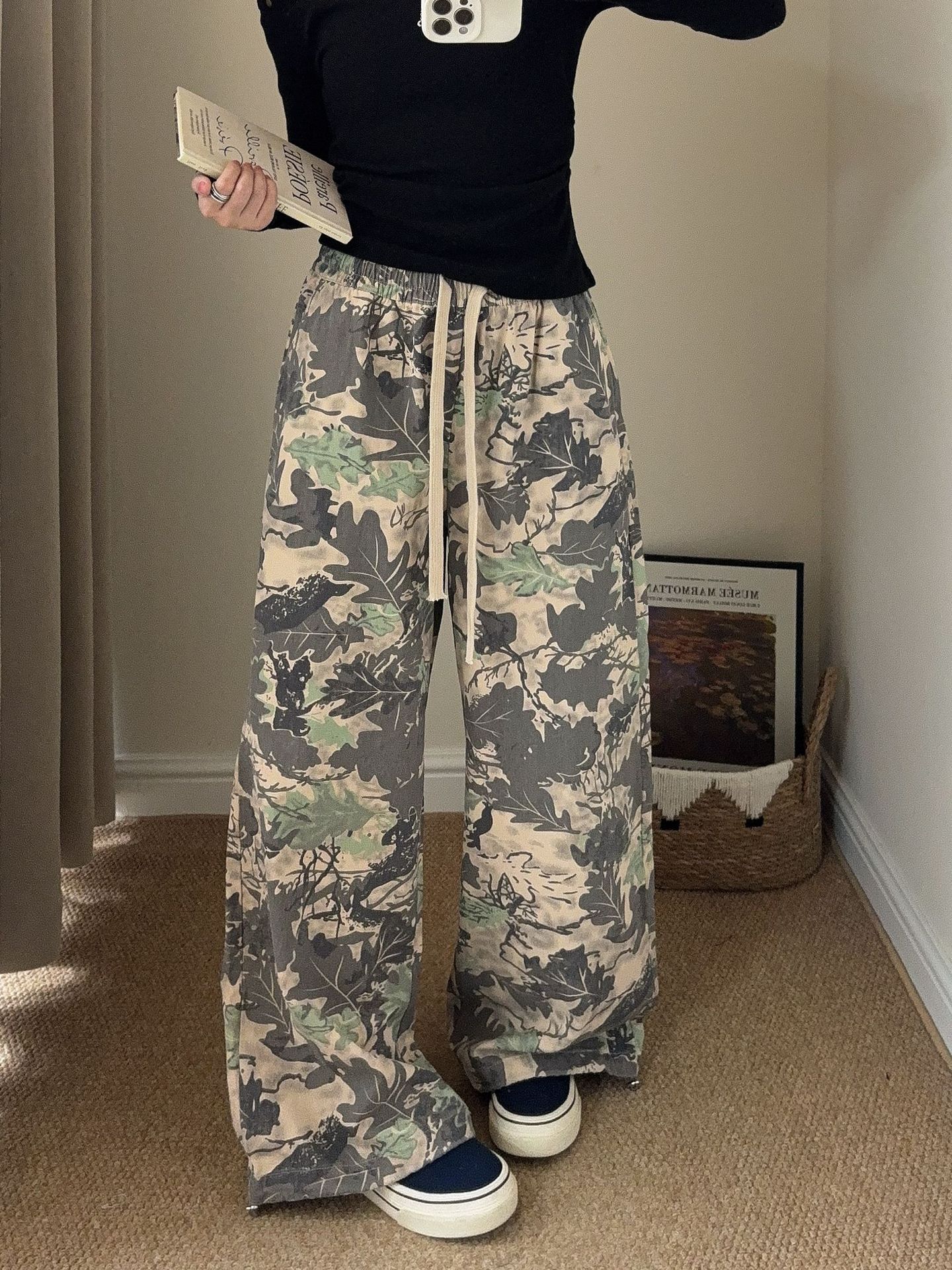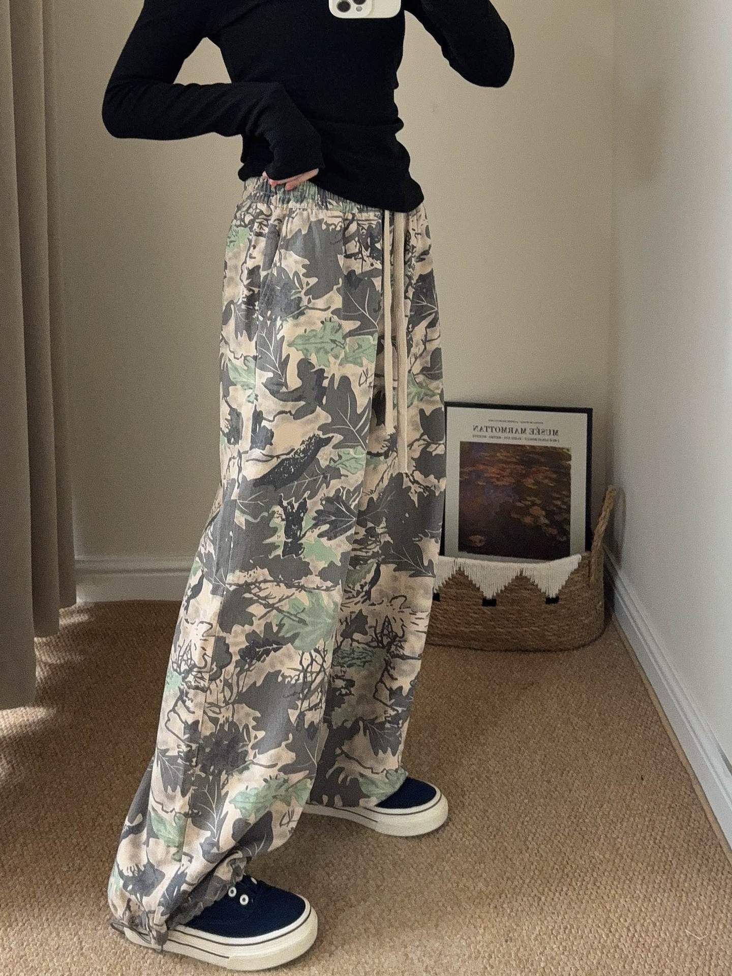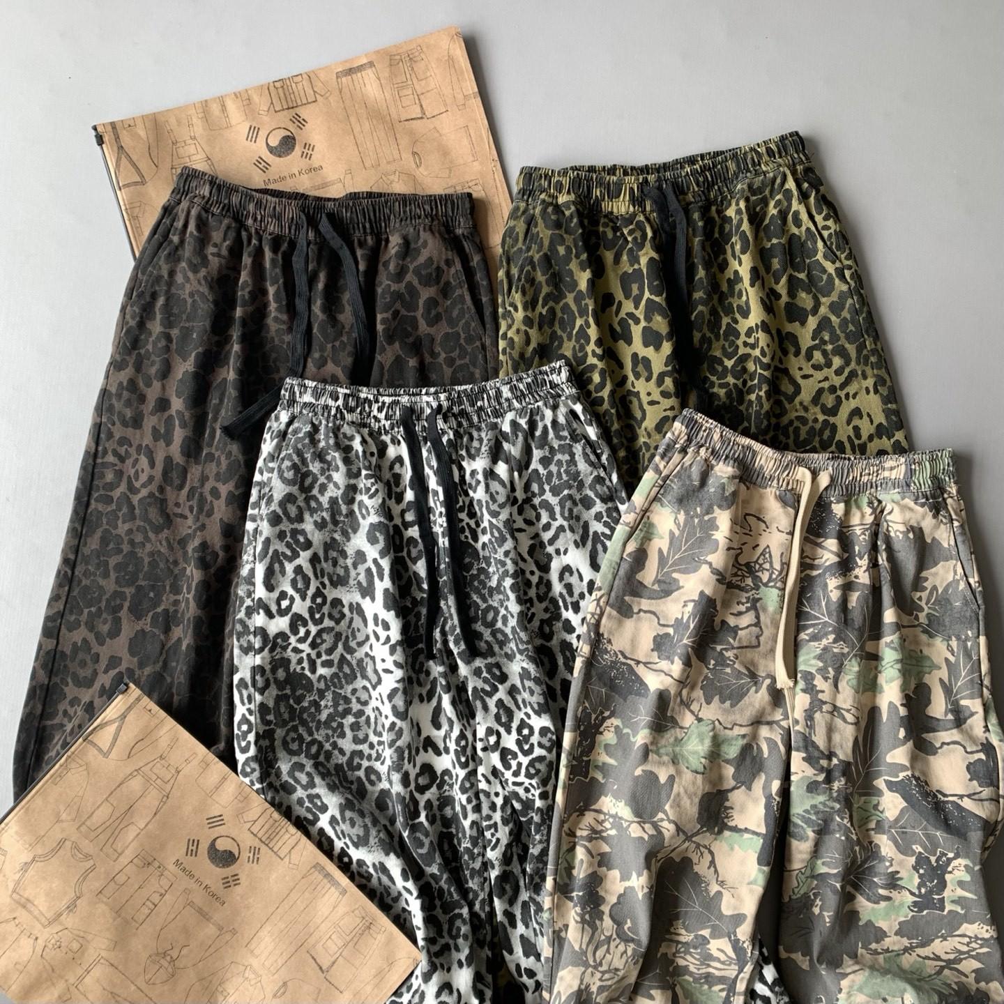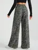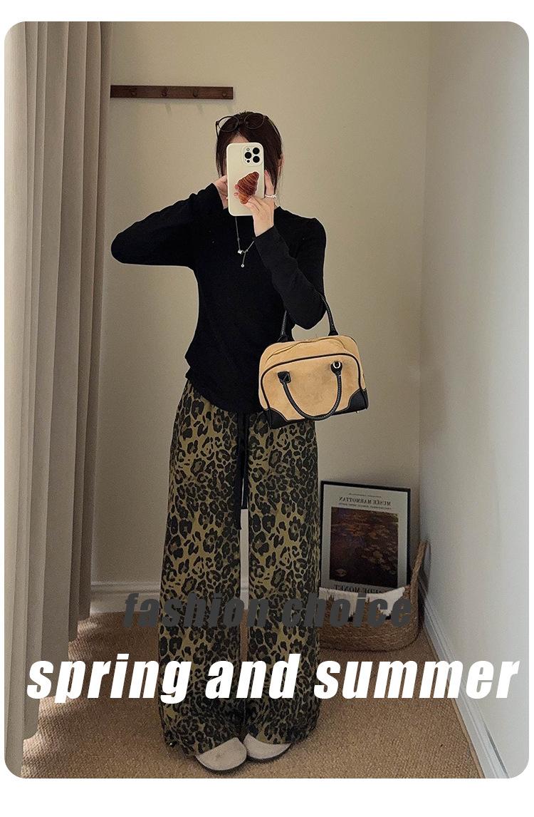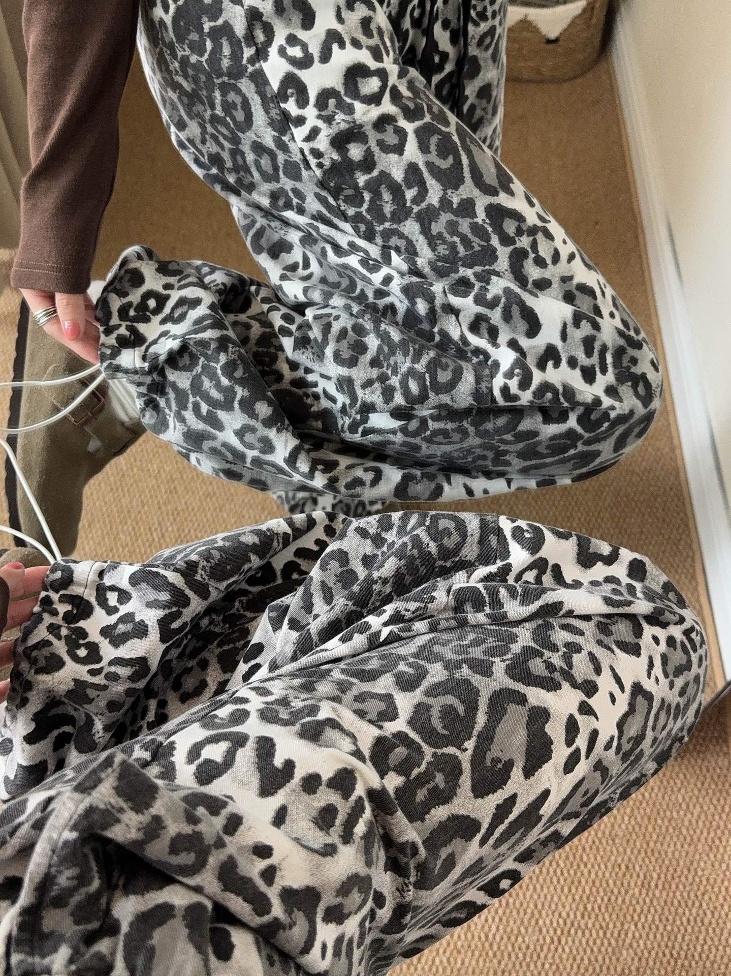 Coma mismo estilo agencia coreana retro americano estampado de leopardo pantalones anchos otoño nuevo caída holgados casuales pantalones largos de mujer