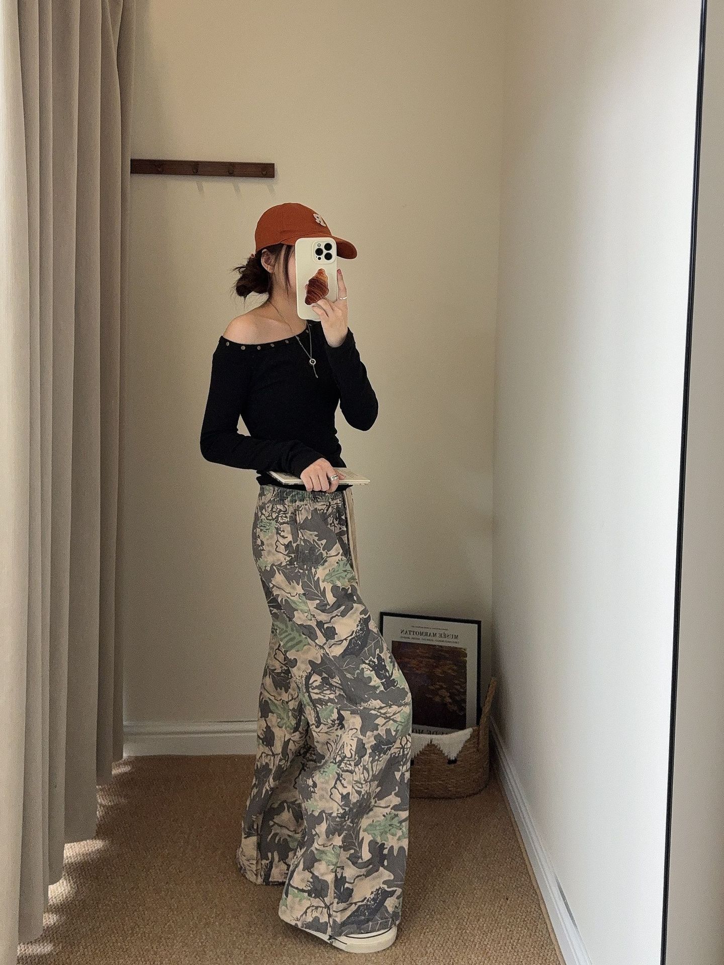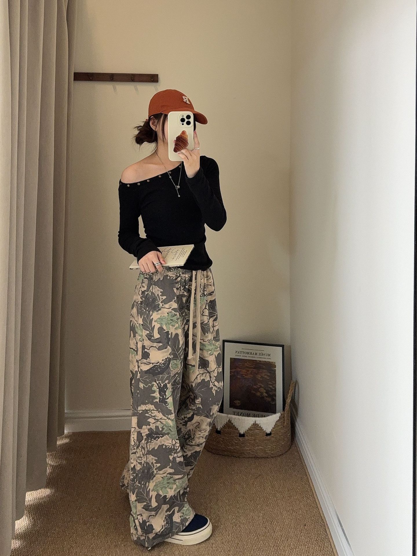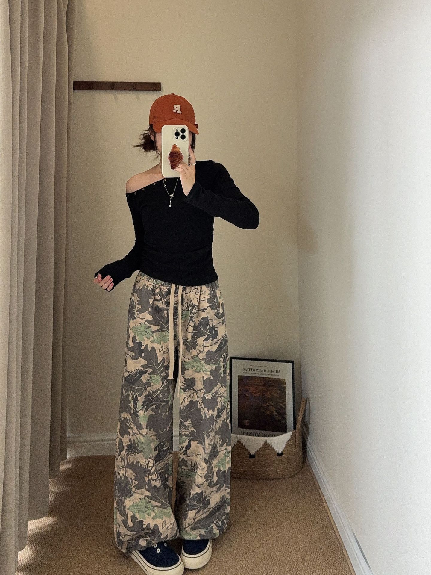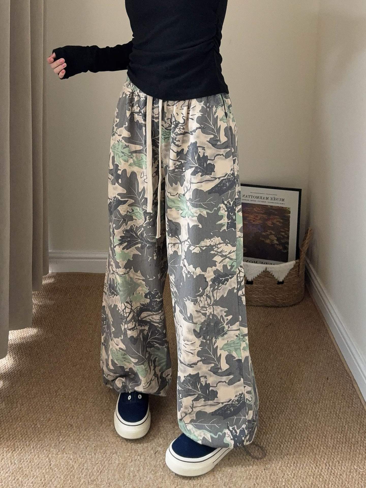 Coma mismo estilo agencia coreana retro americano estampado de leopardo pantalones anchos otoño nuevo caída holgados casuales pantalones largos de mujer