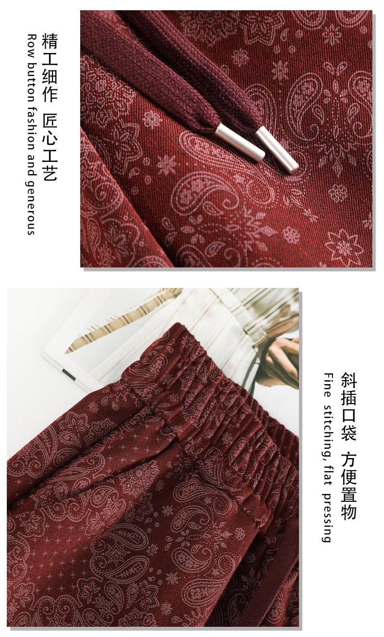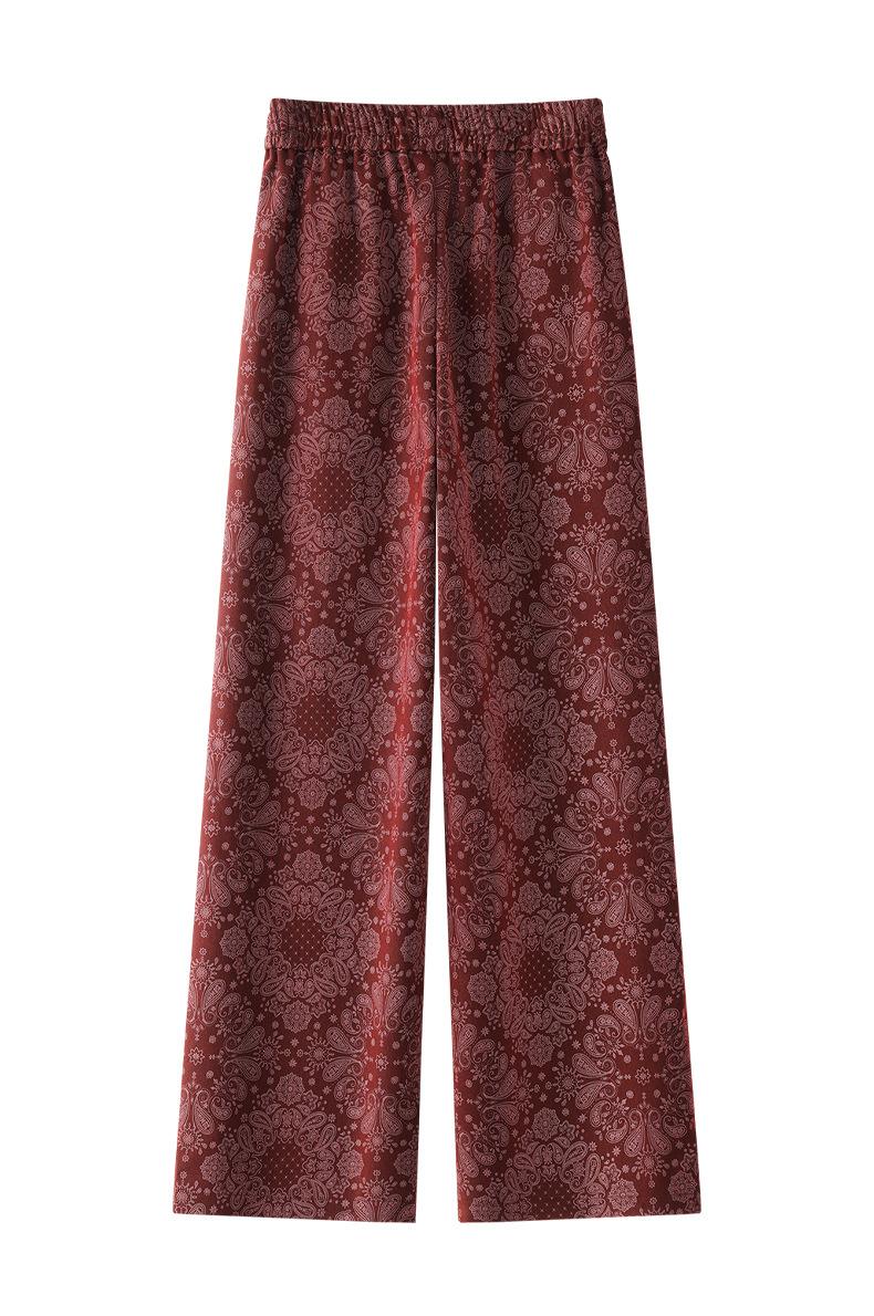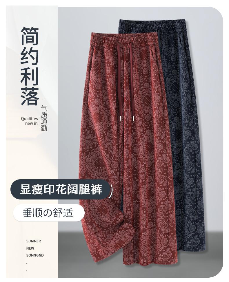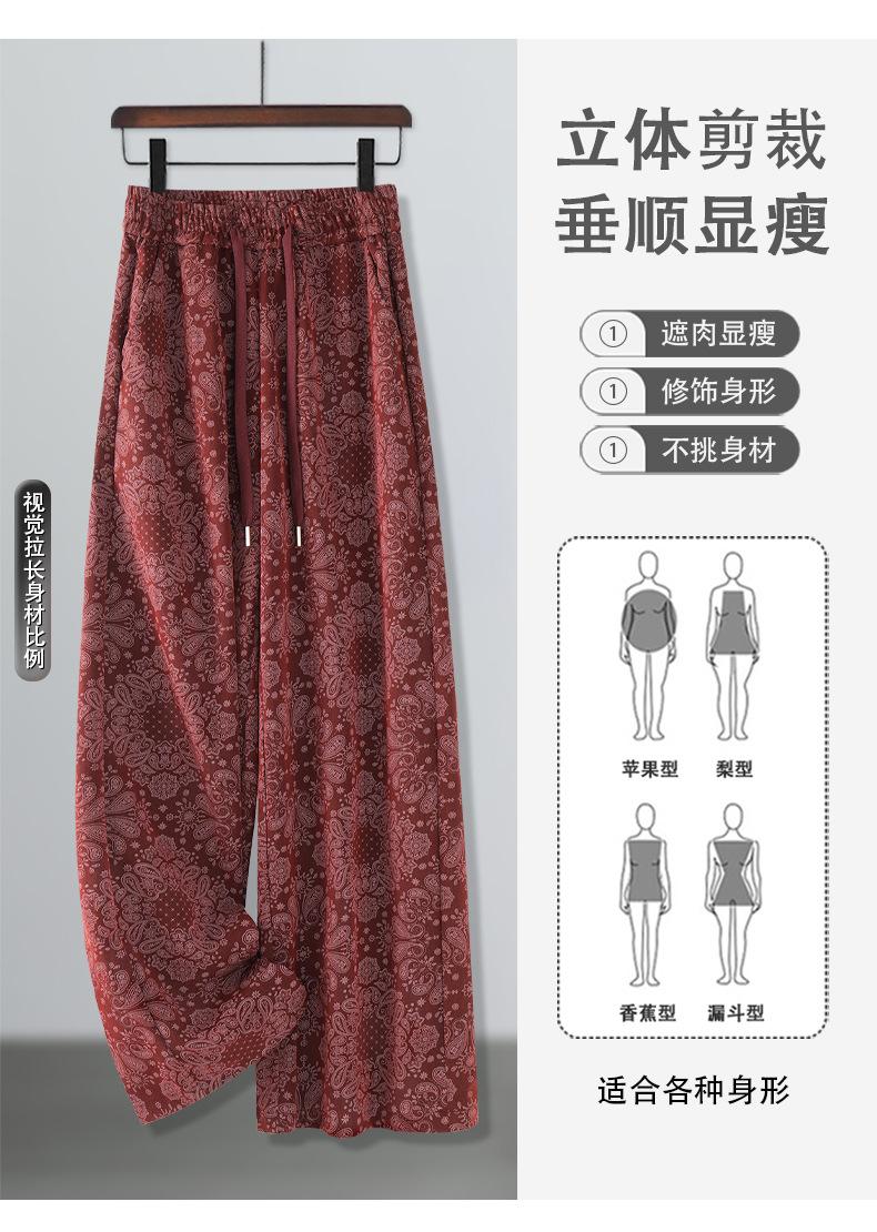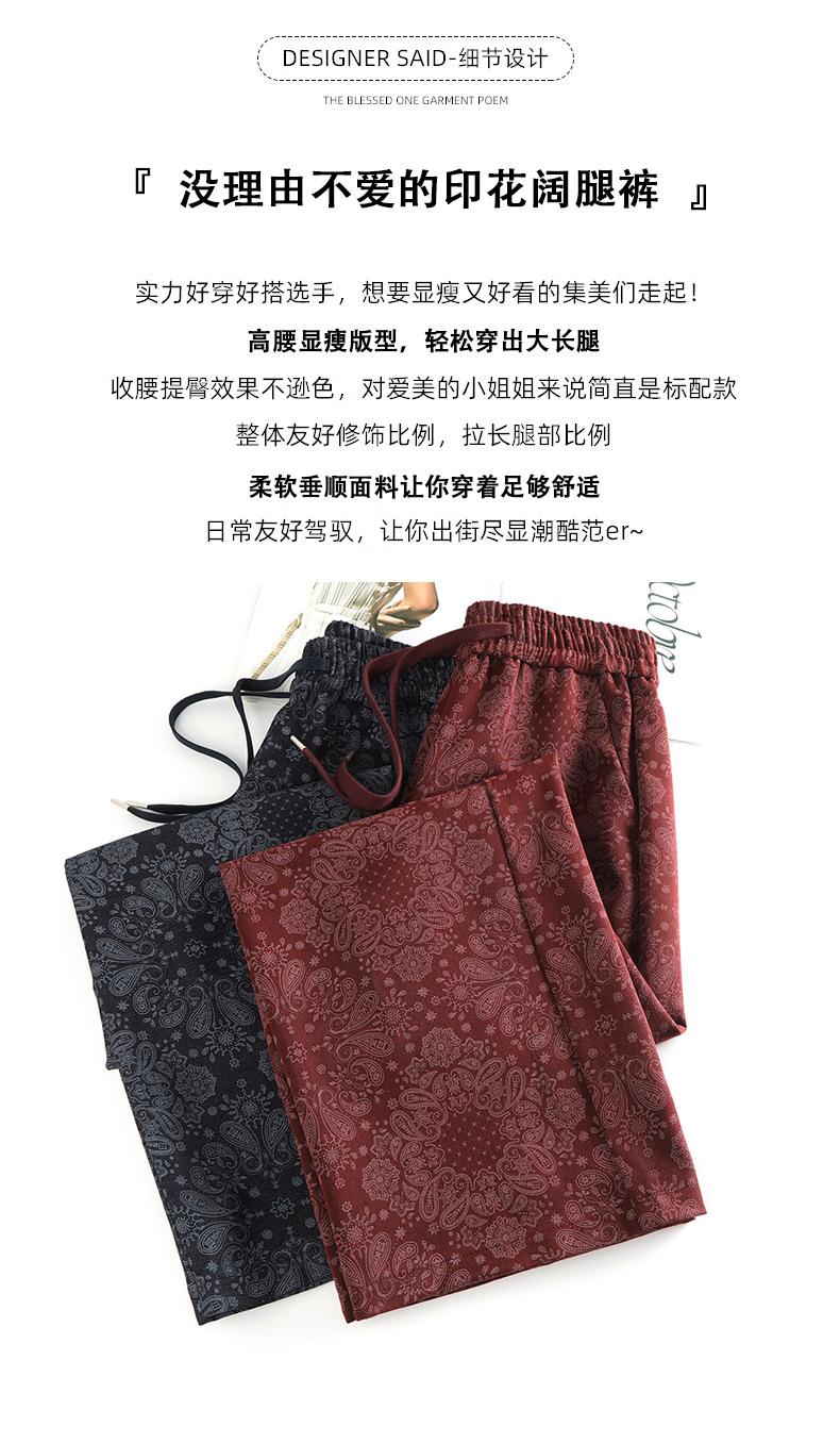 Tendencia de Moda Otoño 2025 Pantalones de Pierna Ancha con Cintura Elástica Drapeado Adelgazante Versátil Paisley Rectos