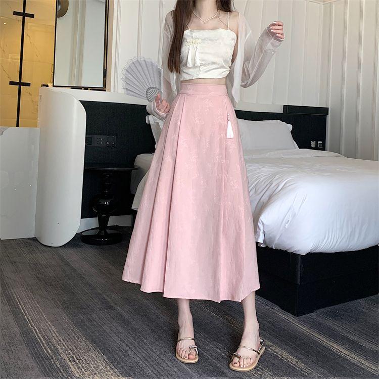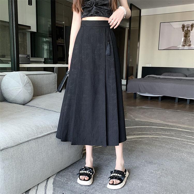 Nueva Falda Midi Jacquard Exquisita Estilo Chino para Mujer Verano Nuevo Diseño Cintura Alta Versátil Moda Línea A