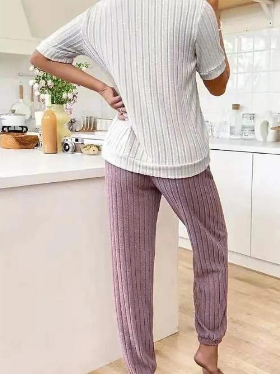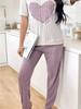 Pijama Corazón Dulce Set de Mujer Primavera Nuevo Temperamento Cuello Redondo Manga Corta Pantalón Largo Conjunto de Dos Piezas Ropa de Casa Cómoda