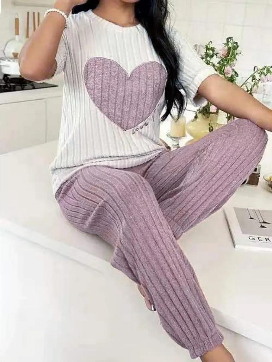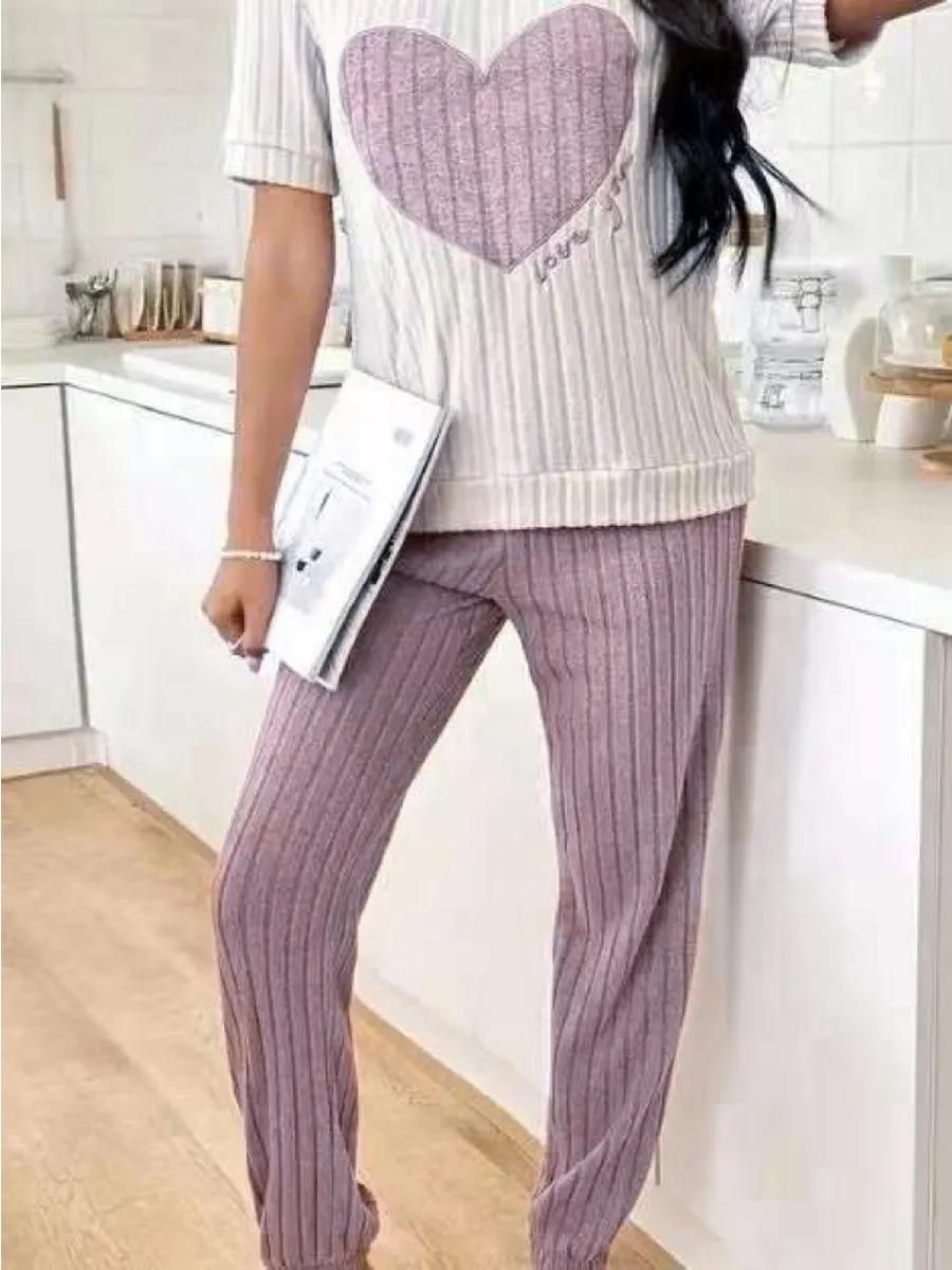 Compra Pijama Corazón Dulce Set de Mujer Primavera Nuevo Temperamento Cuello Redondo Manga Corta Pantalón Largo Conjunto de Dos Piezas Ropa de Casa Cómoda al por mayor en Joom.pro