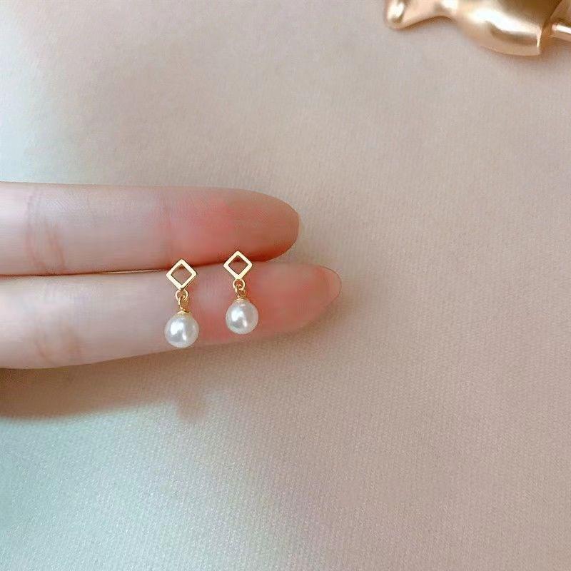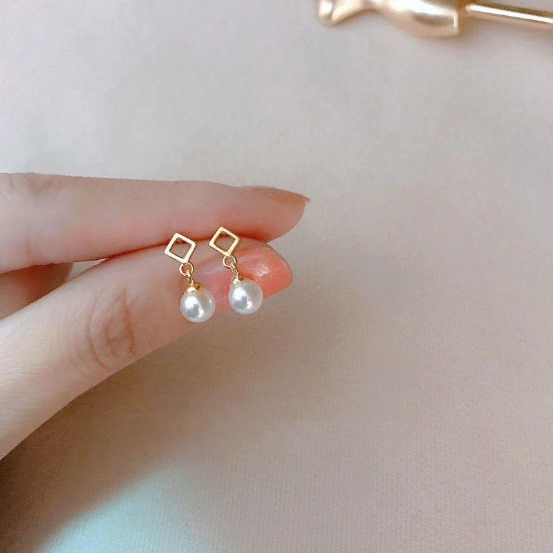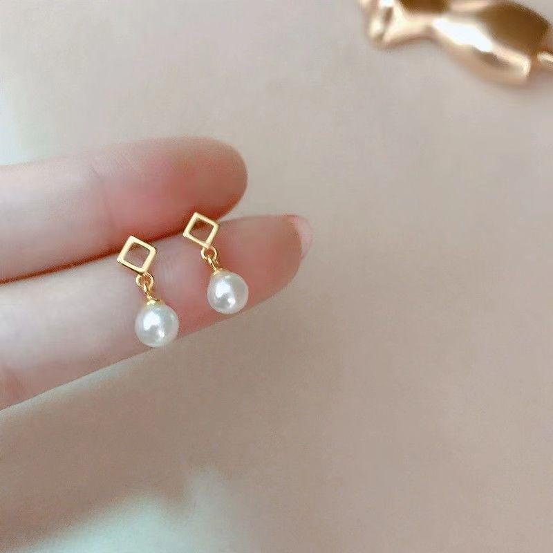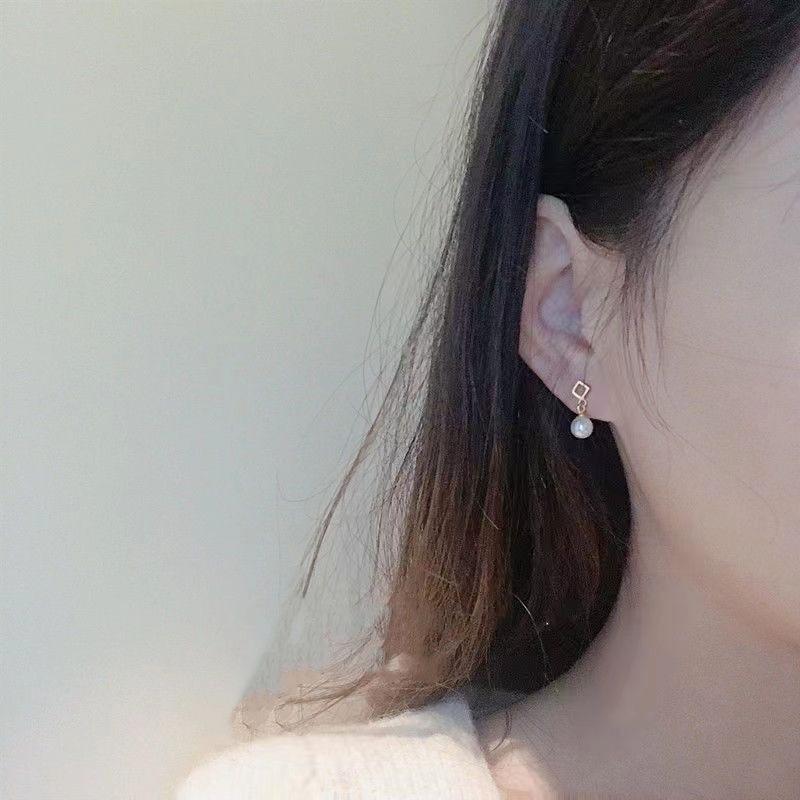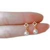 Compra Aretes geométricos retro franceses de alta gama 2023 diseño de nicho femenino aretes cuadrados de perlas aretes de temperamento de lujo ligero al por mayor en Joom.pro