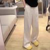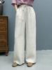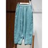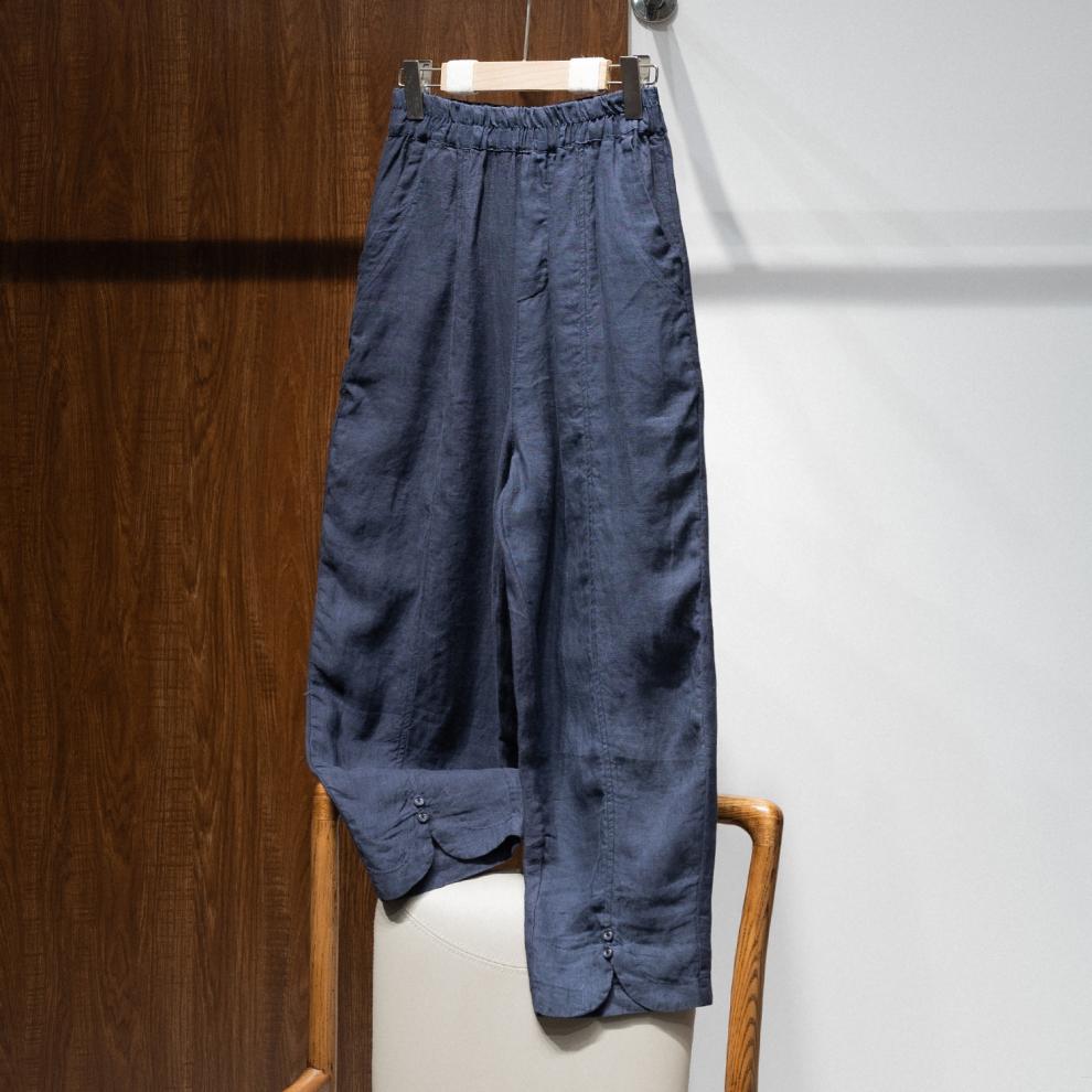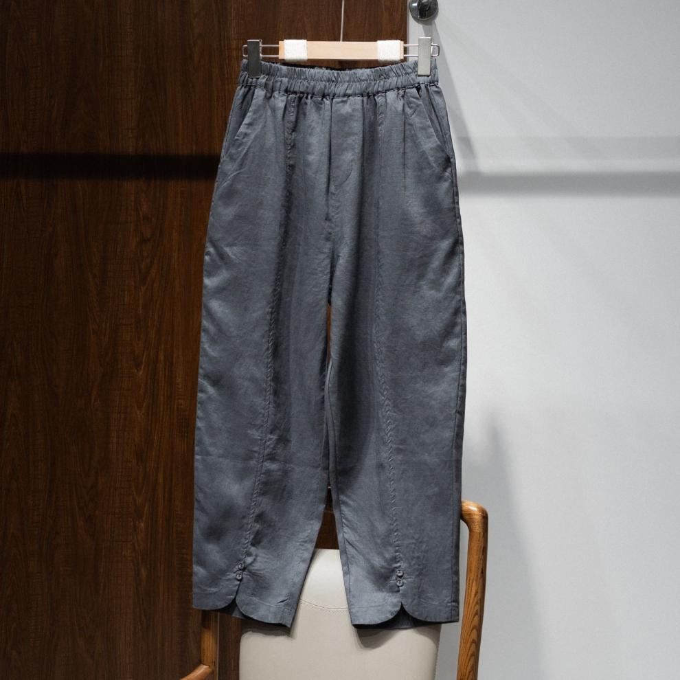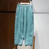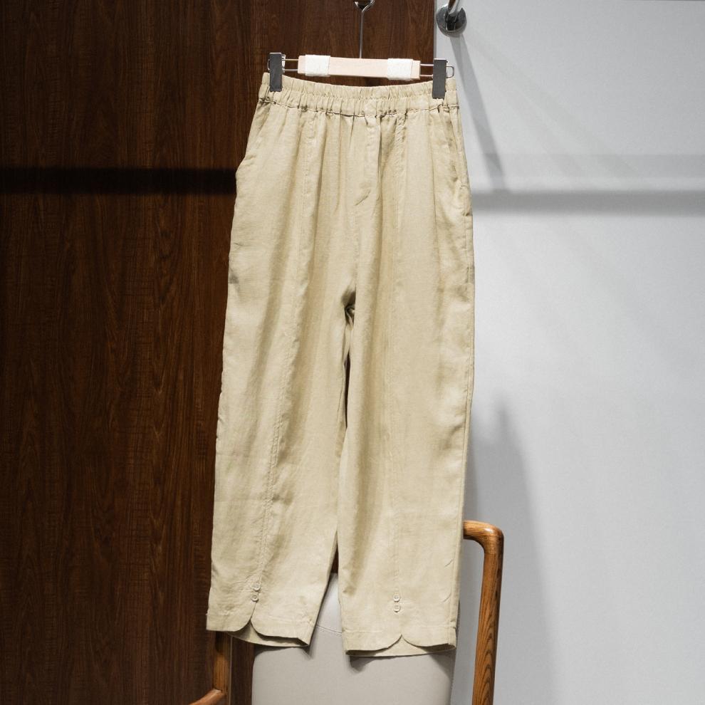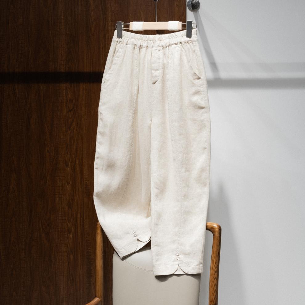 Pantalones de Verano de Color Sólido Nuevo Cintura Elástica Pierna Recta Algodón Lino Mujer Sueltos Adelgazantes Versátiles Casuales Pantalones Harem Mujer