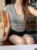Camiseta Blanca Cuello en V Hombro Manga Corta Mujer Verano 2025 Nuevo Estilo Caliente Sentido del Diseño Nicho Combinación con Todo Top Chica Caliente