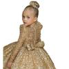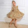 Vestido de Noche para Niñas Nuevo Dorado Manga Larga Falda Tutú Vestido de Princesa de Cumpleaños Actuación Piano Anfitrión Lentejuelas Vestido Infantil