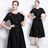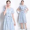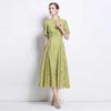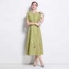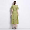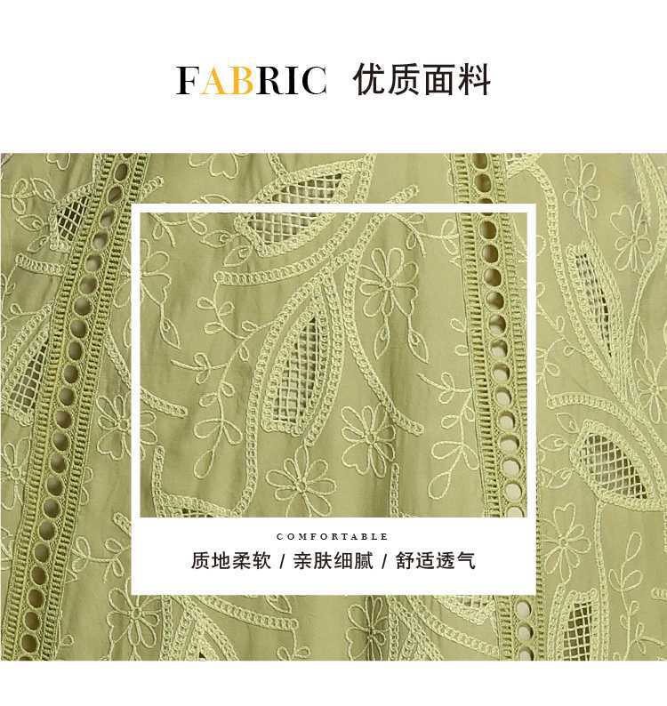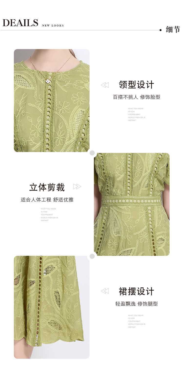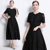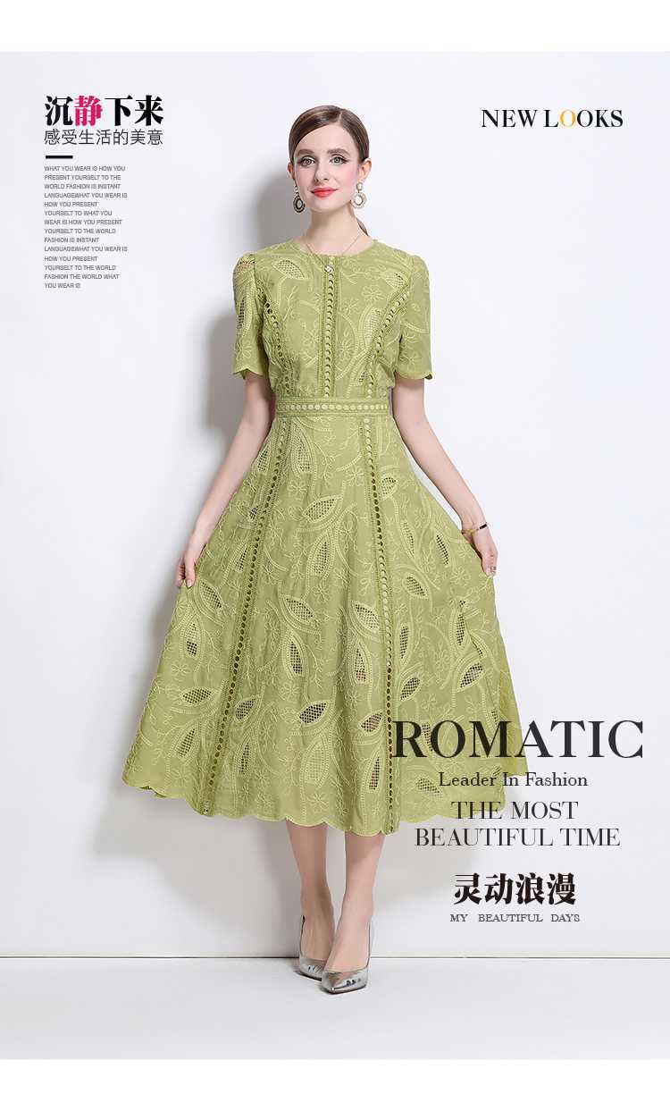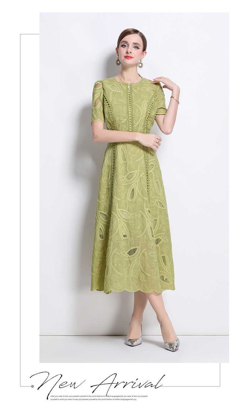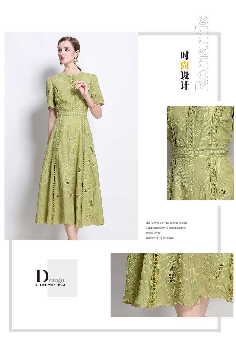 Verano Francés Retro Pesado Calado Bordado Cuello Redondo Adelgazante Cintura Manga Corta Vestido Mujer Adelgazante Vestido Largo