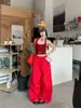 Pantalones Casuales Americanos Retro con Diseño Plisado de Pierna Ancha y Caída para Mujer, Verano Sueltos Casuales Largos hasta el Piso
