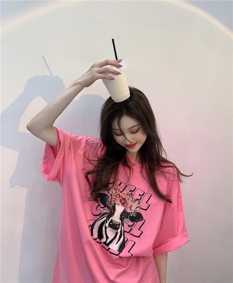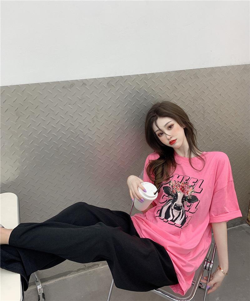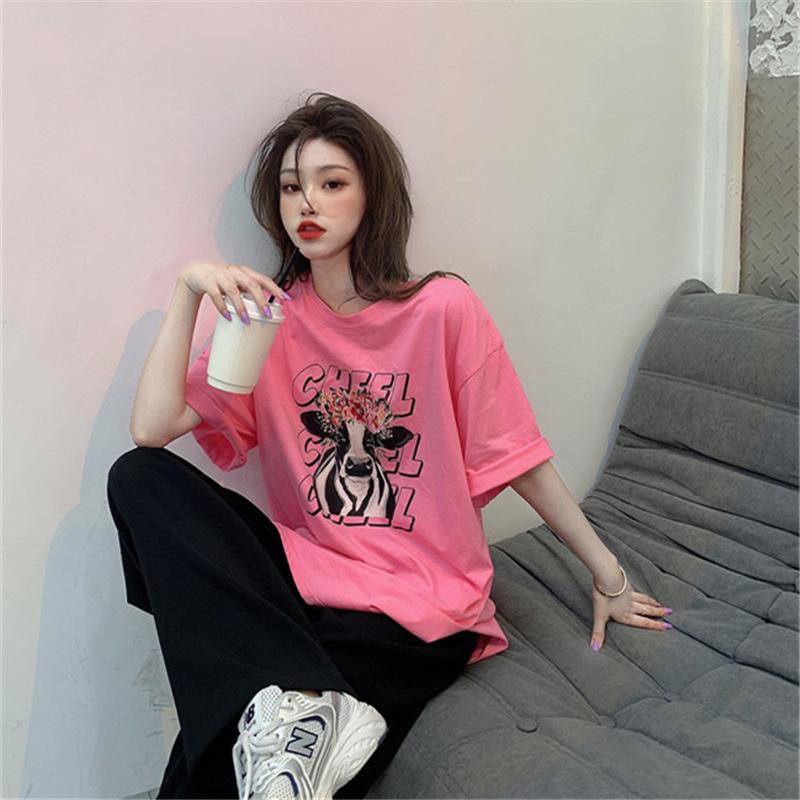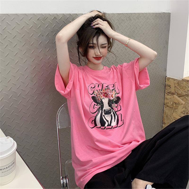 Compra 2025 nueva camiseta de verano coreana estilo Harajuku holgada de largo medio y manga corta para mujer al por mayor en Joom.pro