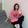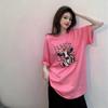 2025 nueva camiseta de verano coreana estilo Harajuku holgada de largo medio y manga corta para mujer