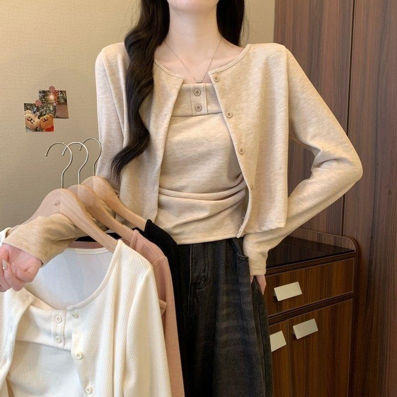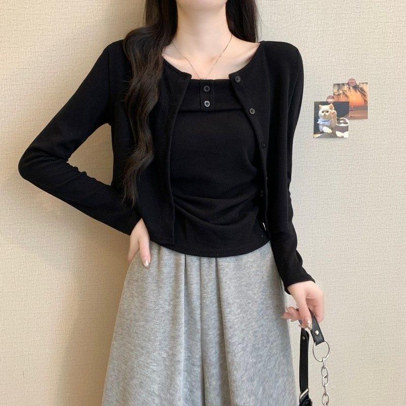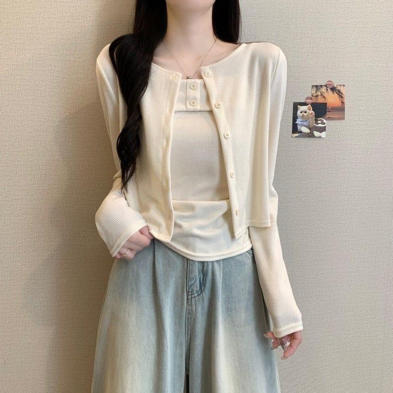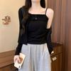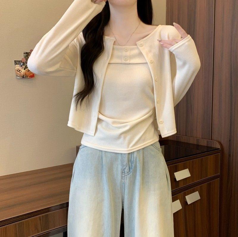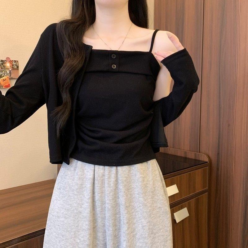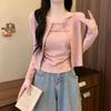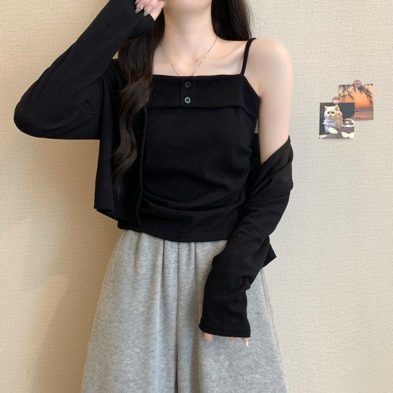 Khaki two-piece set 【camisole+cardigan】, Pink Two-Piece Set 【Camisole+Cardigan】, Black two-piece set 【Camisole+Cardigan】
