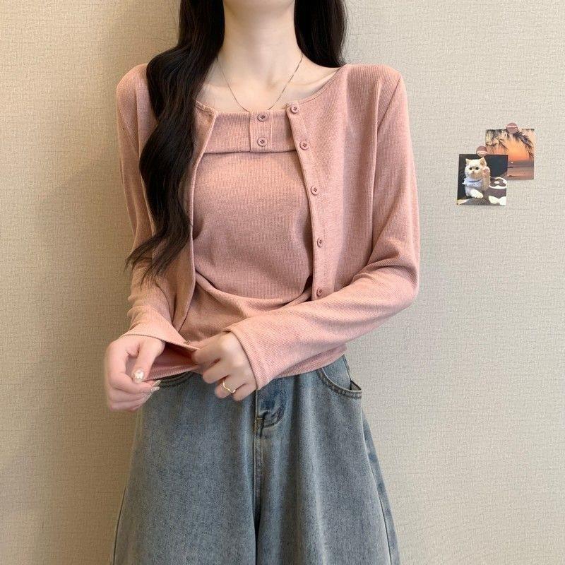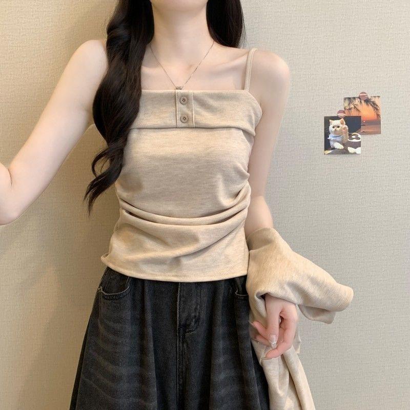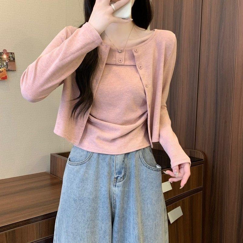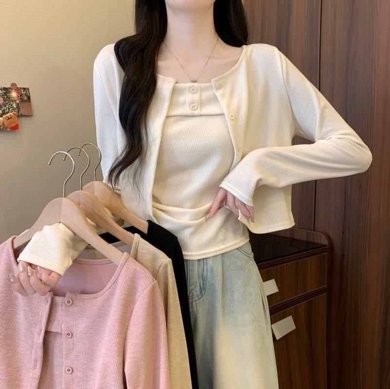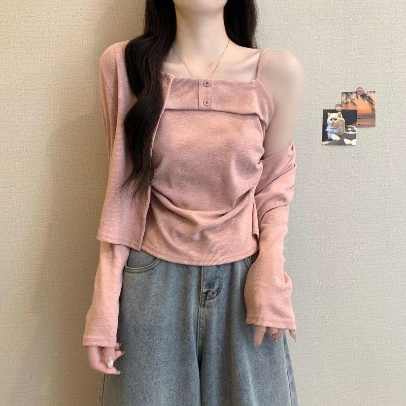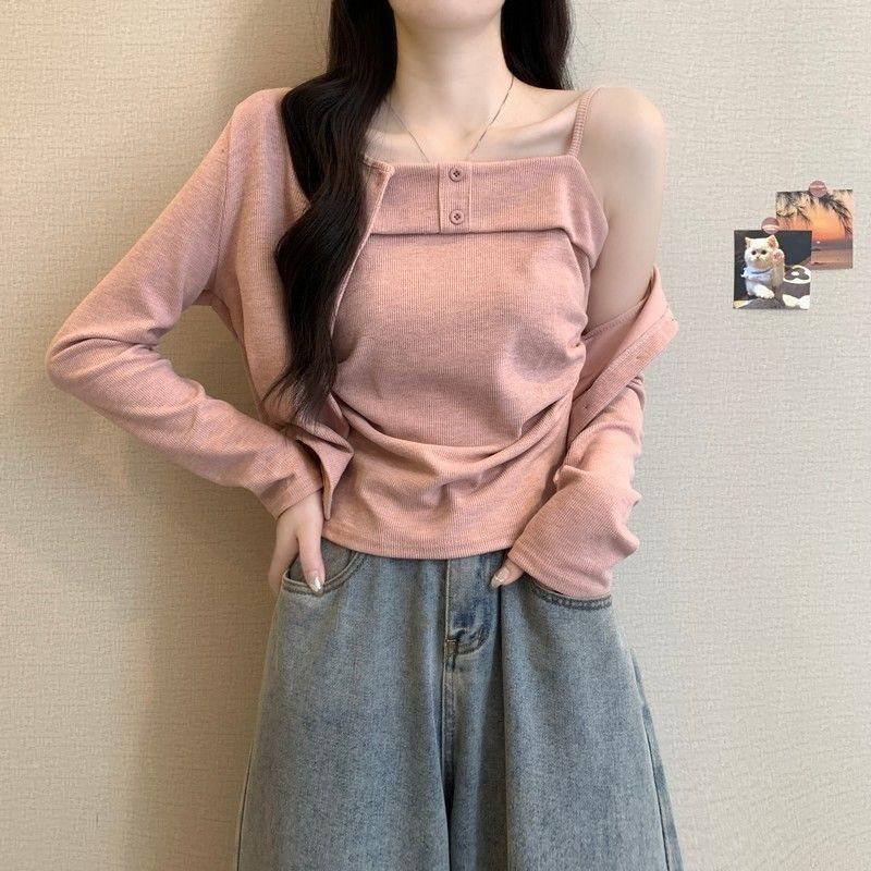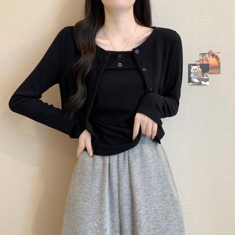 Khaki two-piece set 【camisole+cardigan】, Pink Two-Piece Set 【Camisole+Cardigan】, Black two-piece set 【Camisole+Cardigan】