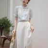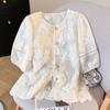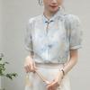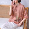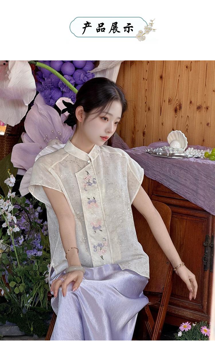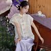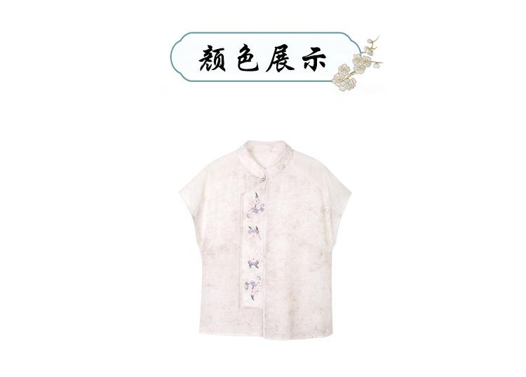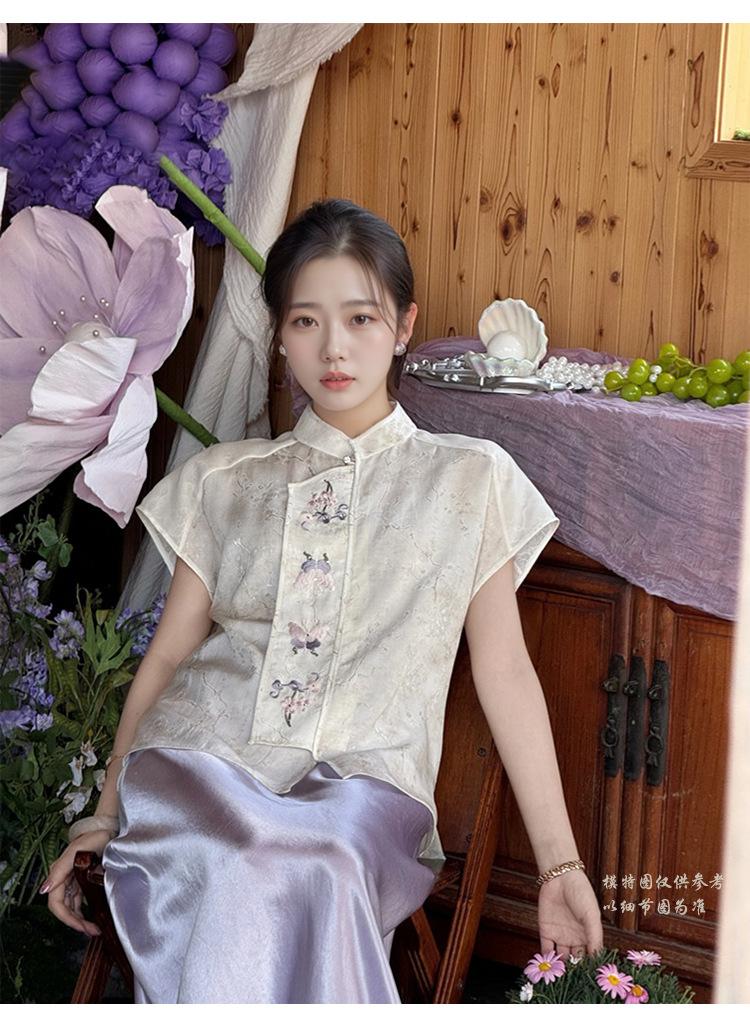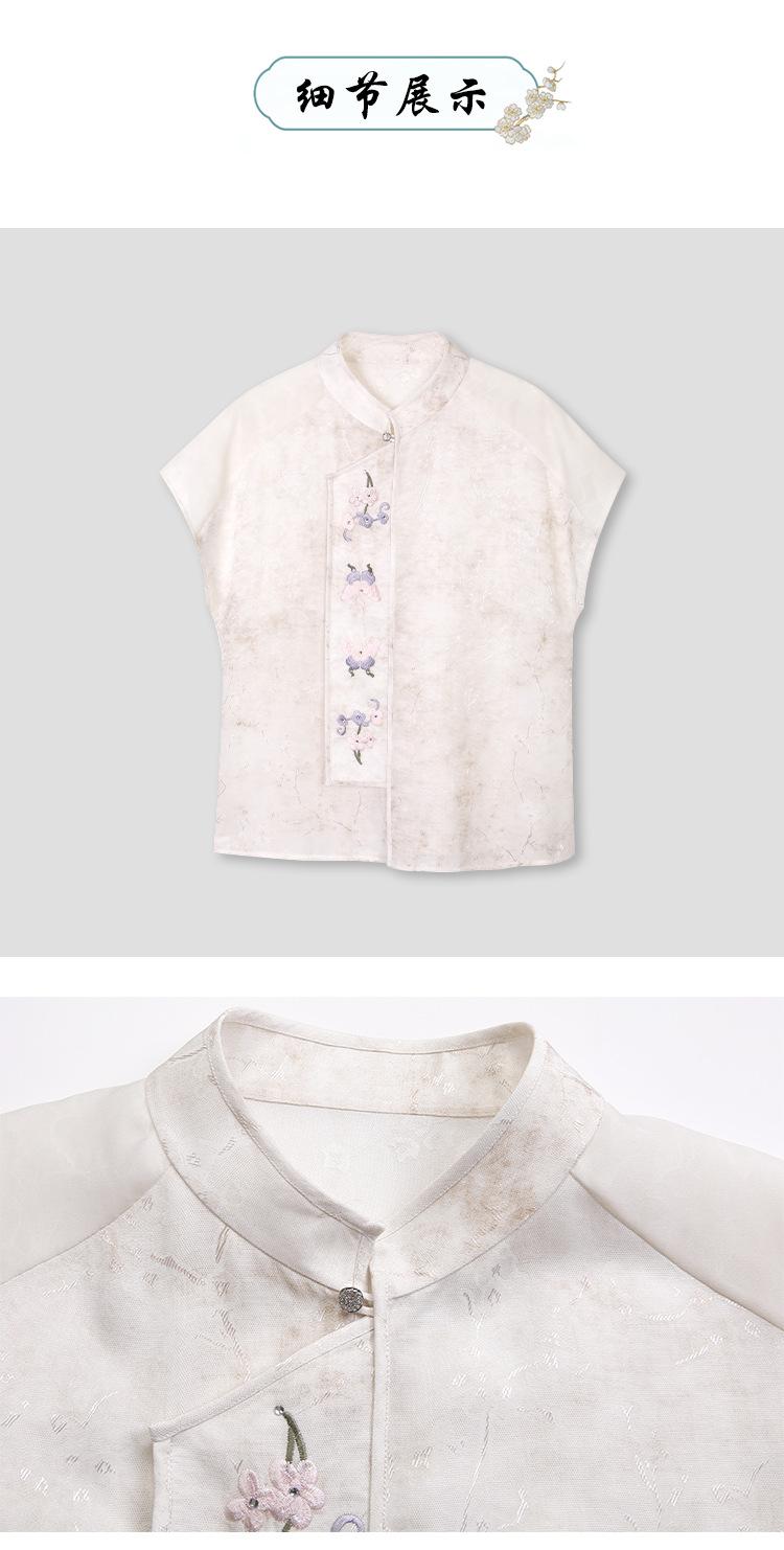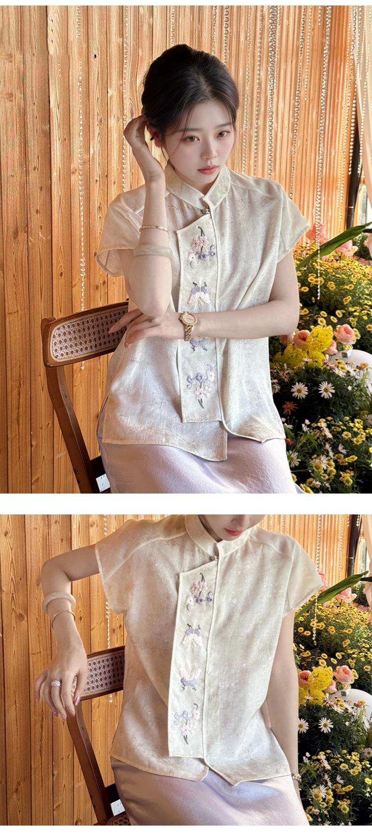 [Flor de Hielo] 2025 Primavera/Verano Nueva Blusa de Mujer Estilo Chino, Estilo Nacional Retro Bordada Manga Corta Cuello Mao Versátil