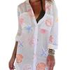 2025 Más Vendido Nueva Tendencia de Moda Transfronteriza Europea y Americana Impresión Digital Largo Medio Botones Camisa de Mujer Tops