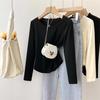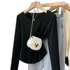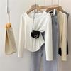 Playera de Manga Larga con Dobladillo Curvo y Hombro Recto para Mujer, Otoño e Invierno, Nuevo Estilo, Blanco Hueso, Adelgazante, Talla Grande, Forro Polar, Capa Base