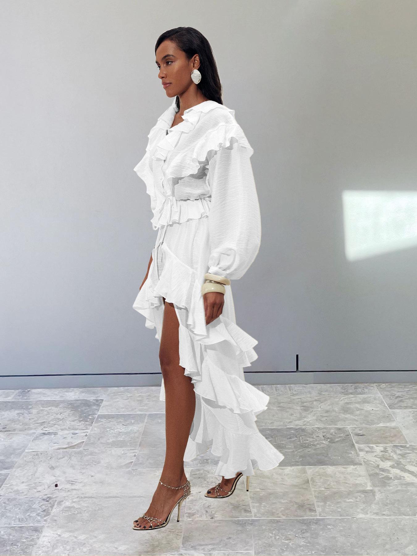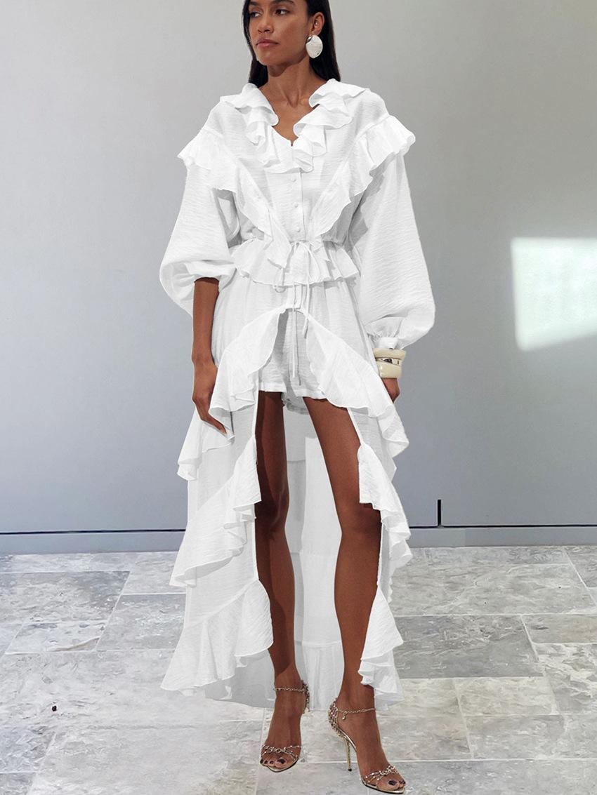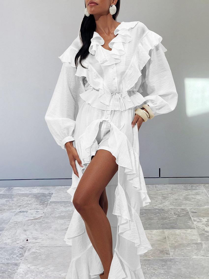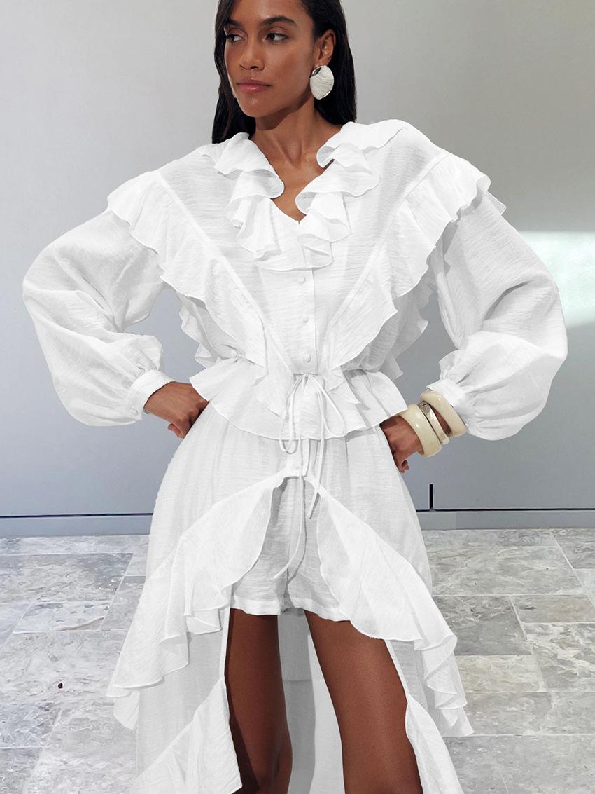 Nuevo Otoño/Invierno Elegante Francés Manga Larga Bajo con Volantes Conjunto de Shorts Sentido del Diseño Temperamento Moda 2025 Transfronterizo