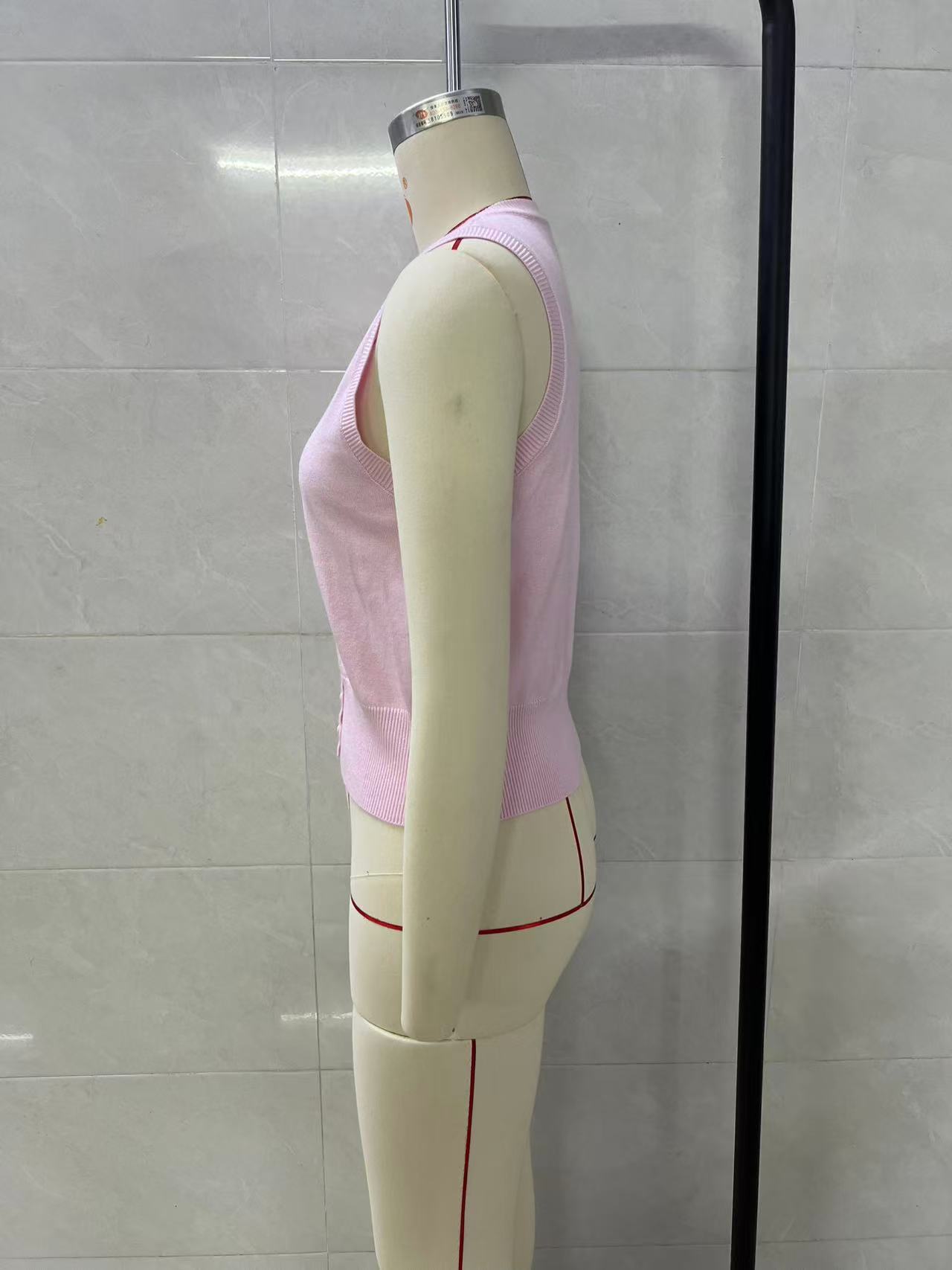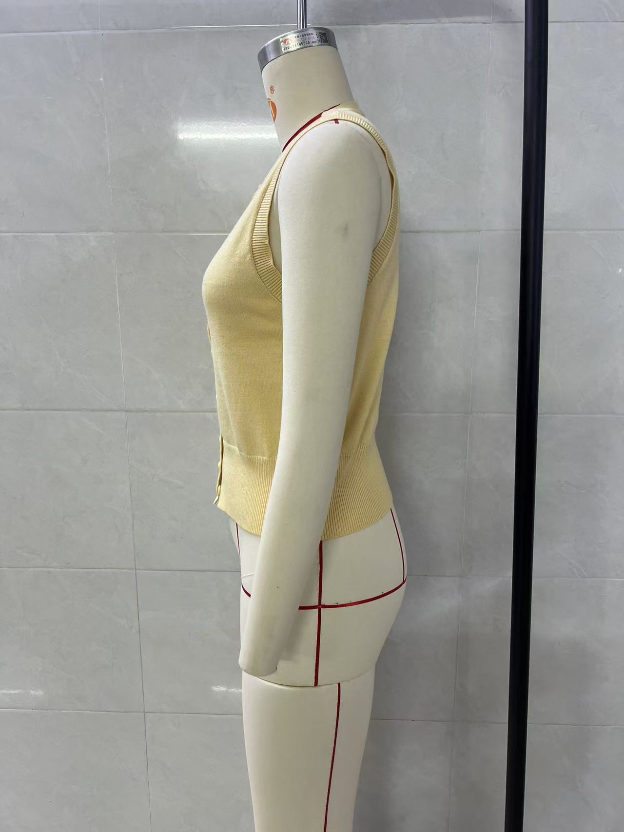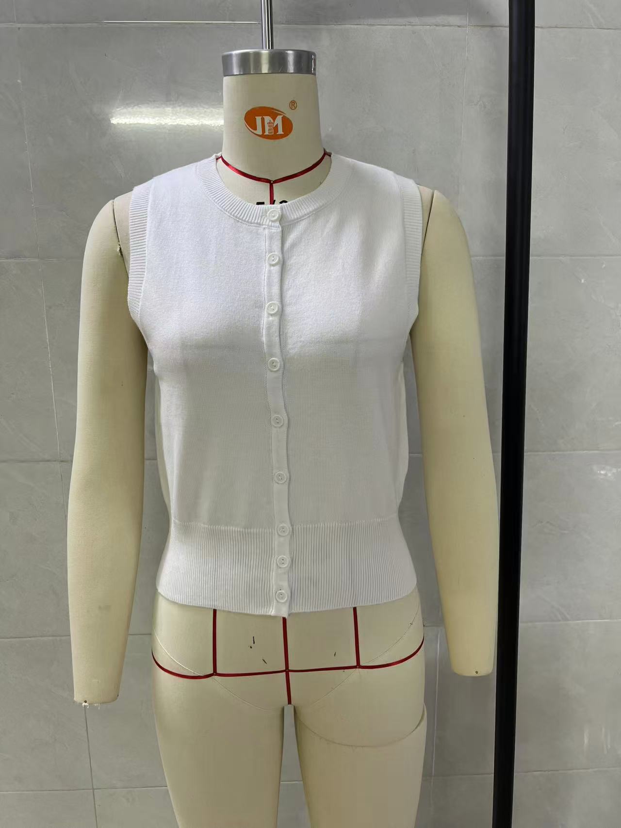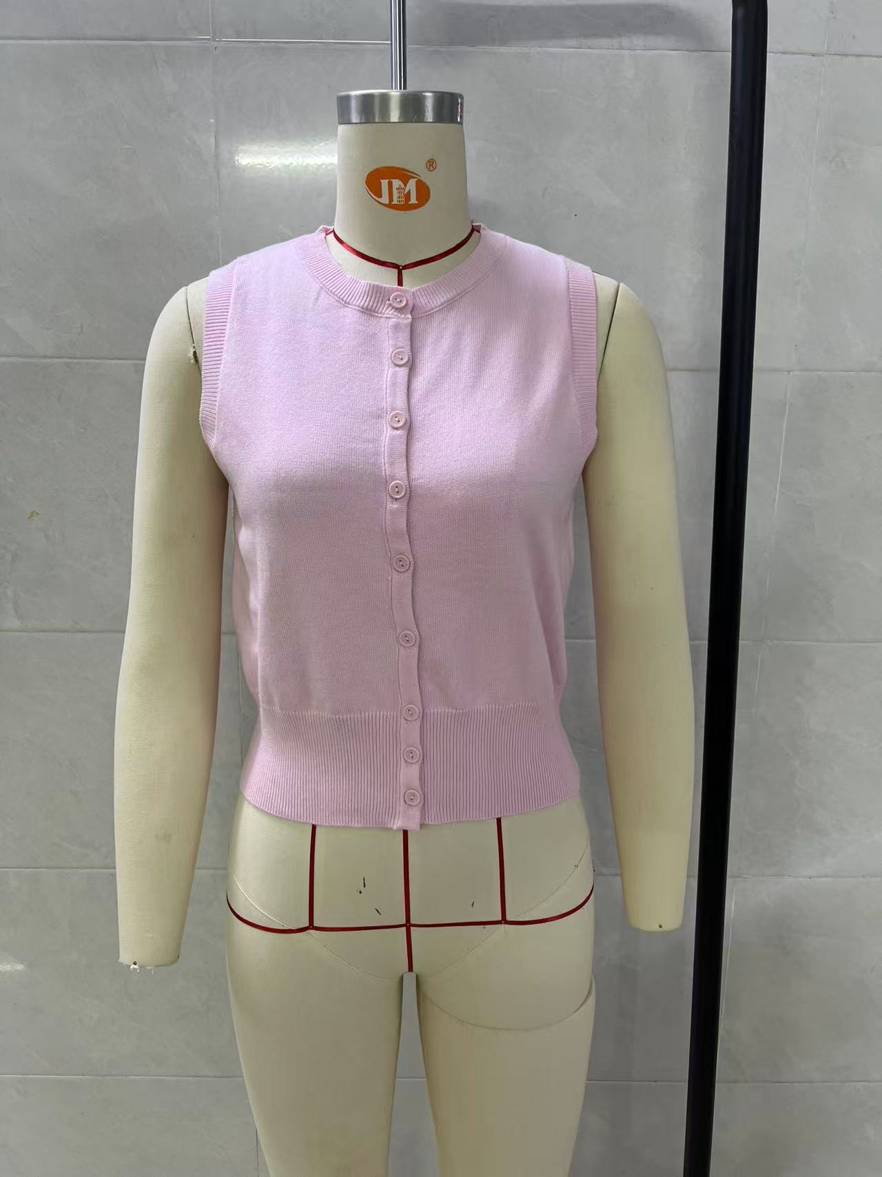 Europeo y Americano Transfronterizo Amazon Verano Nuevo Top de Punto para Mujer Sexy Sin Mangas Ropa Exterior Chaleco de Botones Chaleco para Mujer
