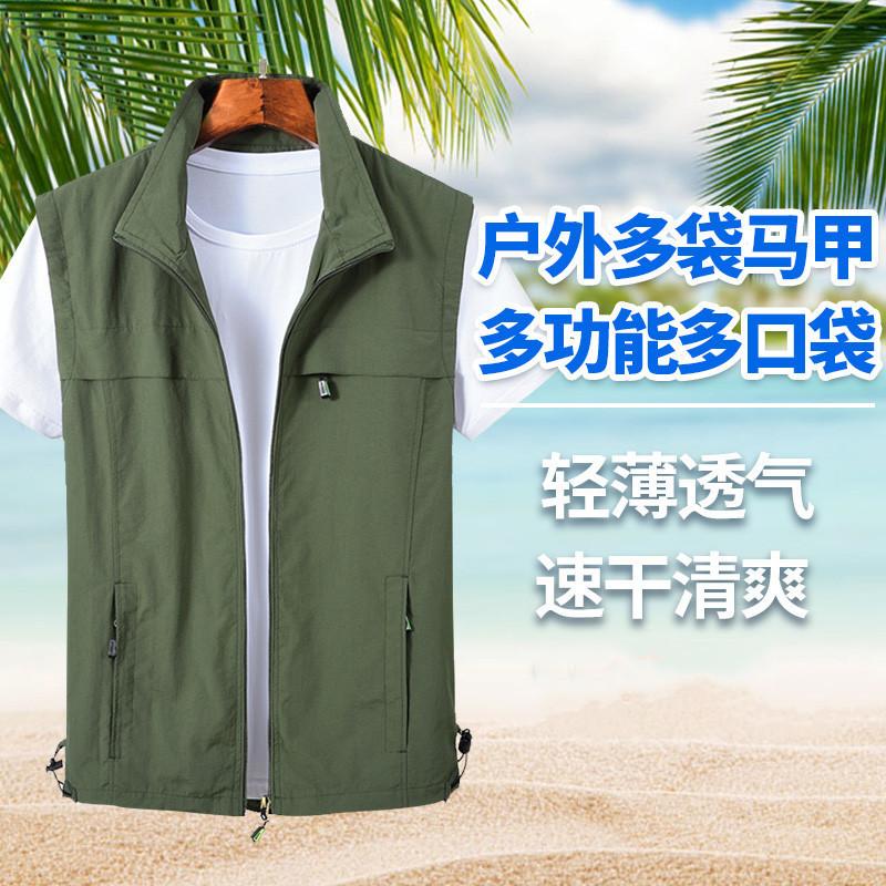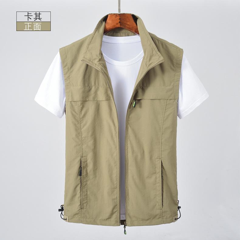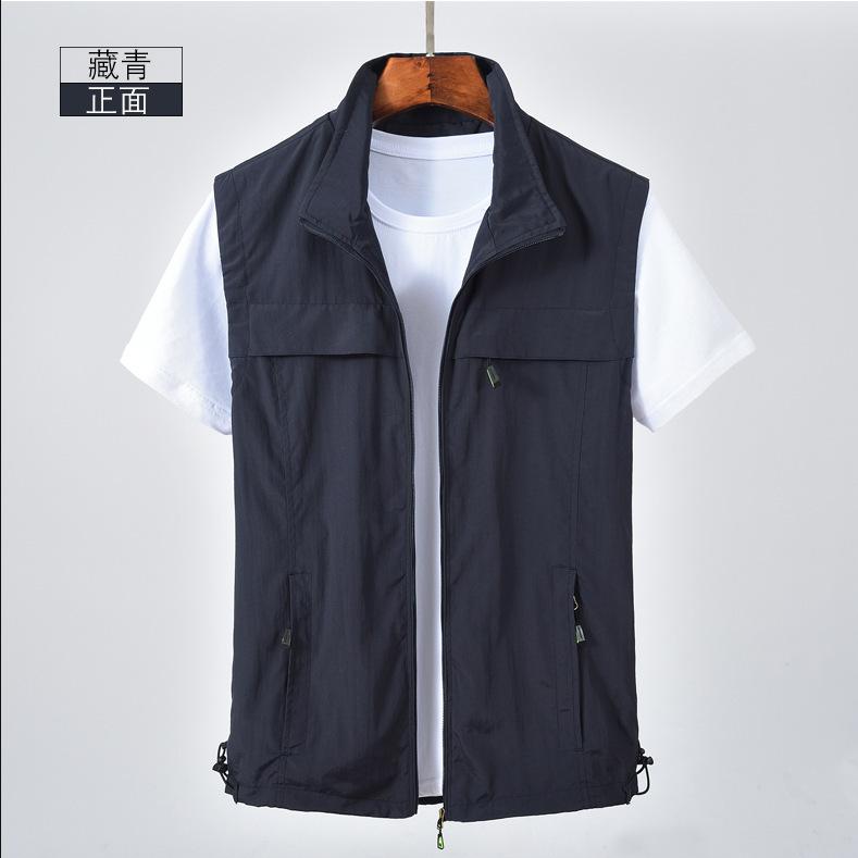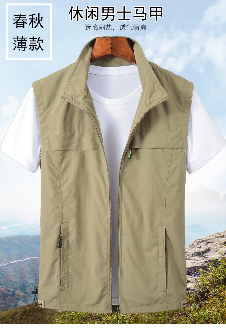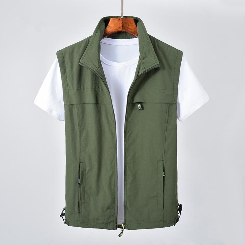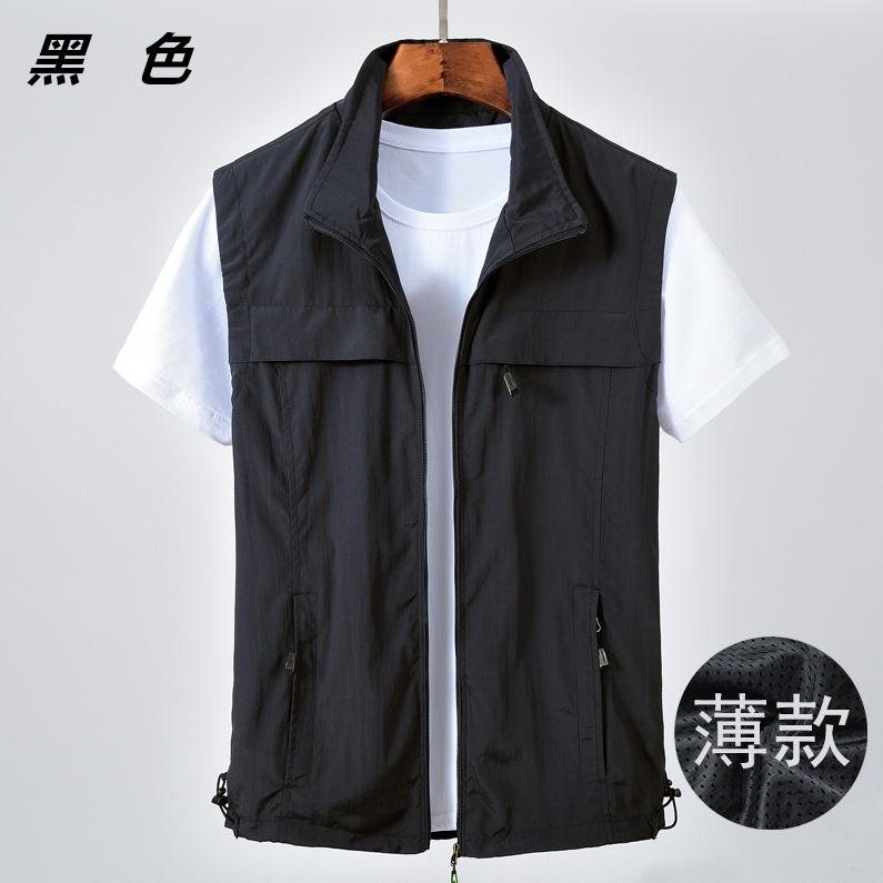 Chaleco delgado de primavera y otoño para hombre, color sólido, cuello alto, chaleco casual, para mediana edad y ancianos, para exteriores, de secado rápido, chaleco transpirable